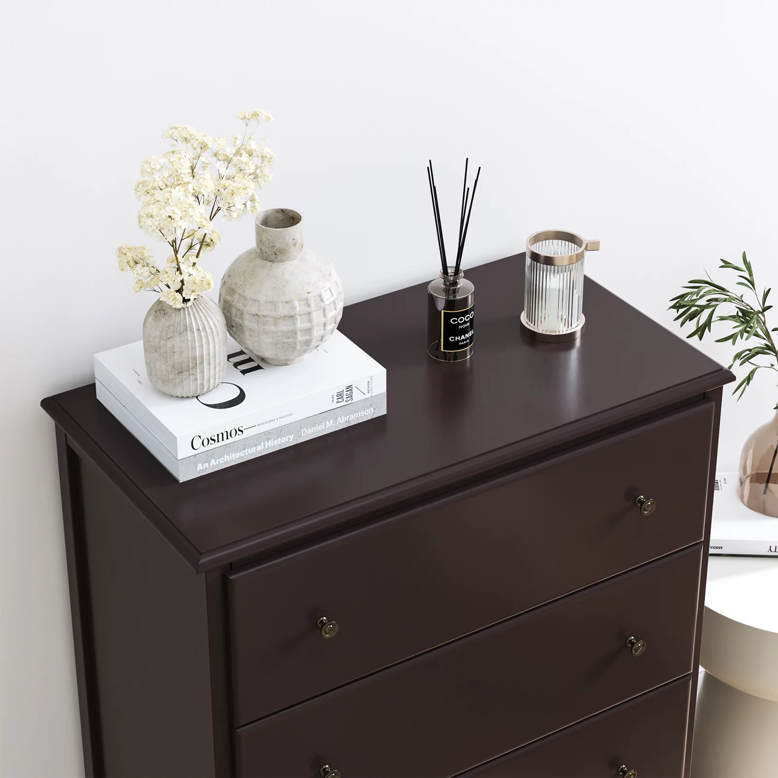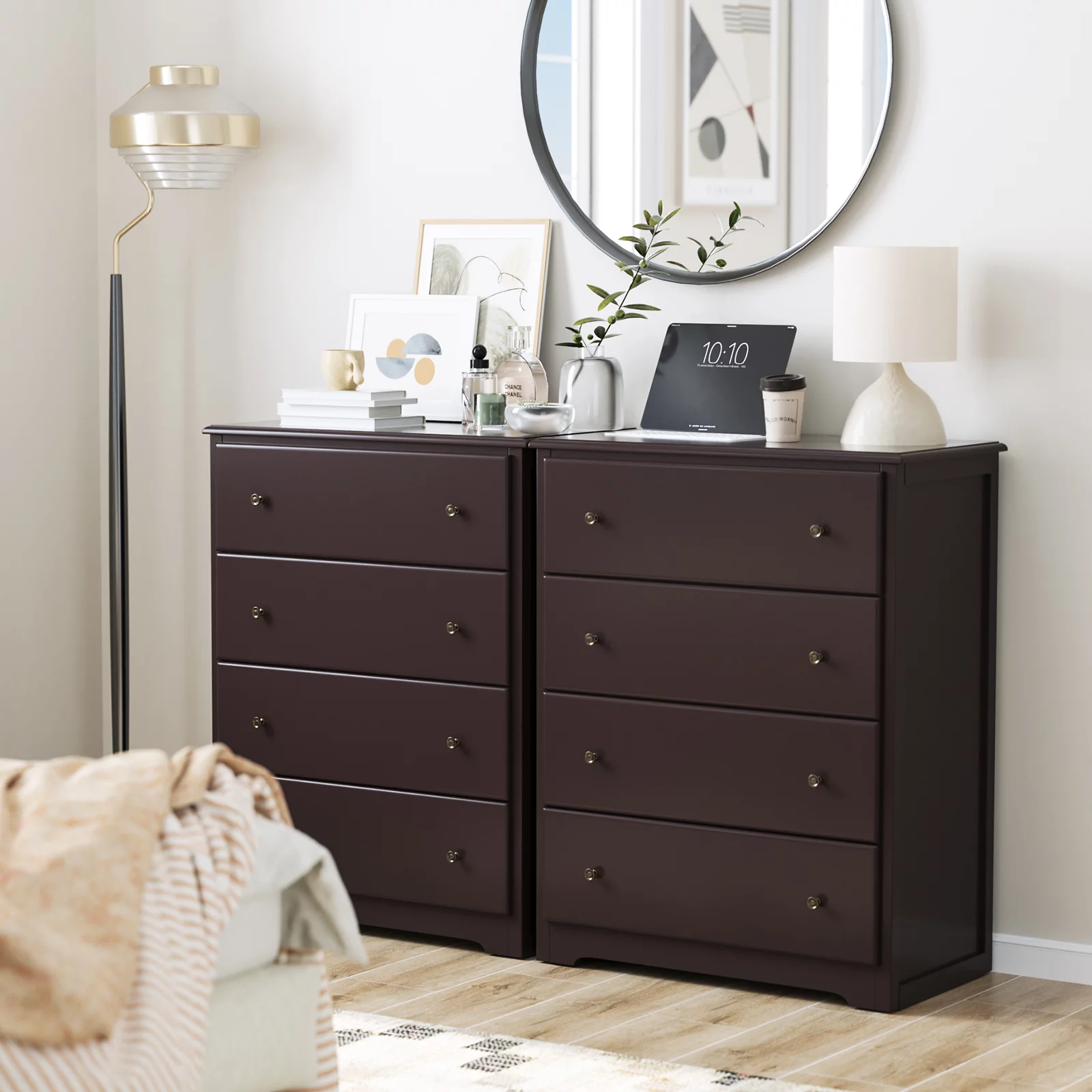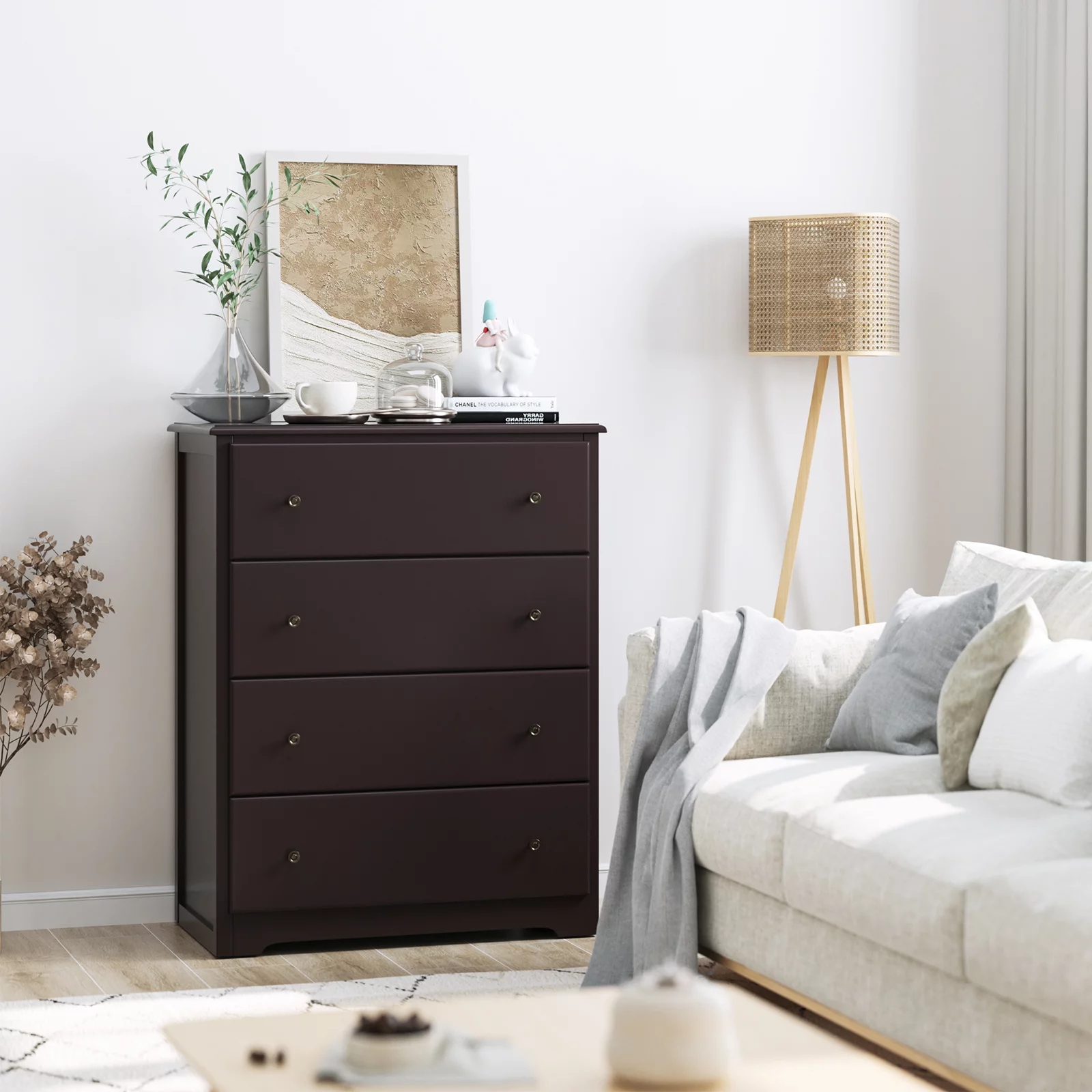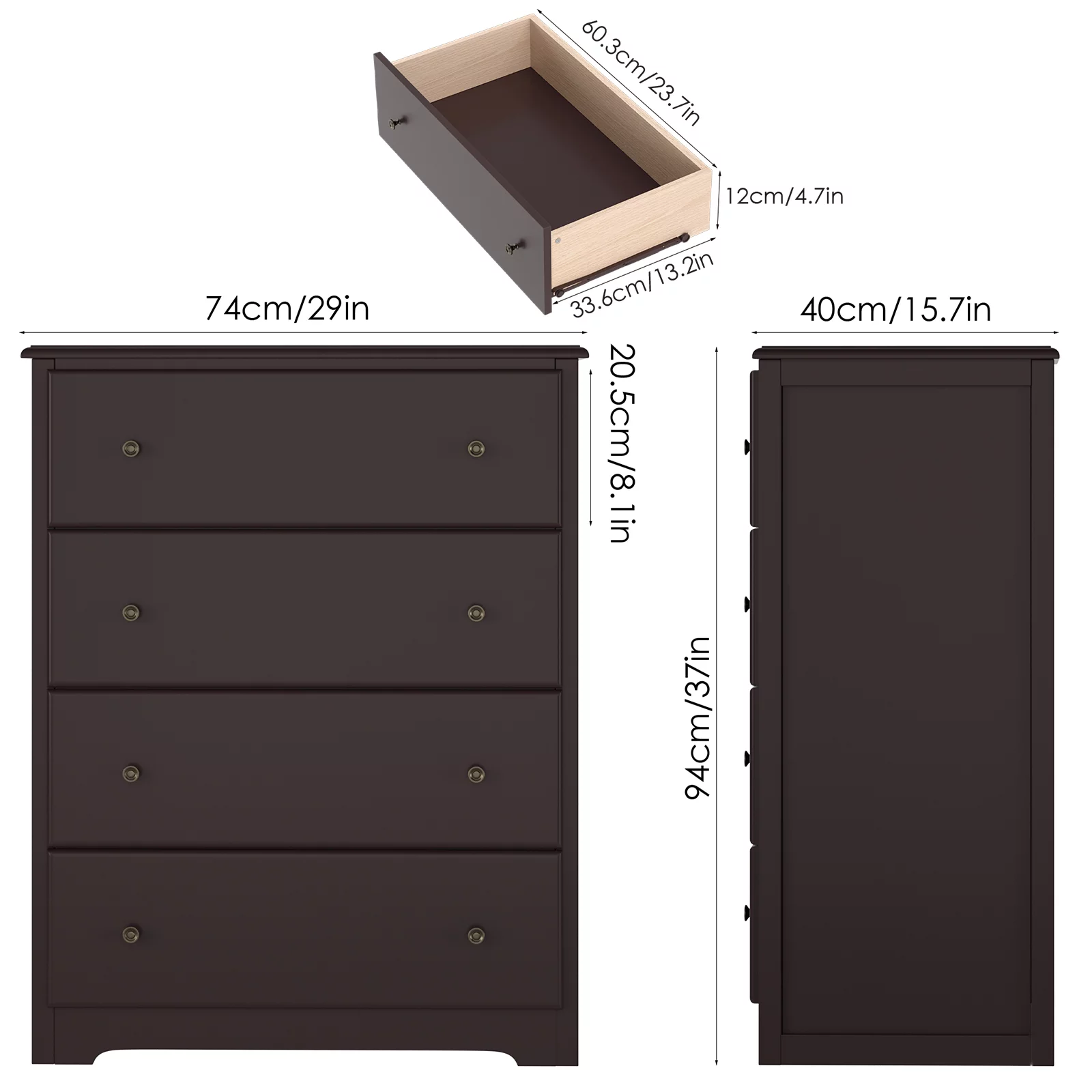 Homfa Dresser for Bedroom. Horizontal Dresser Chest with 4 Drawers. Dark Brown