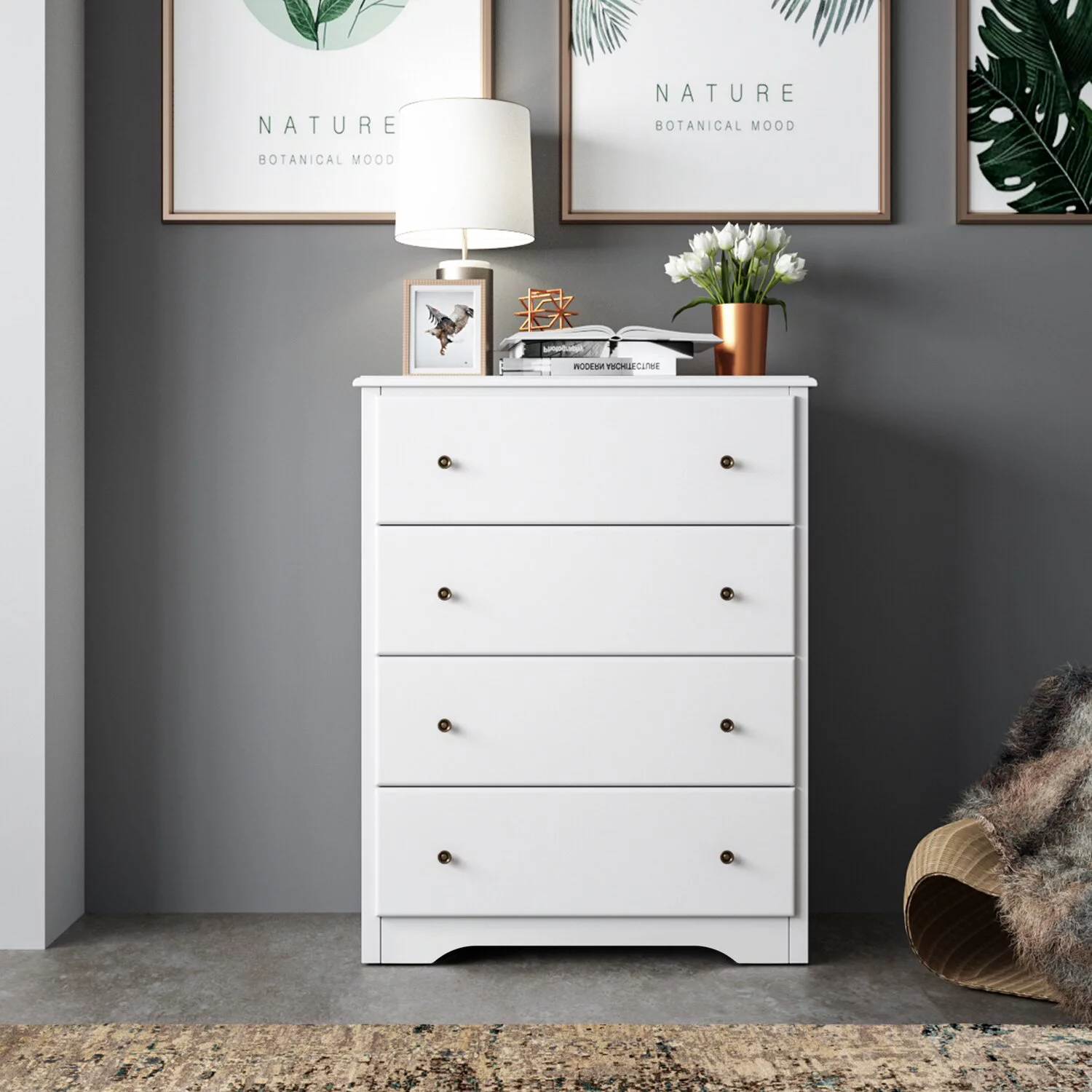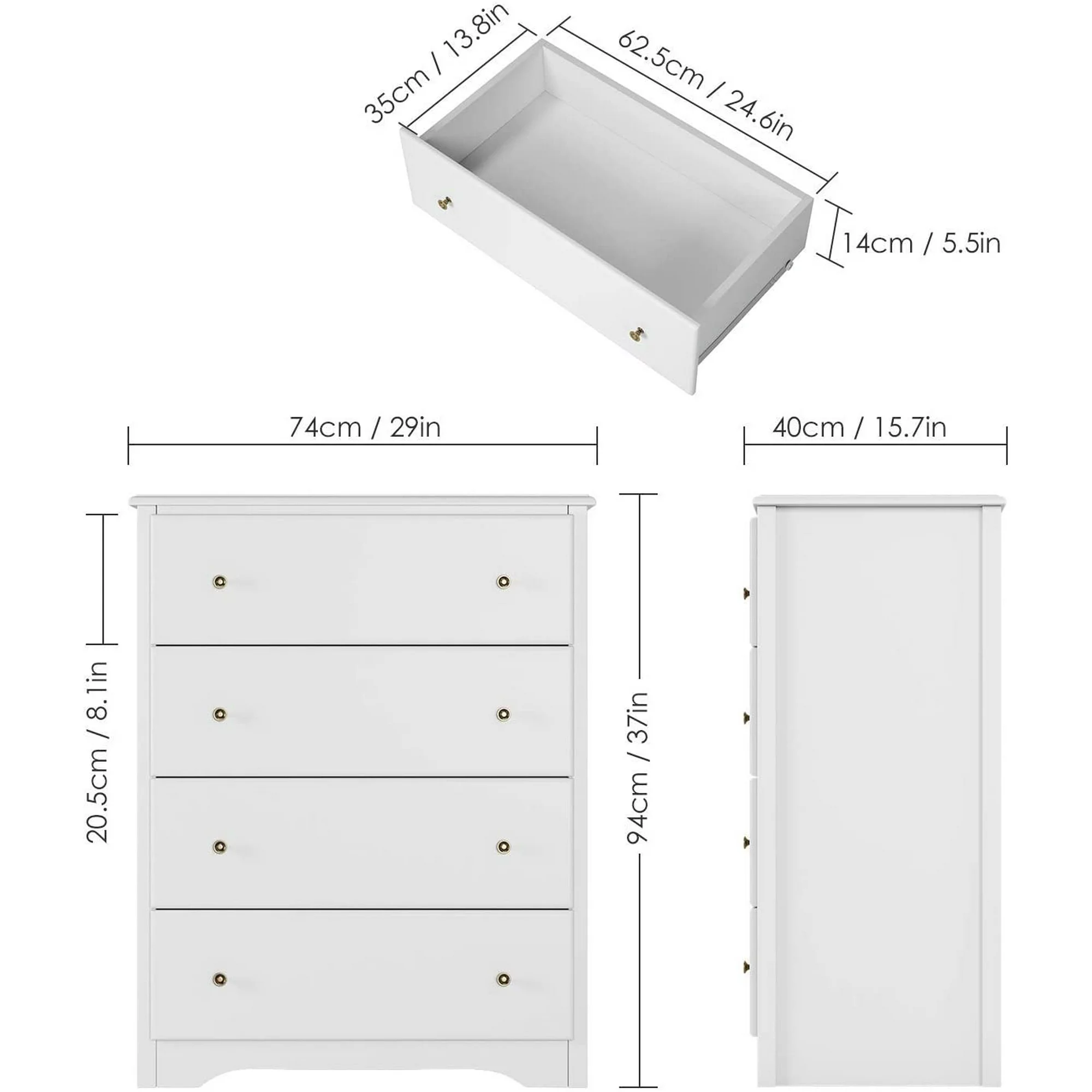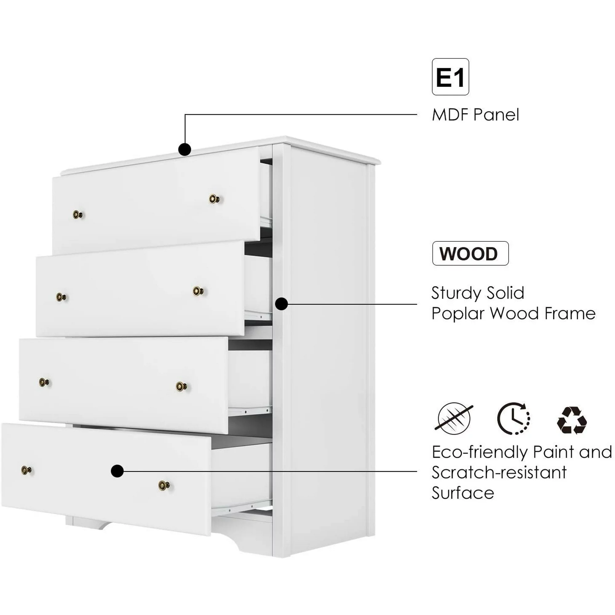 Homfa Dresser Chest. Modern Chest Organizer with 4 Drawers for Bedroom. White Finish