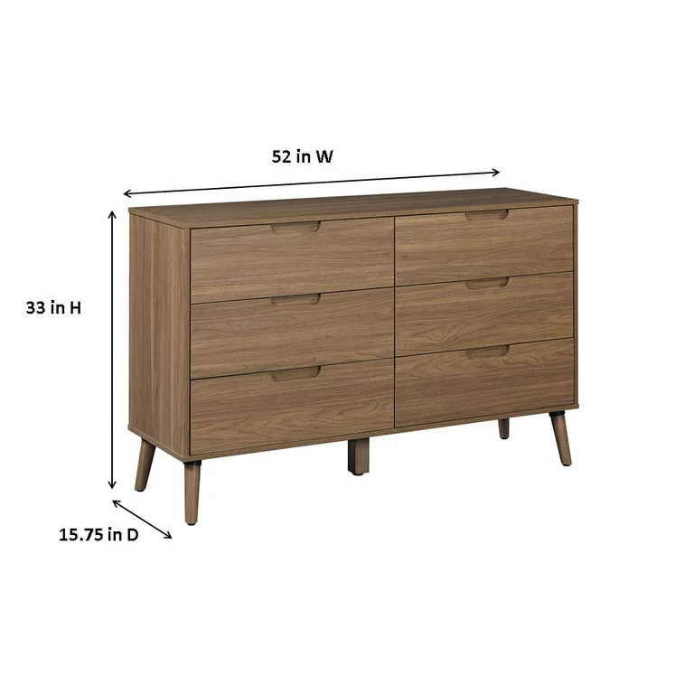 Mainstays Modern 6 Drawer Dresser. Bedroom. Brown Walnut