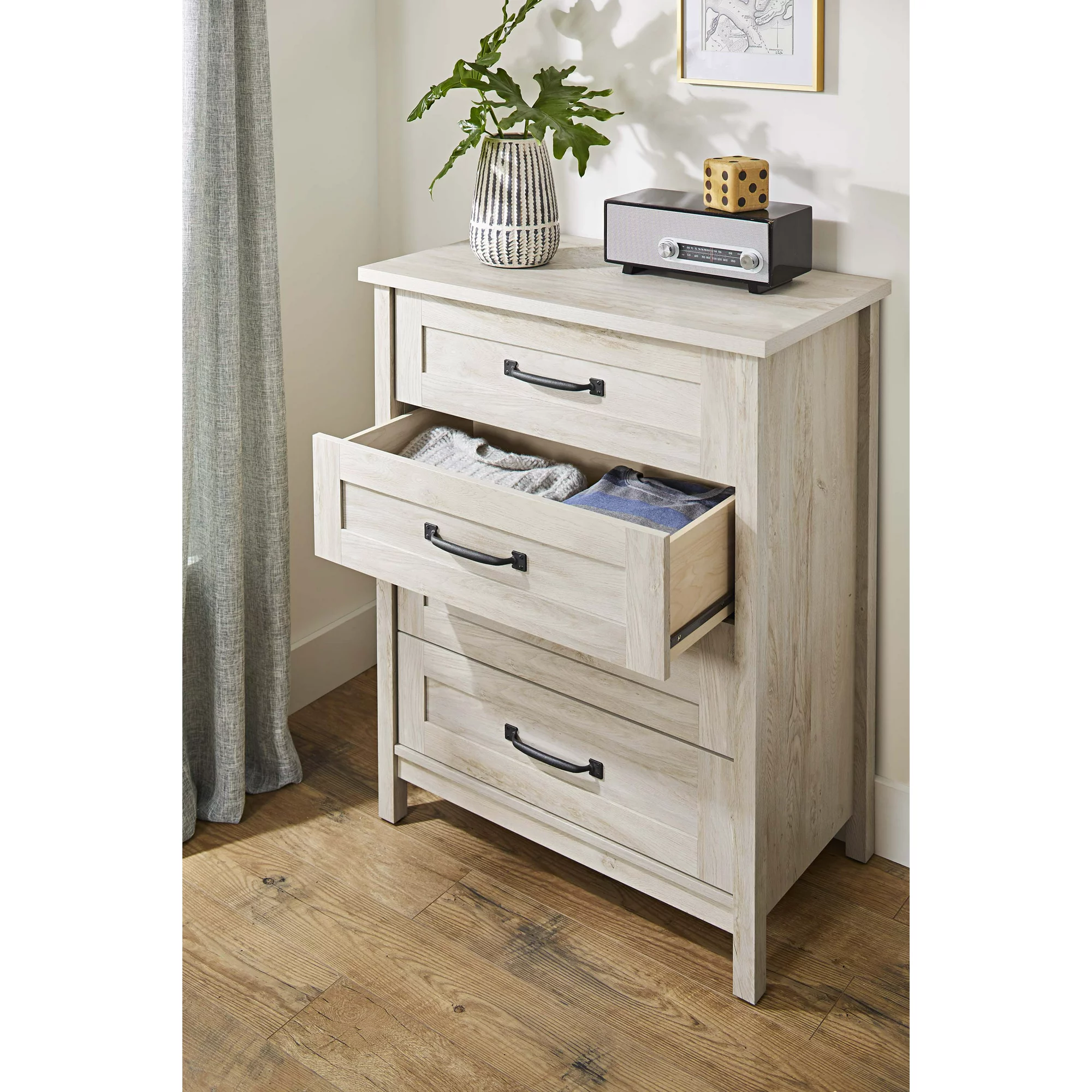 Better Homes & Gardens Modern Farmhouse 4-Drawer Chest. Rustic White Finish