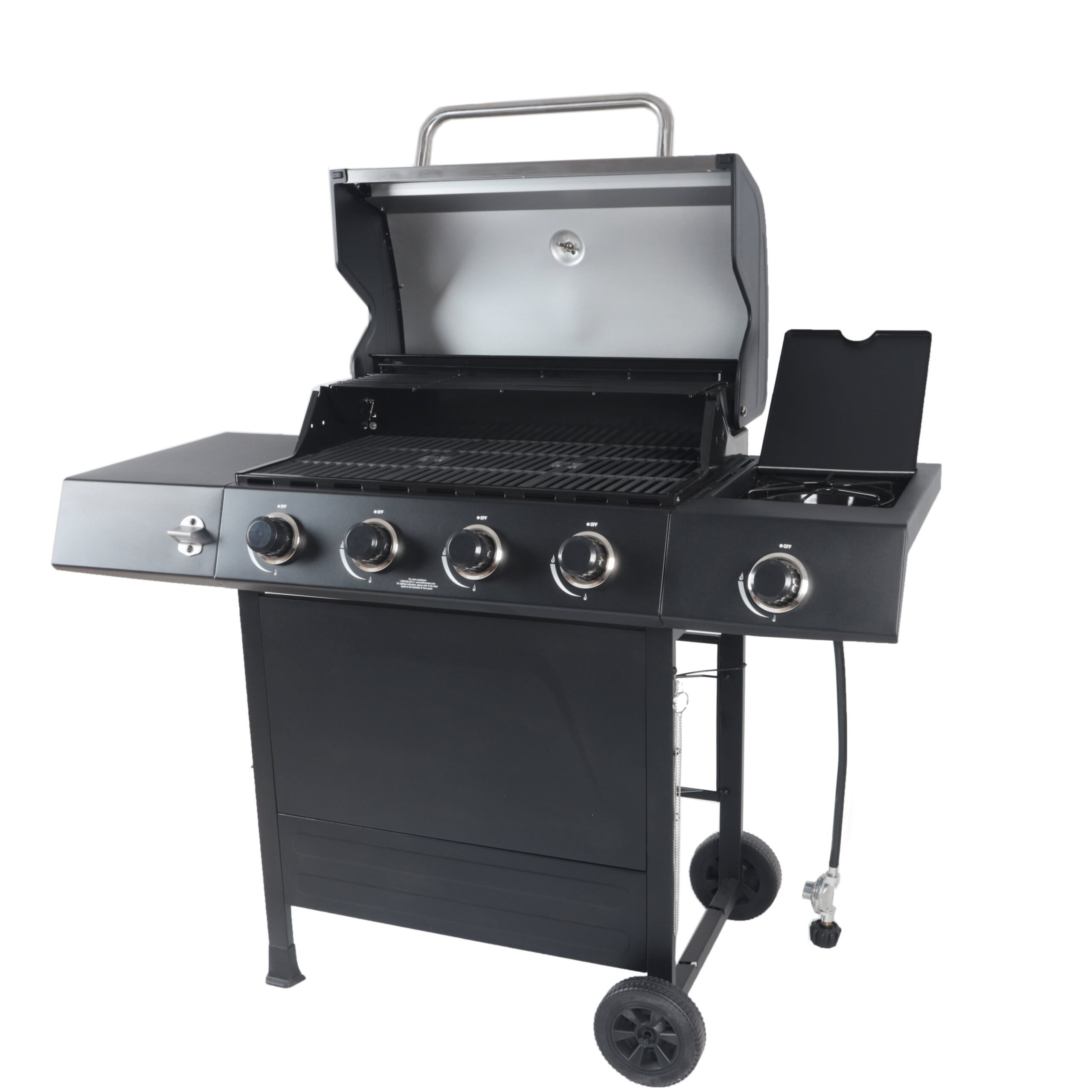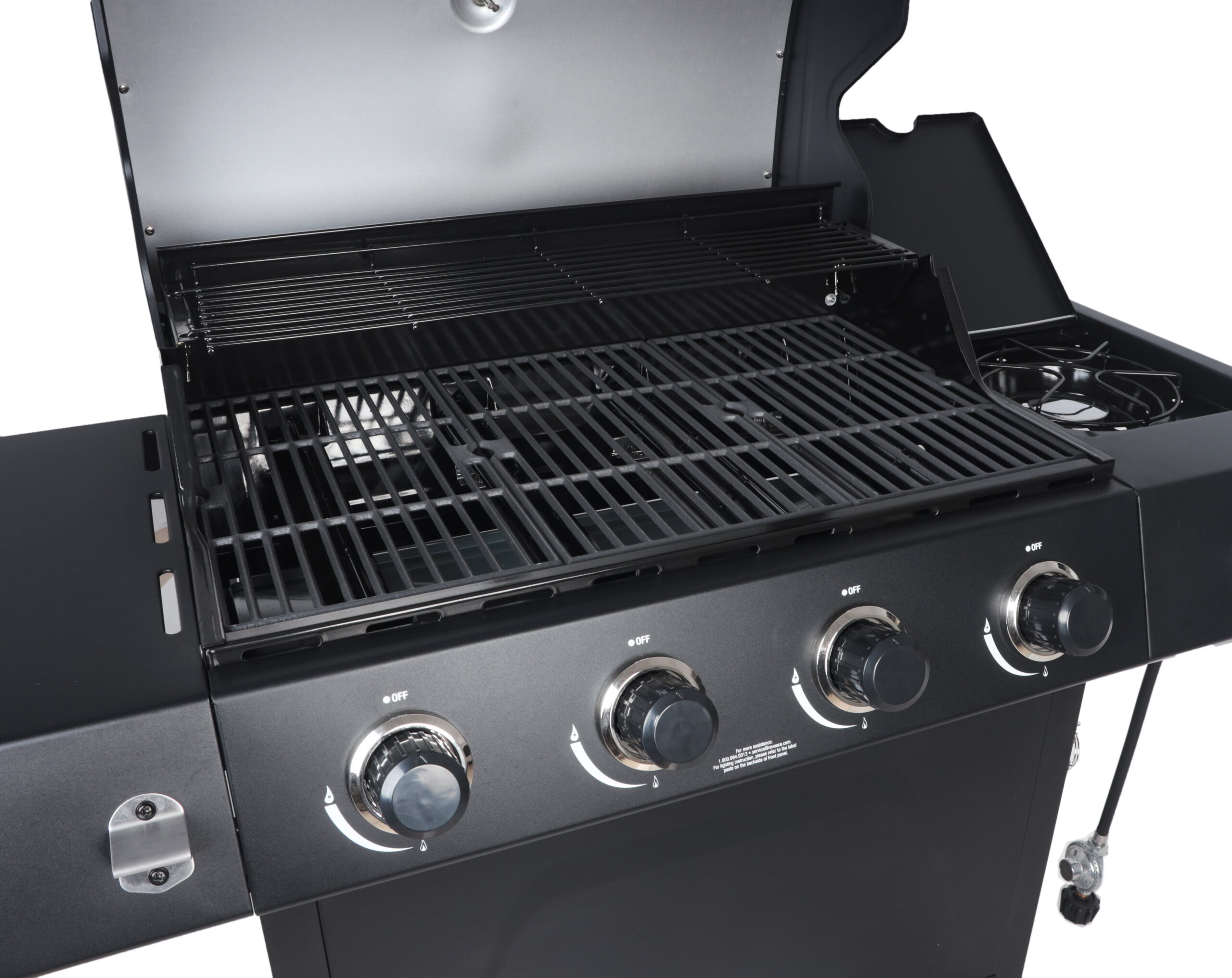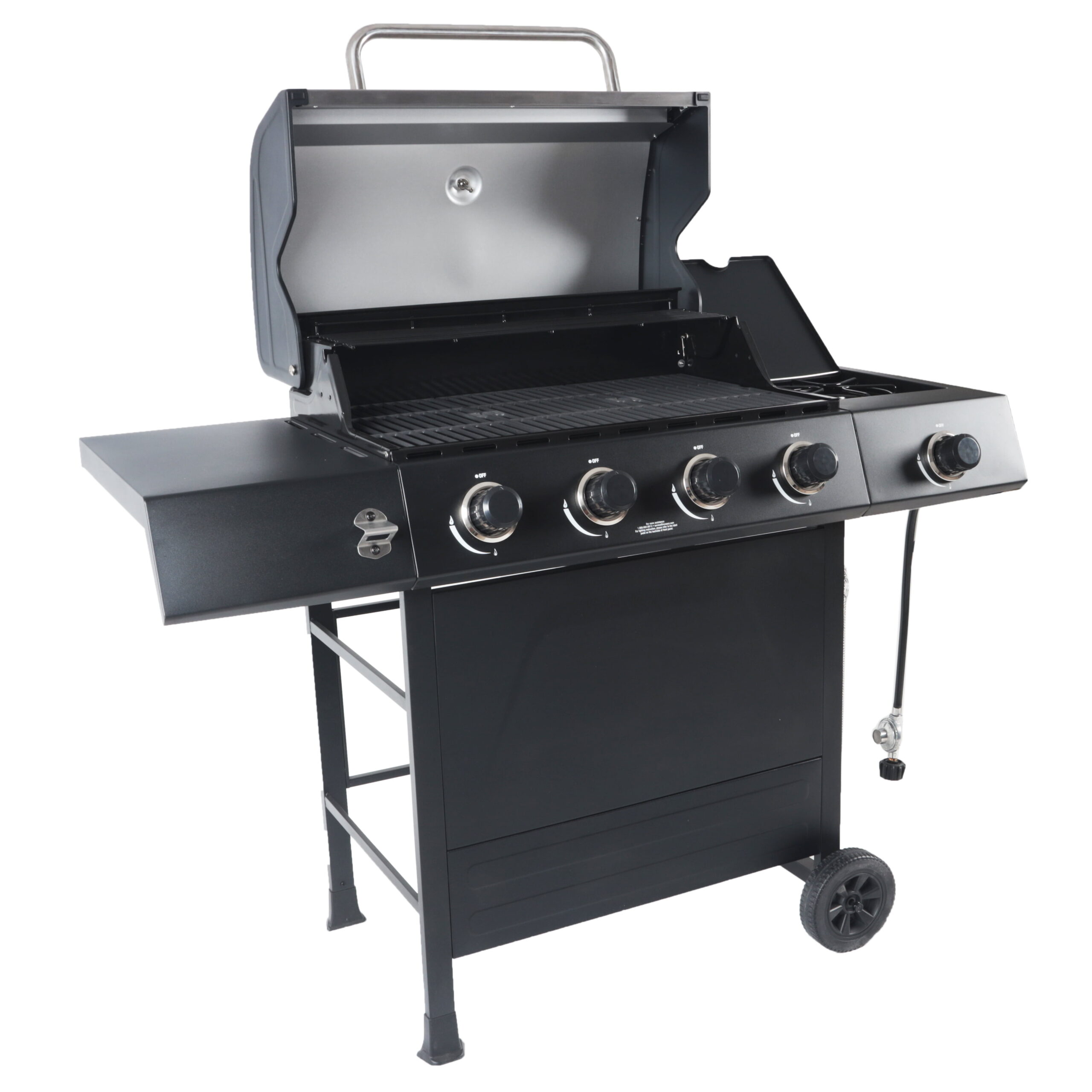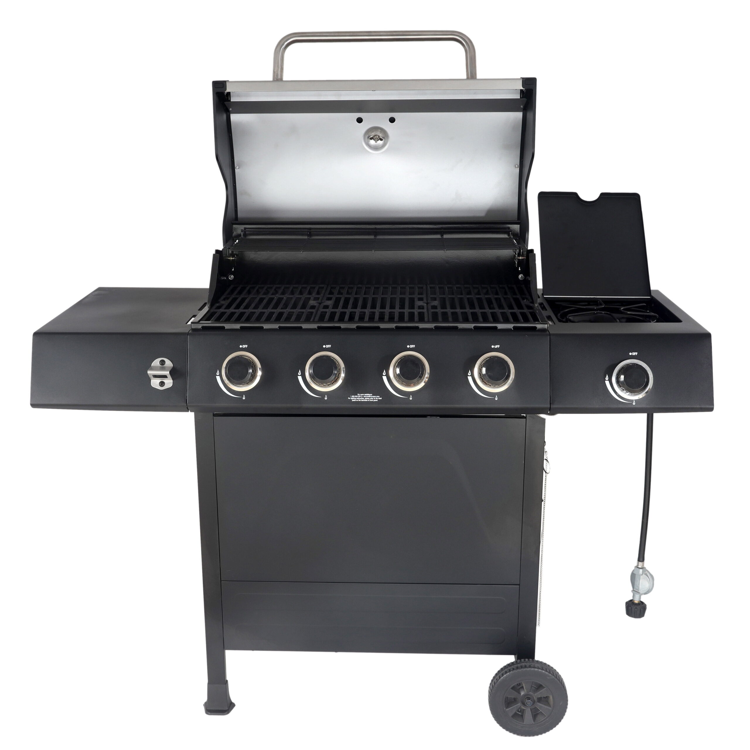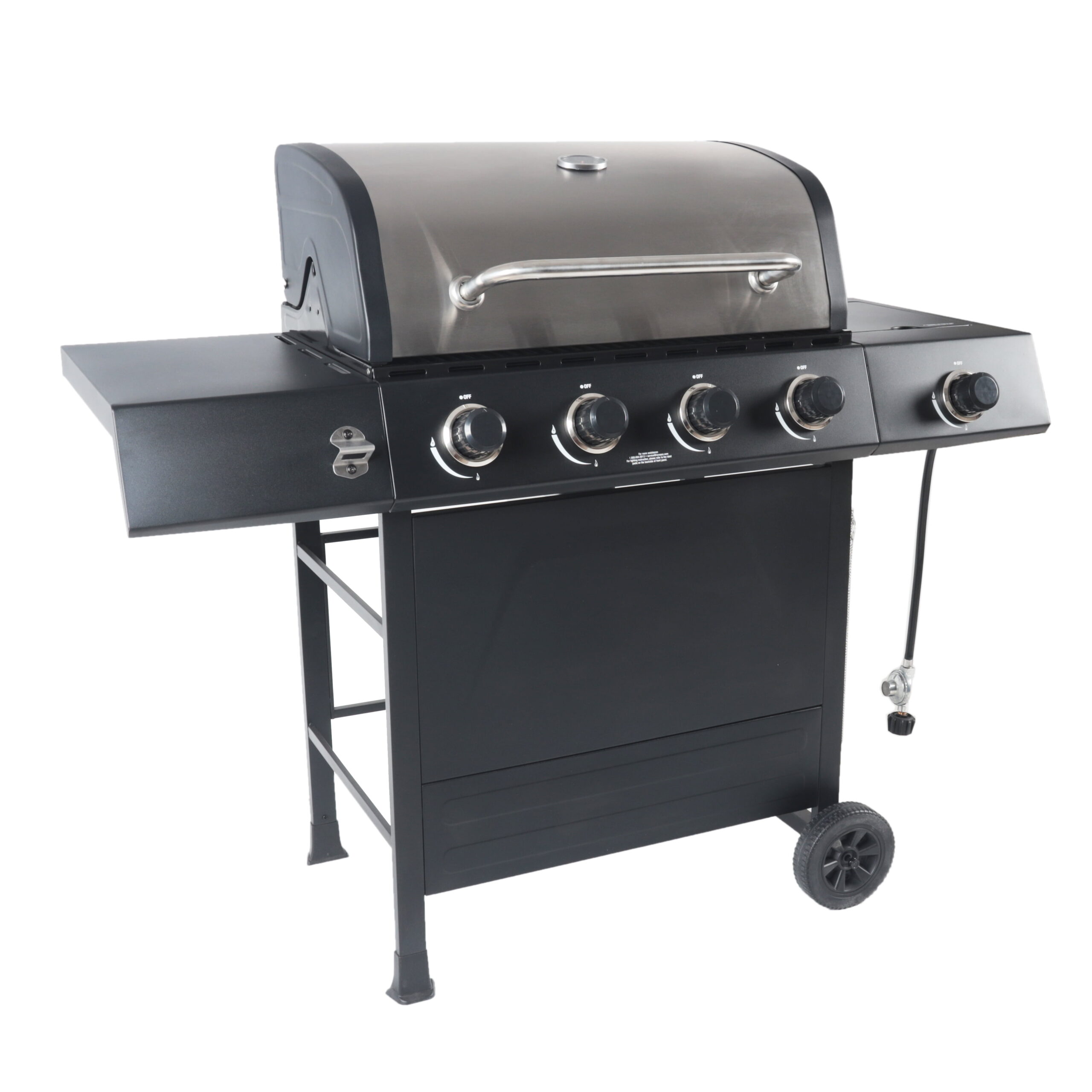 RevoAce 4-Burner Propane Gas Grill with Side Burner. Stainless Steel & Black