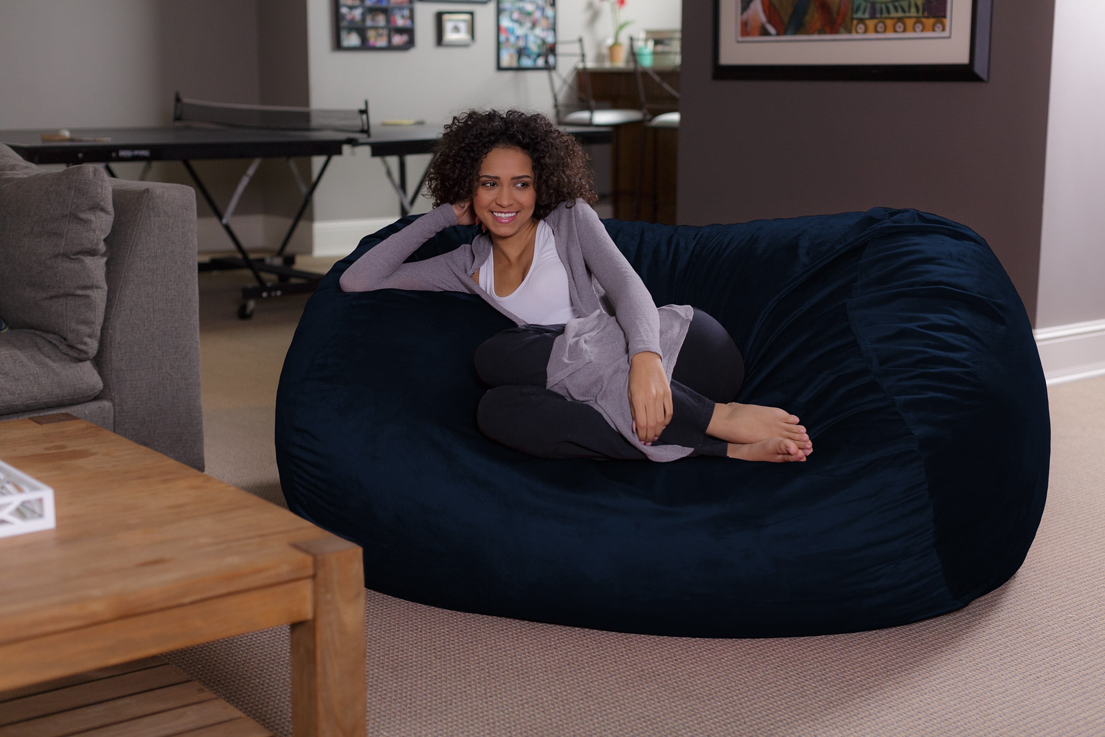 Sofa Sack Bean Bag Chair. Memory Foam Lounger with Microsuede Cover. Kids. Adults. 6 ft. Blue