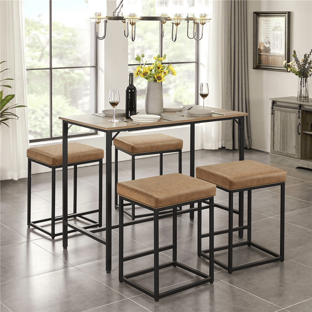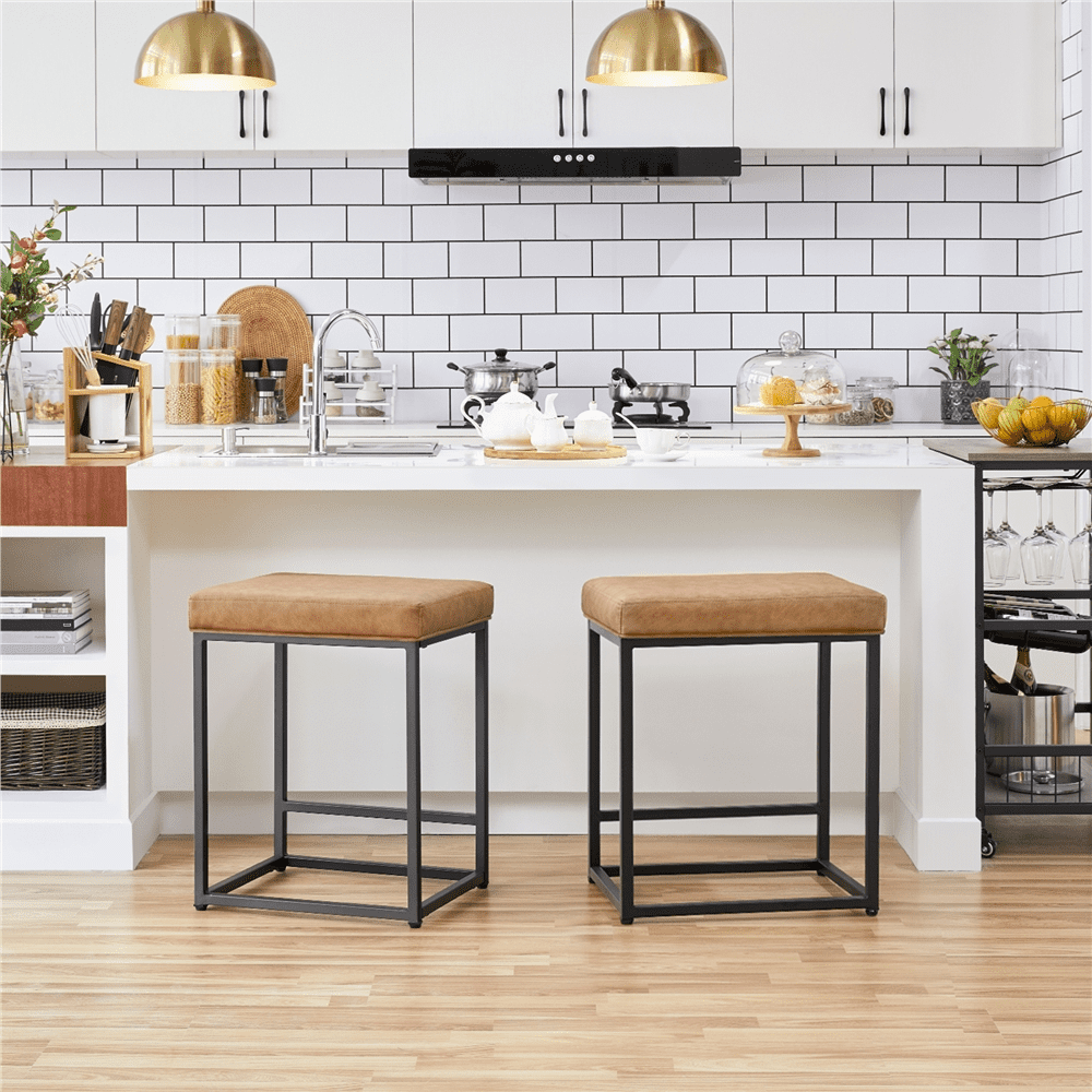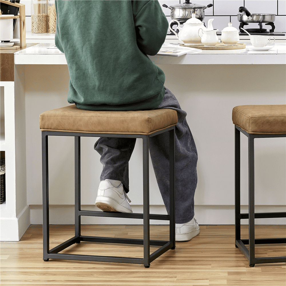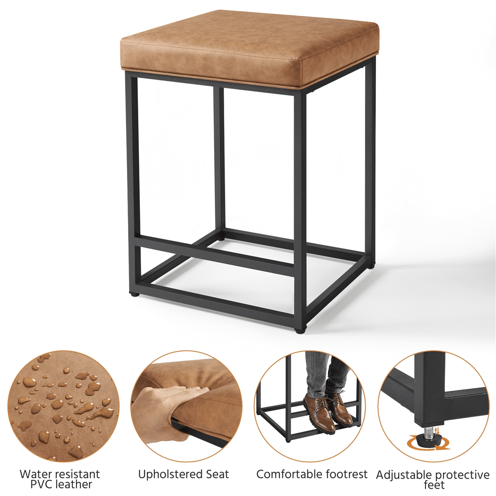 SMILE MART 24″ H Modern Leather Bar Stools Backless for Kitchen. 2pcs. Brown
