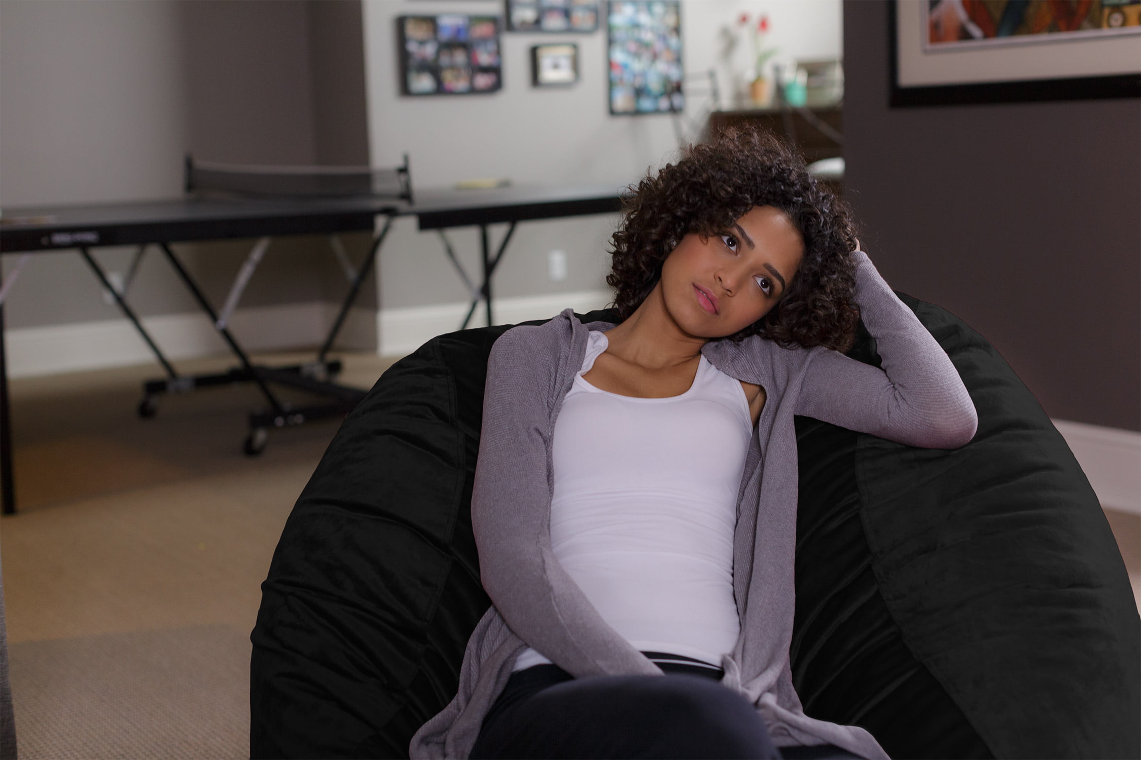 Sofa Sack Bean Bag Chair. Memory Foam Lounger with Microsuede Cover. Kids. Adults. 4 ft. Black