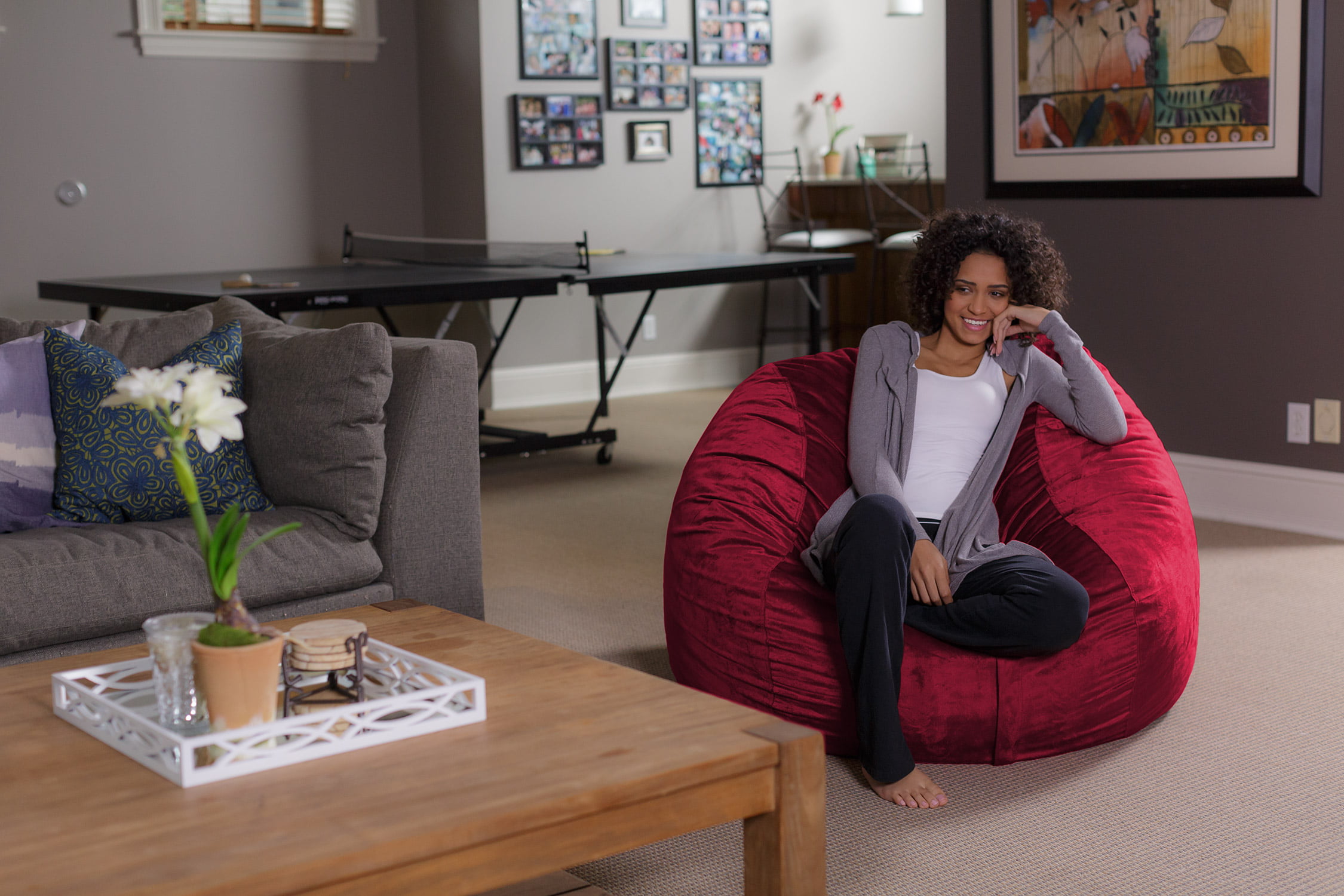 Sofa Sack Bean Bag Chair. Memory Foam Lounger with Microsuede Cover. Kids. Adults. 4 ft. Cinnabar