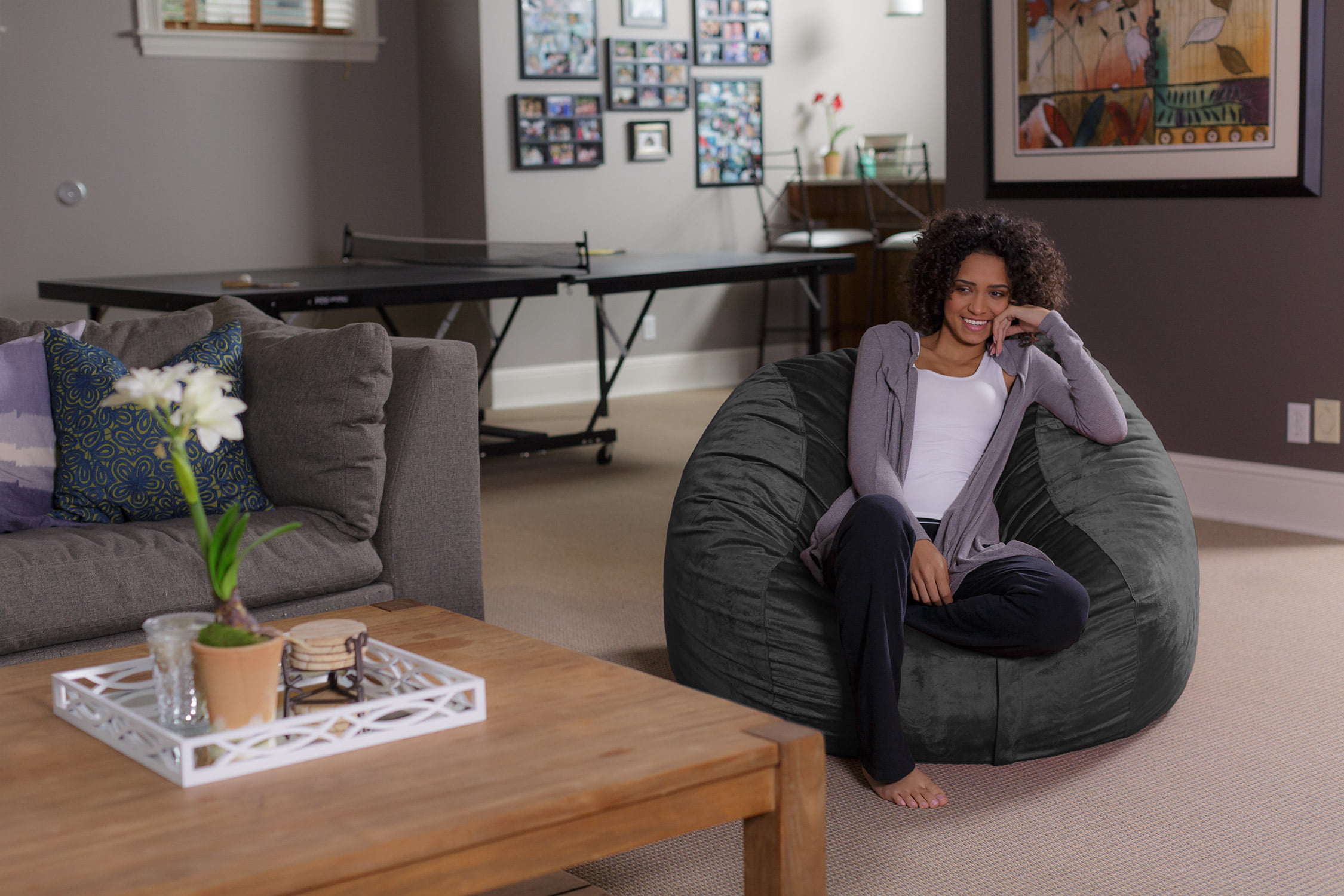 Sofa Sack Bean Bag Chair. Memory Foam Lounger with Microsuede Cover. Kids. Adults. 4 ft. Charcoal