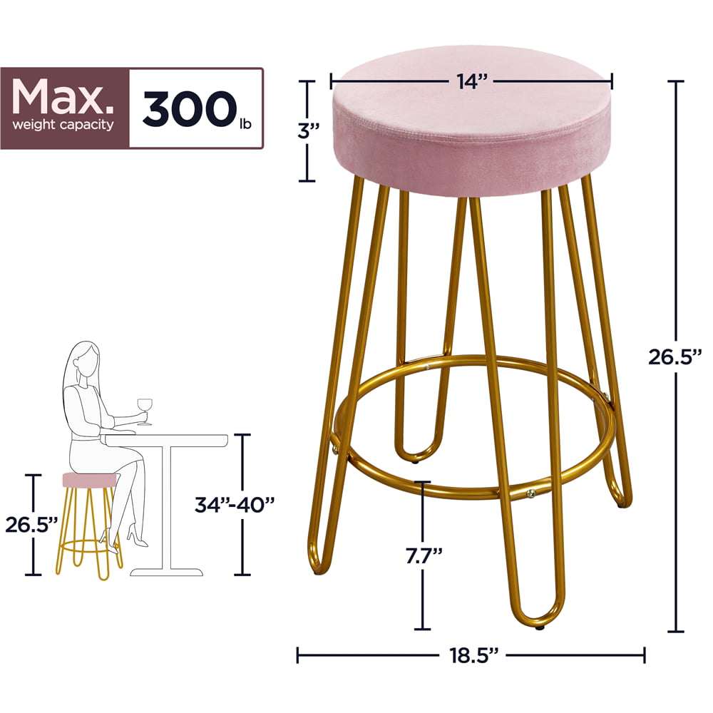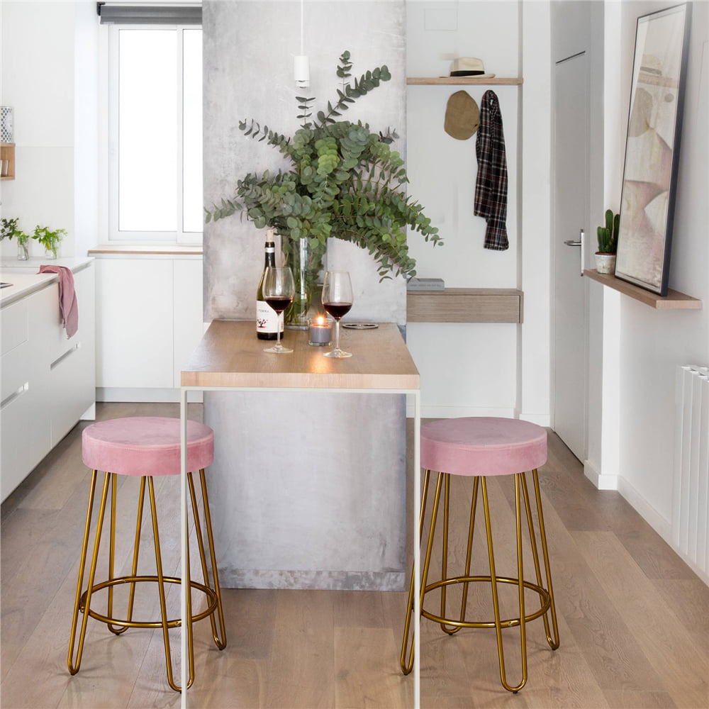 SMILE MART 26.5″ Upholstered Velvet Bar Stools for Kitchen. 2pcs. Pink with Gold