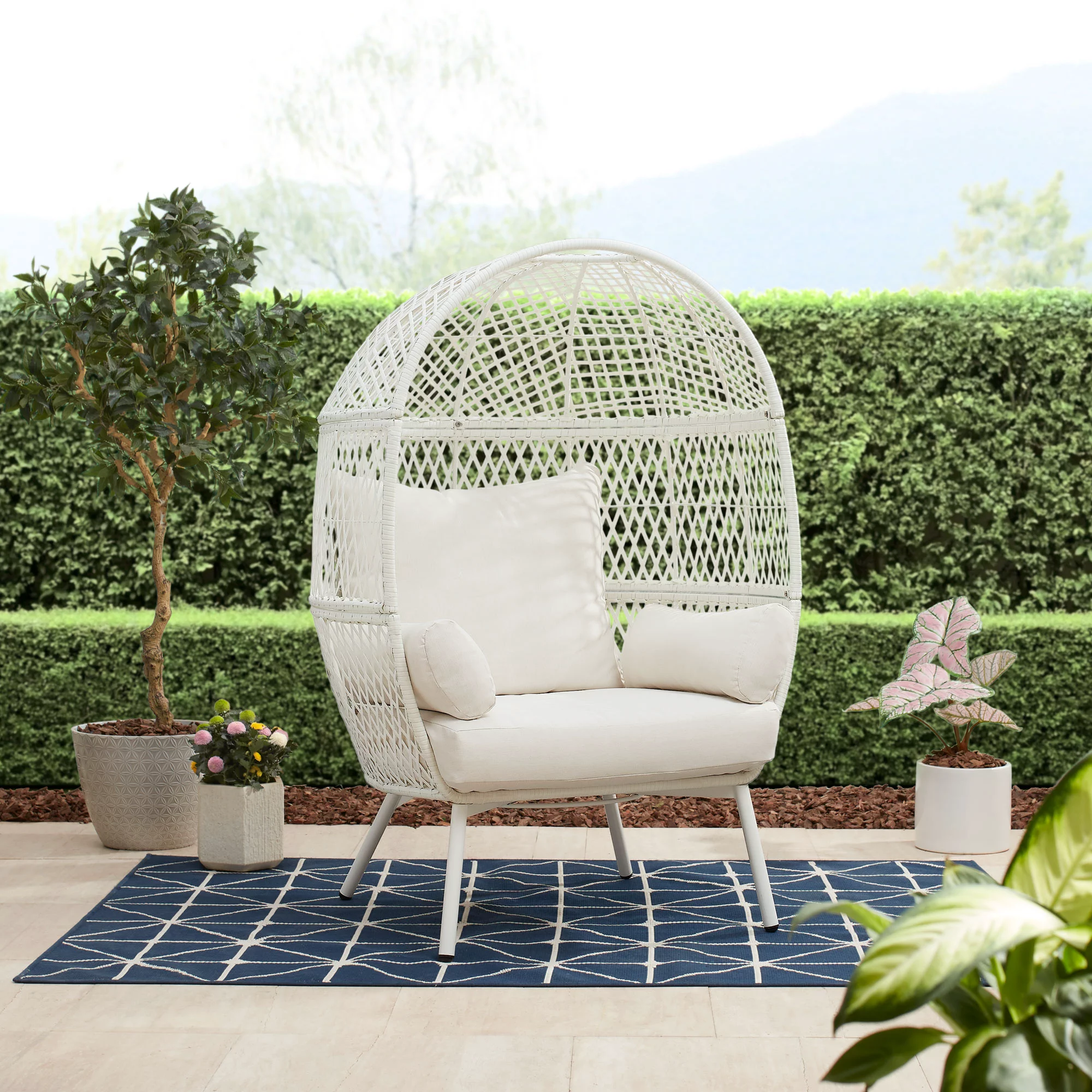 Better Homes & Gardens Ventura Steel Stationary Wicker Egg Chair – Cream