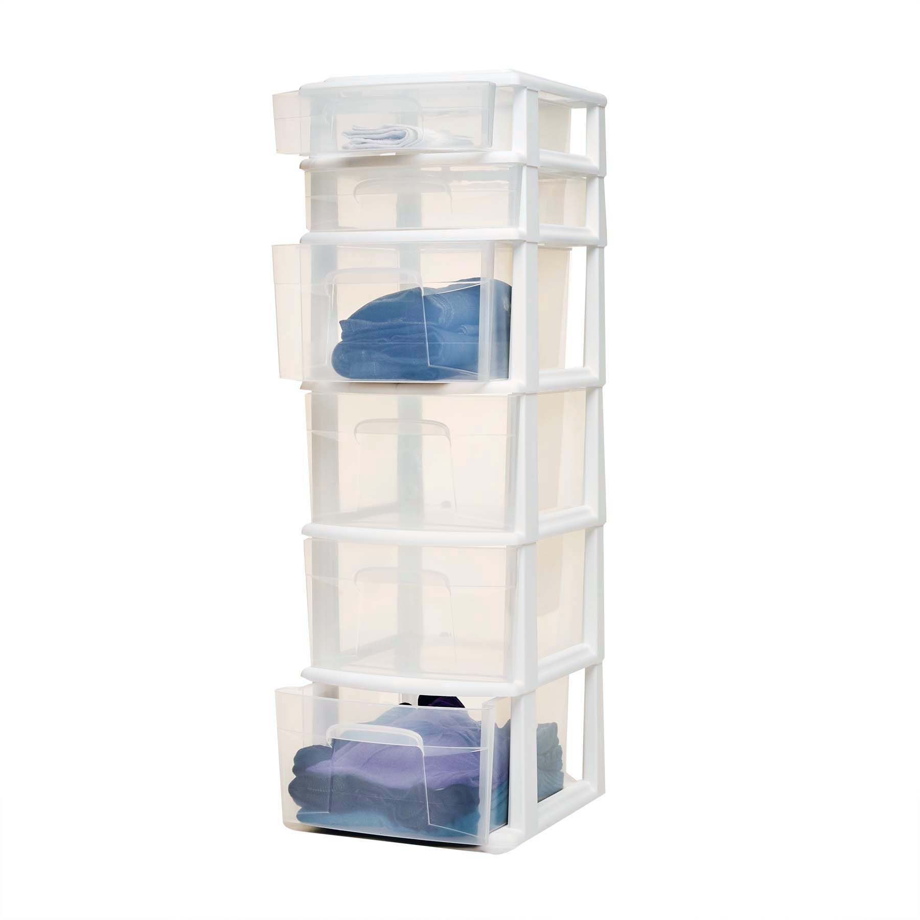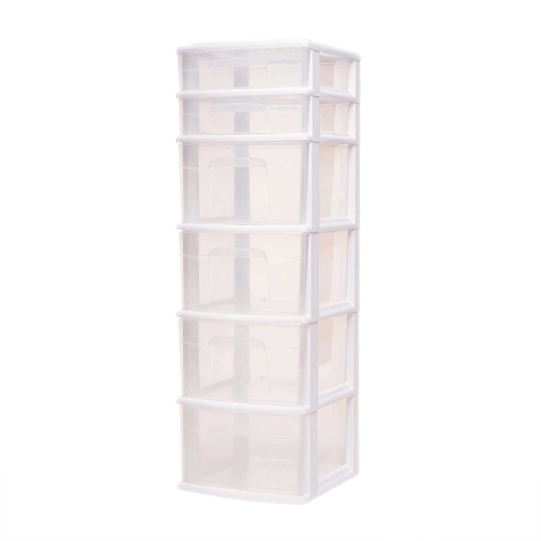 Homz 6-Drawer Medium Tower. White. Set of 1