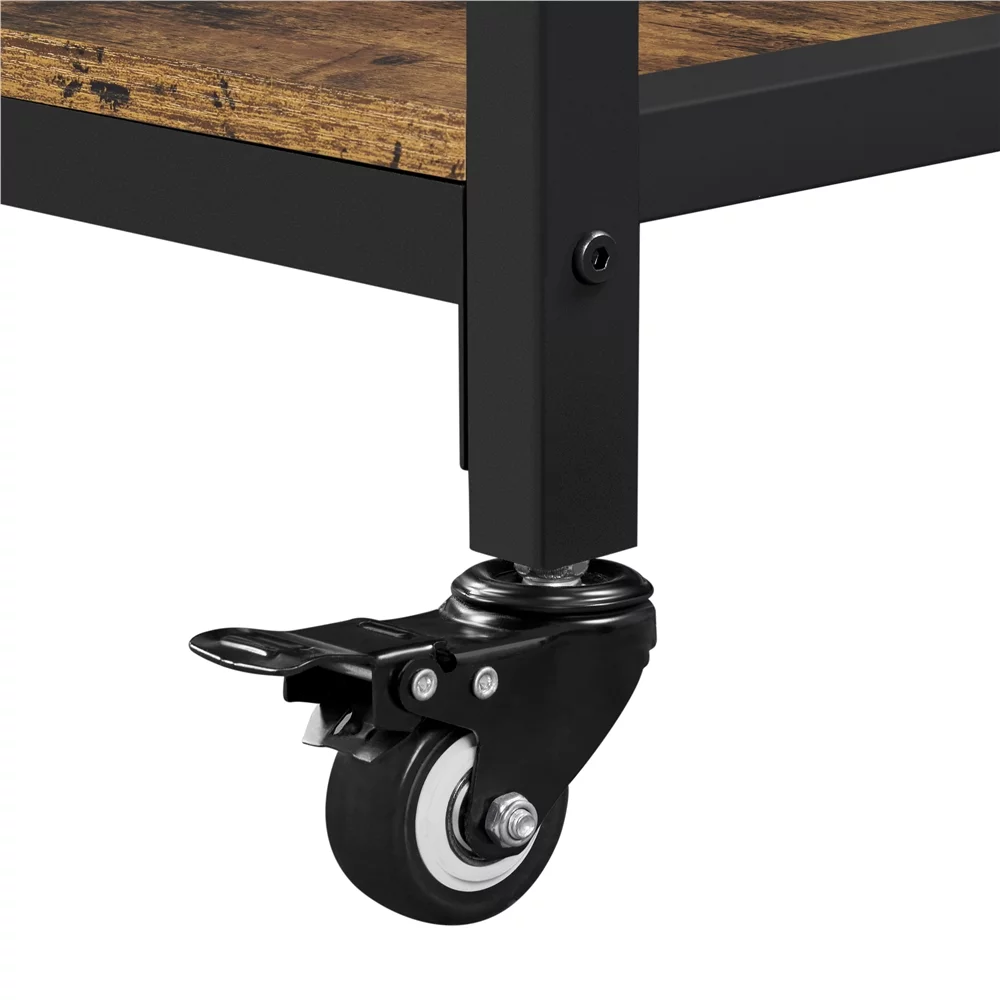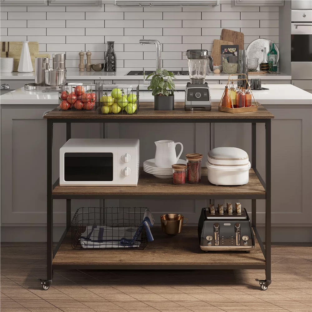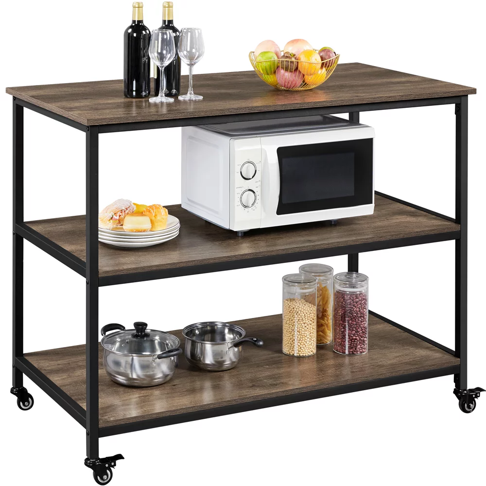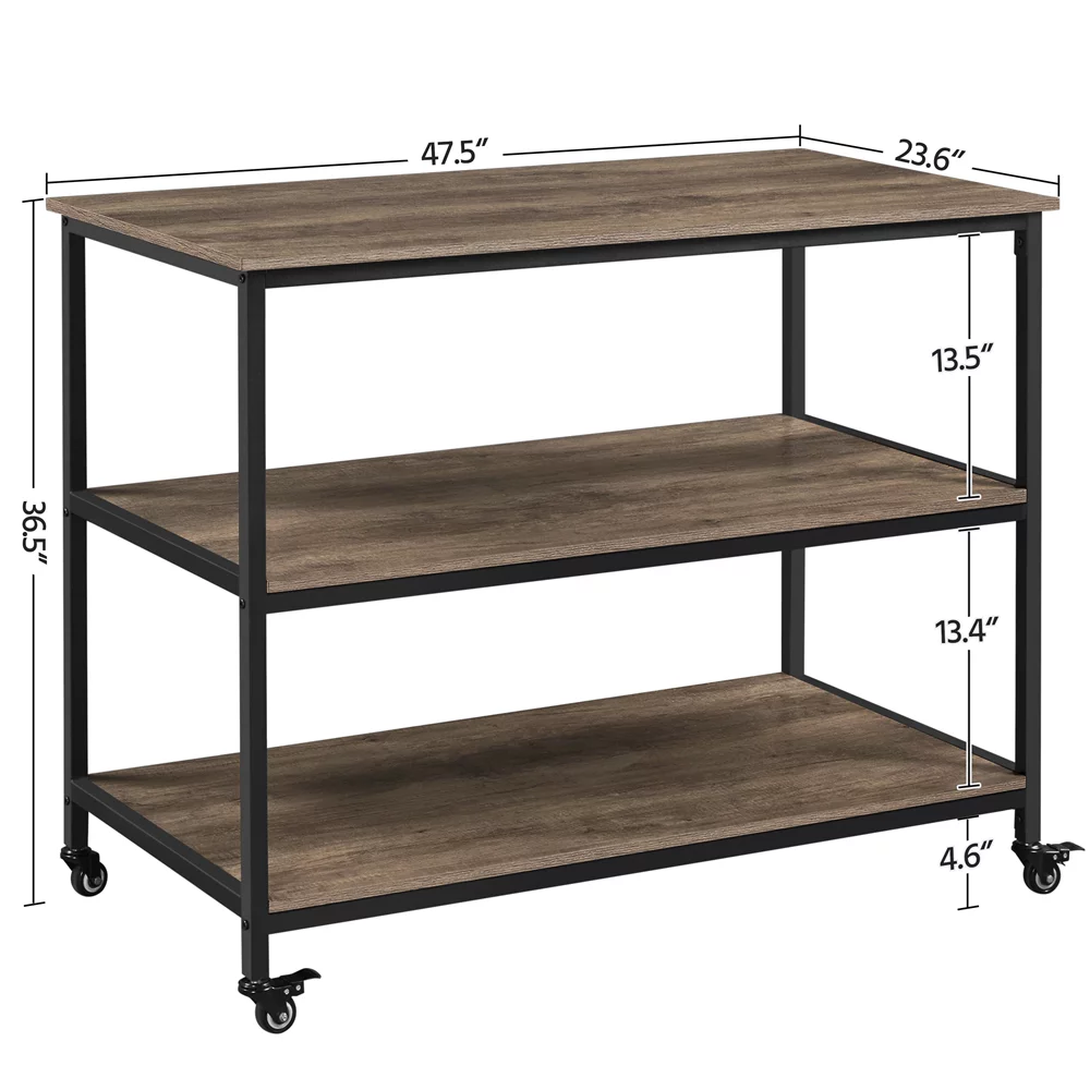 Yaheetech Rolling Kitchen Island with 3 Shelves and Worktop. Taupe Wood