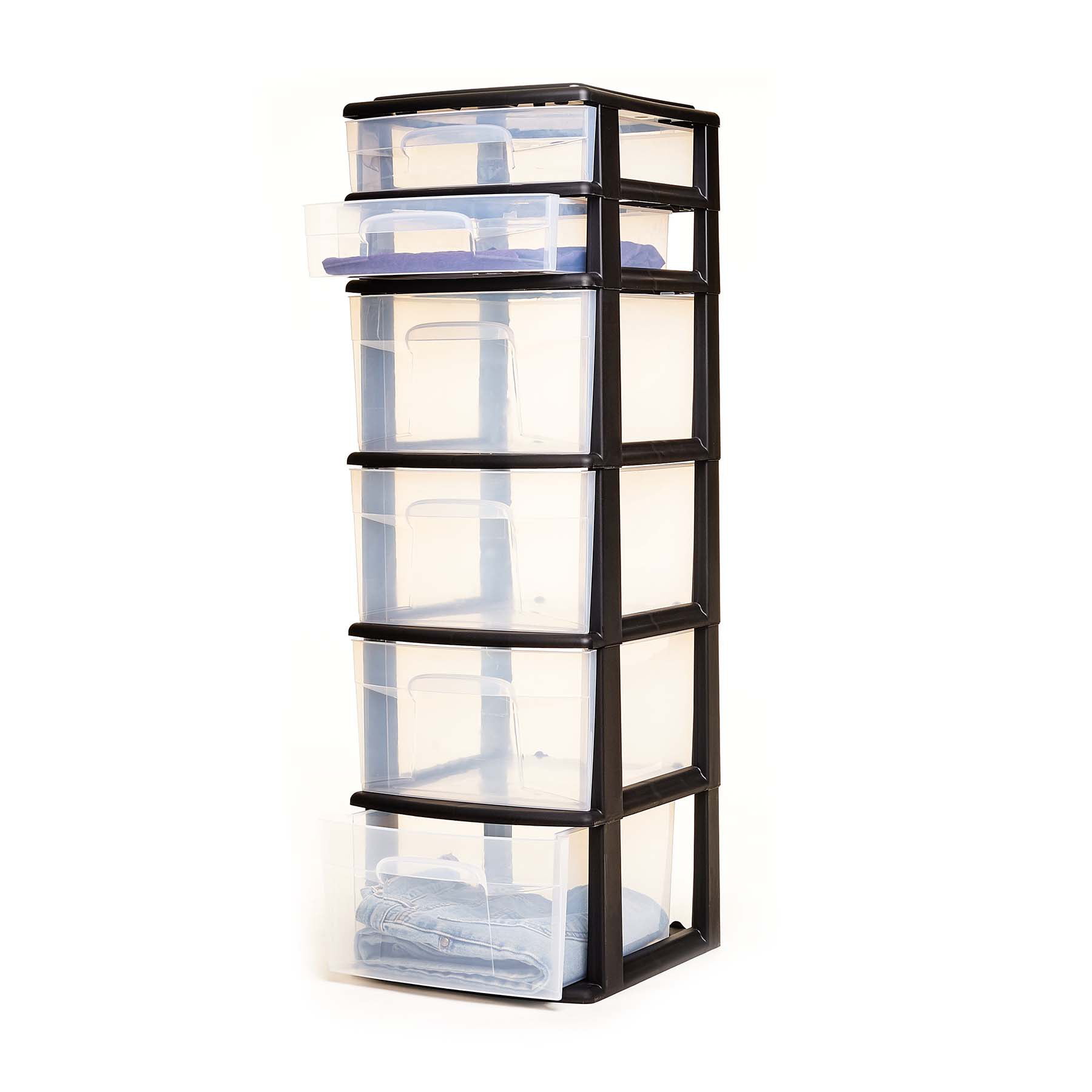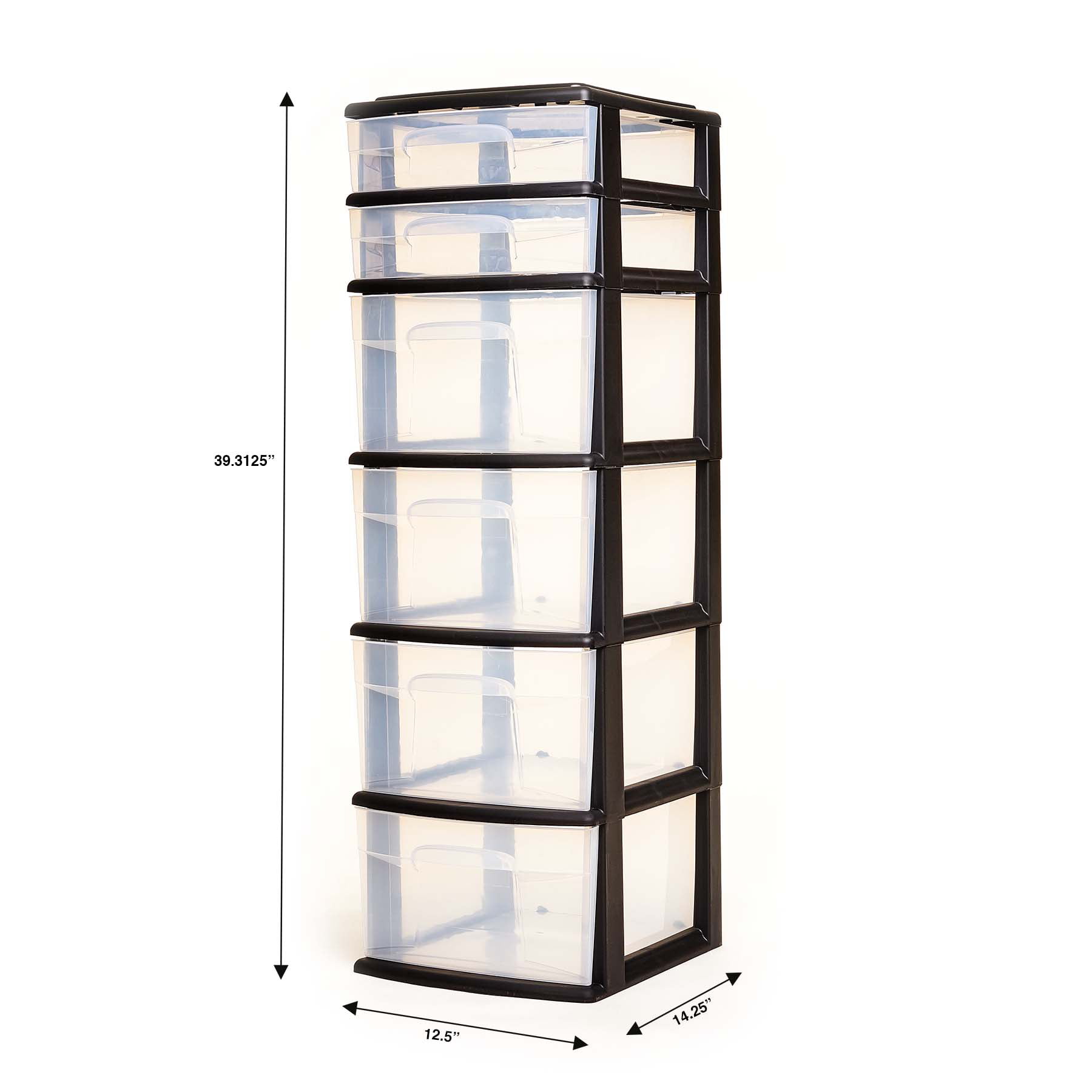 Homz® 6 Drawer Medium Tower. Black Plastic Frame with Clear Drawers. Set of 1