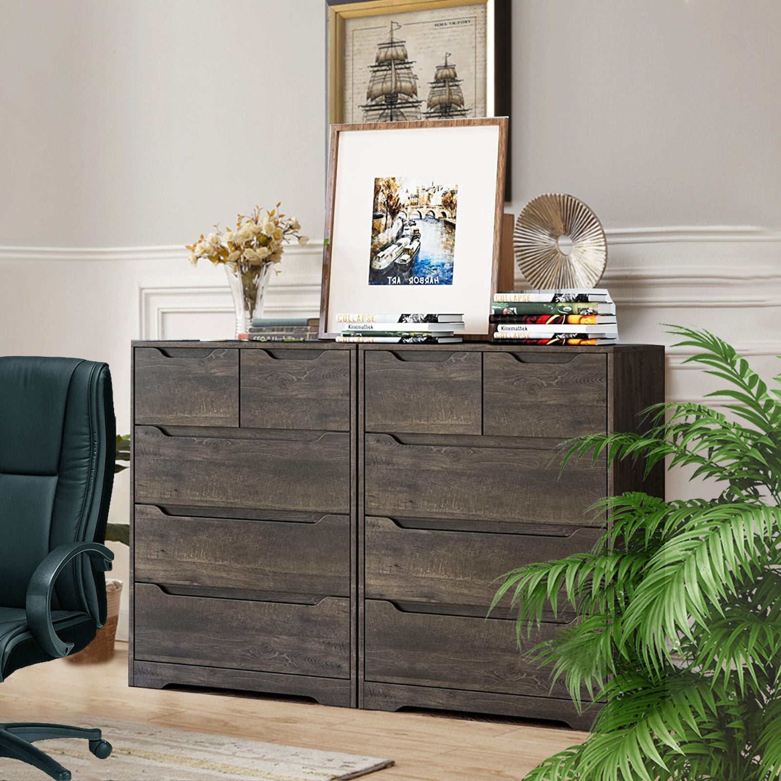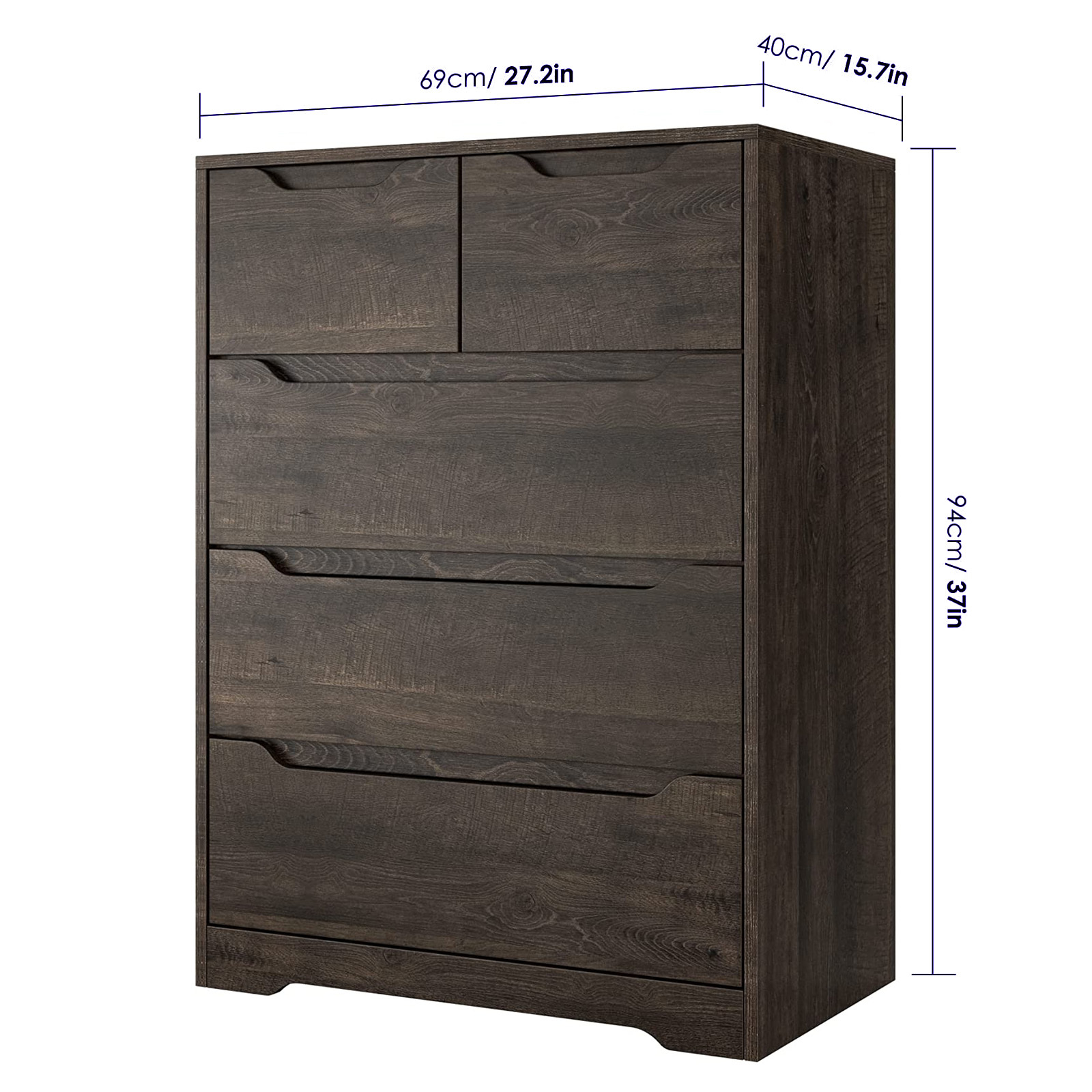 Homfa Dresser for Bedroom. Wood Storage Chest of 5 Drawers with Cutout Handles for Living Room. Dark Brown