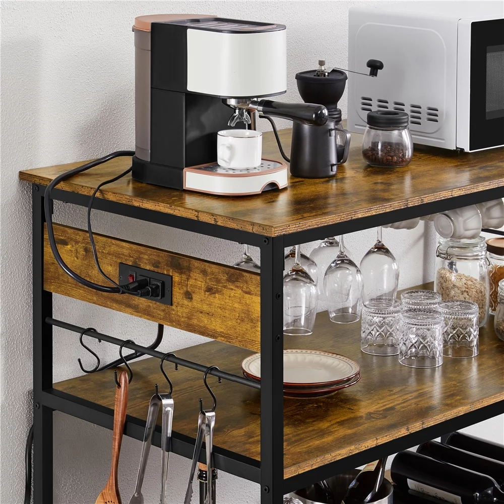 Yaheetech Rolling Kitchen Island with 3 Shelves. Glass Holder and Power Outlets. Rustic Brown