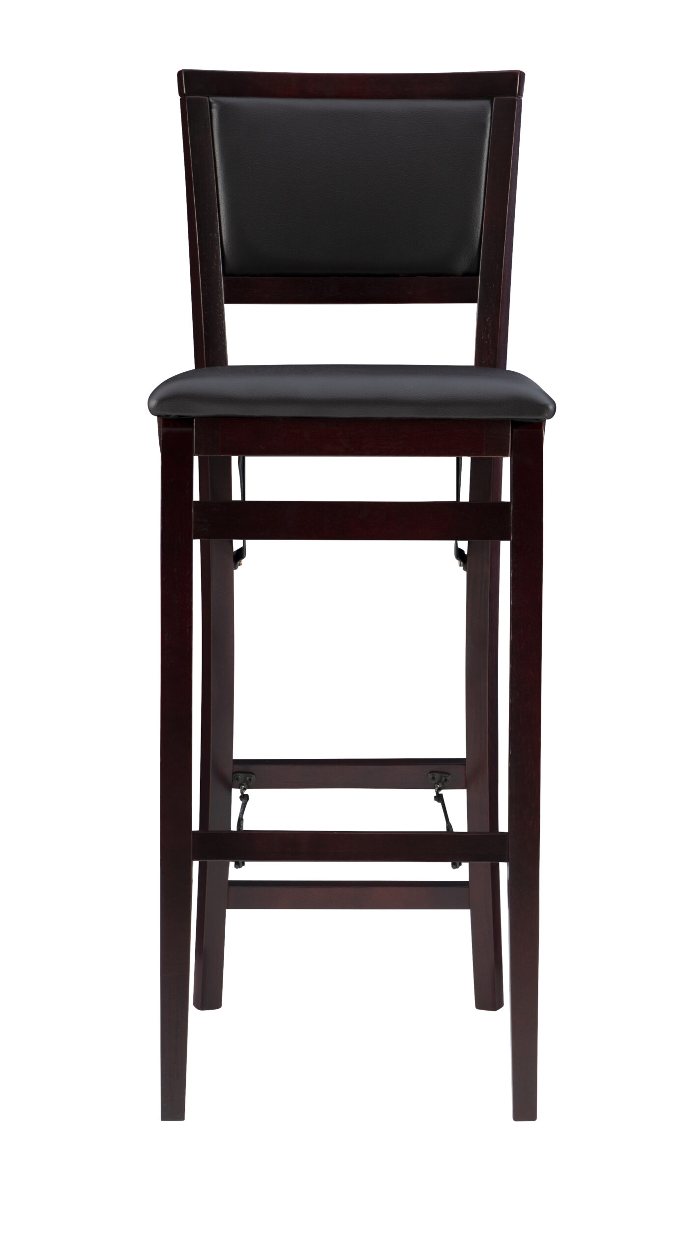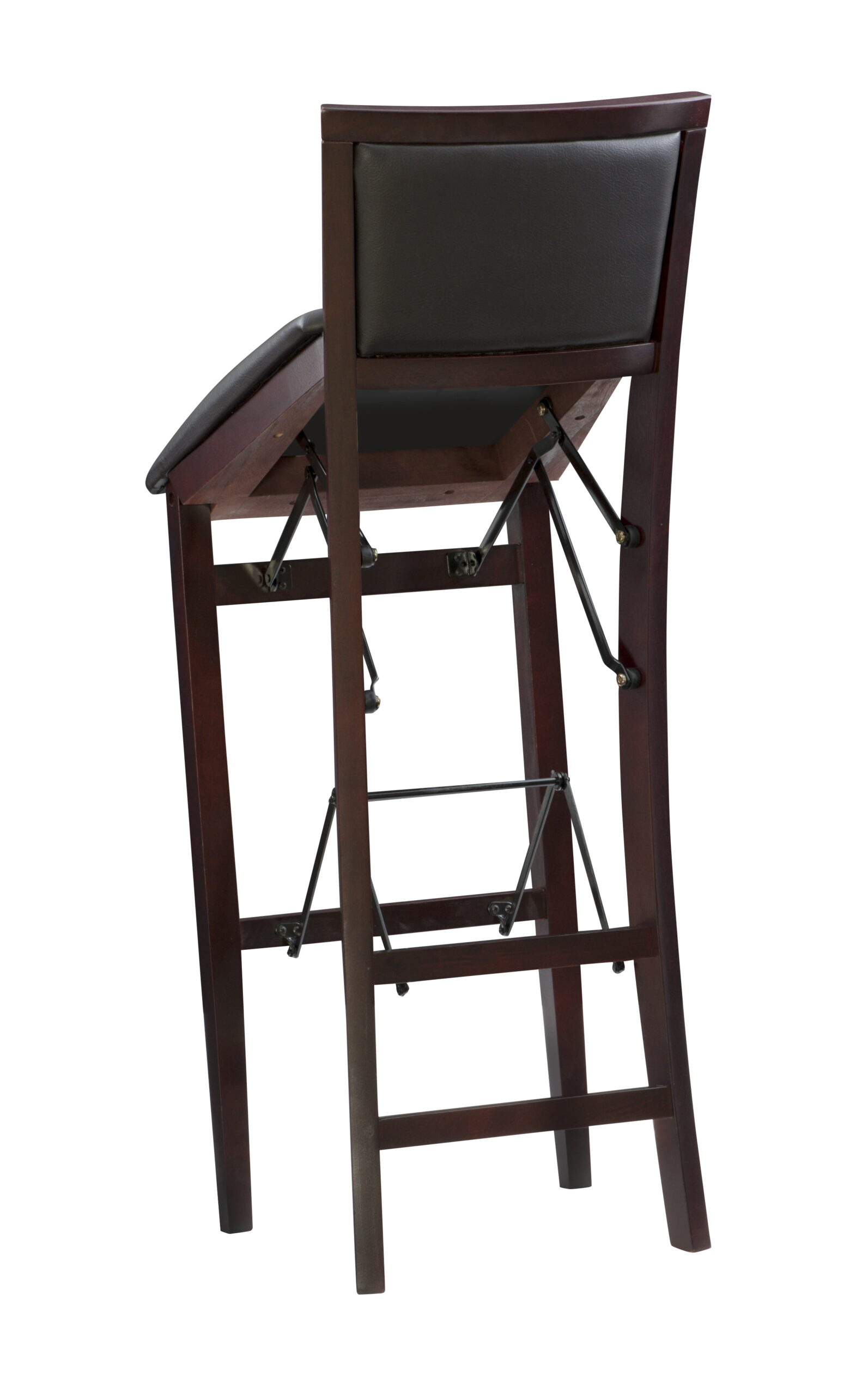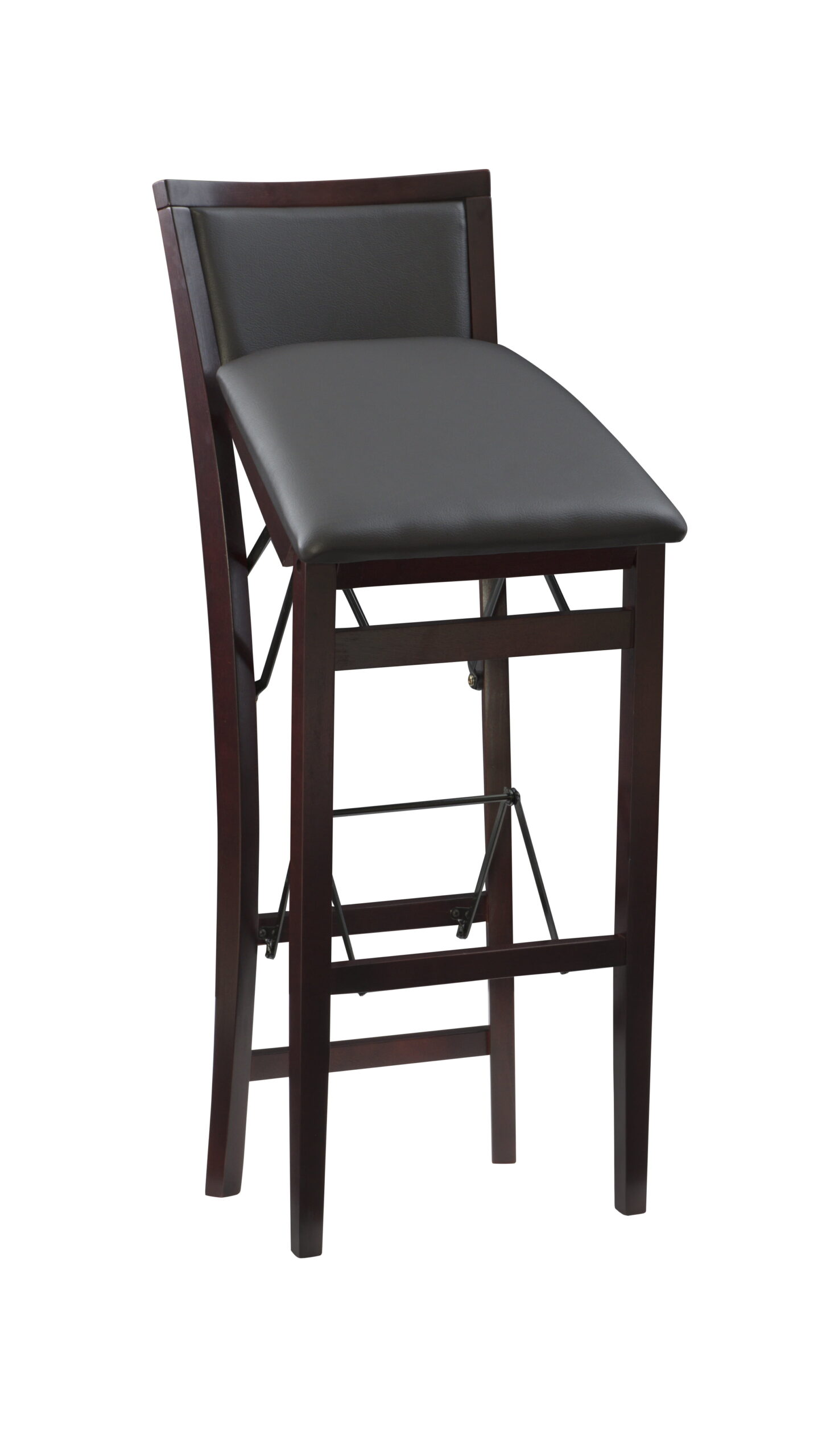 Linon Triena 30″ Folding Padded Back Bar Stool. Espresso with Dark Brown Faux Leather