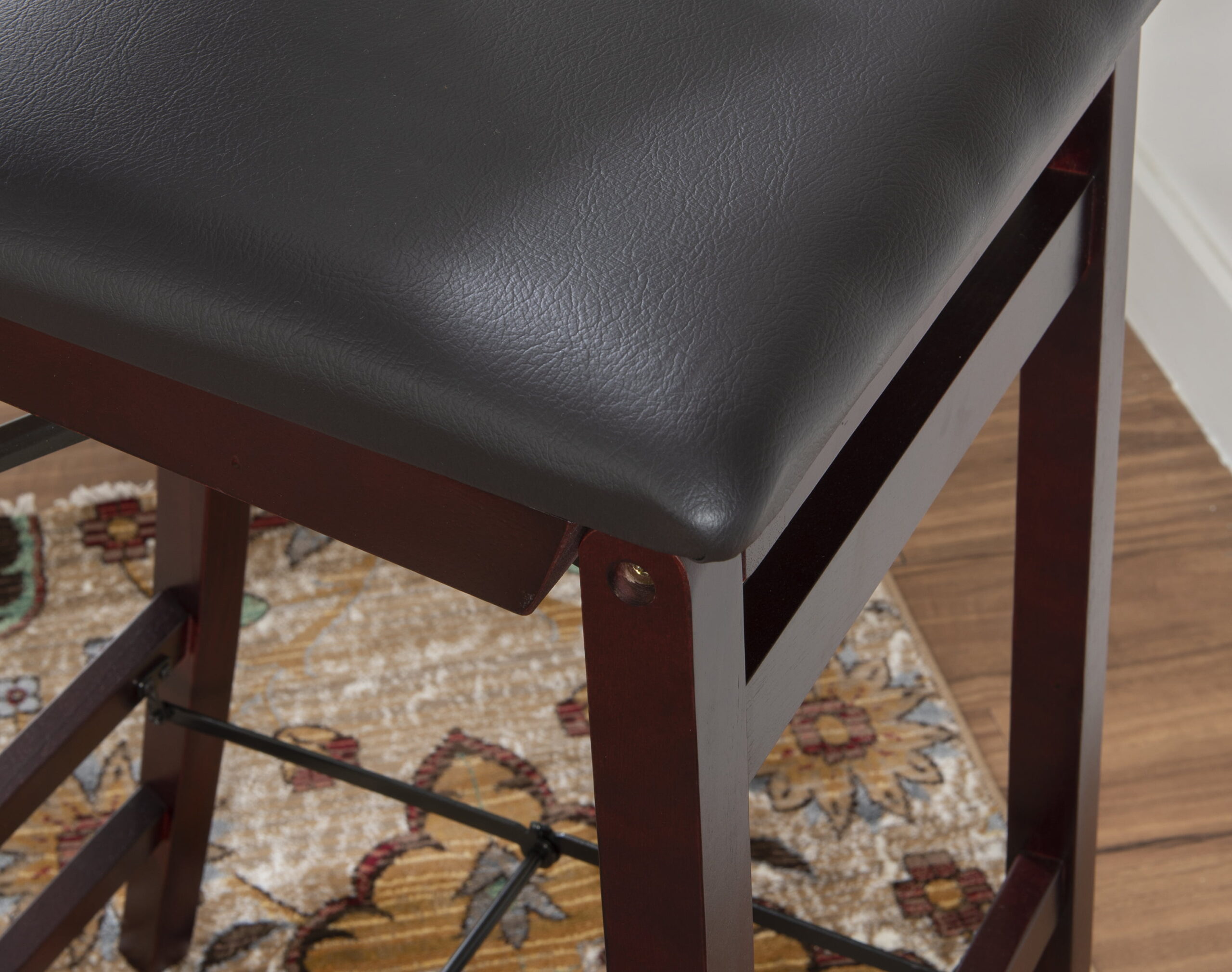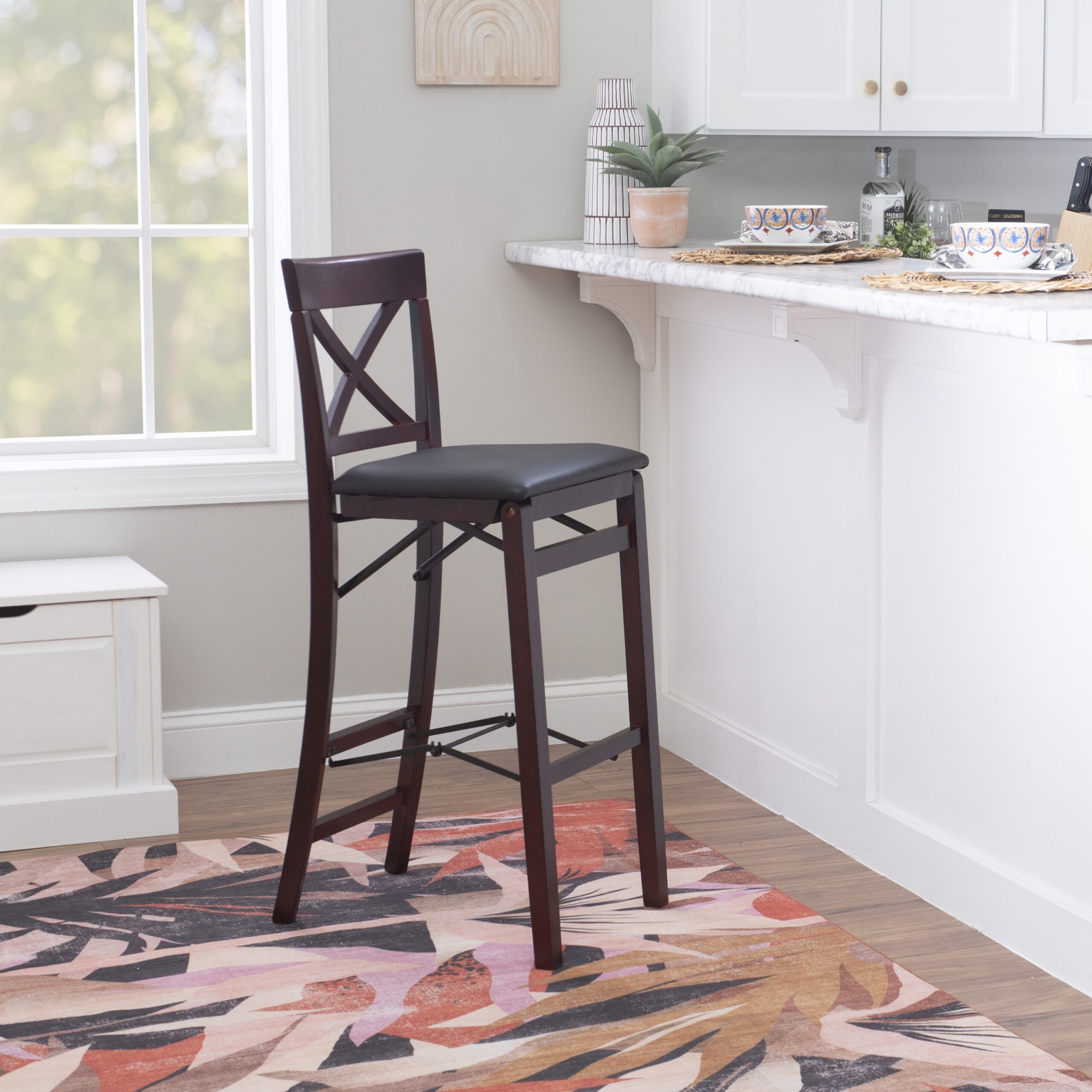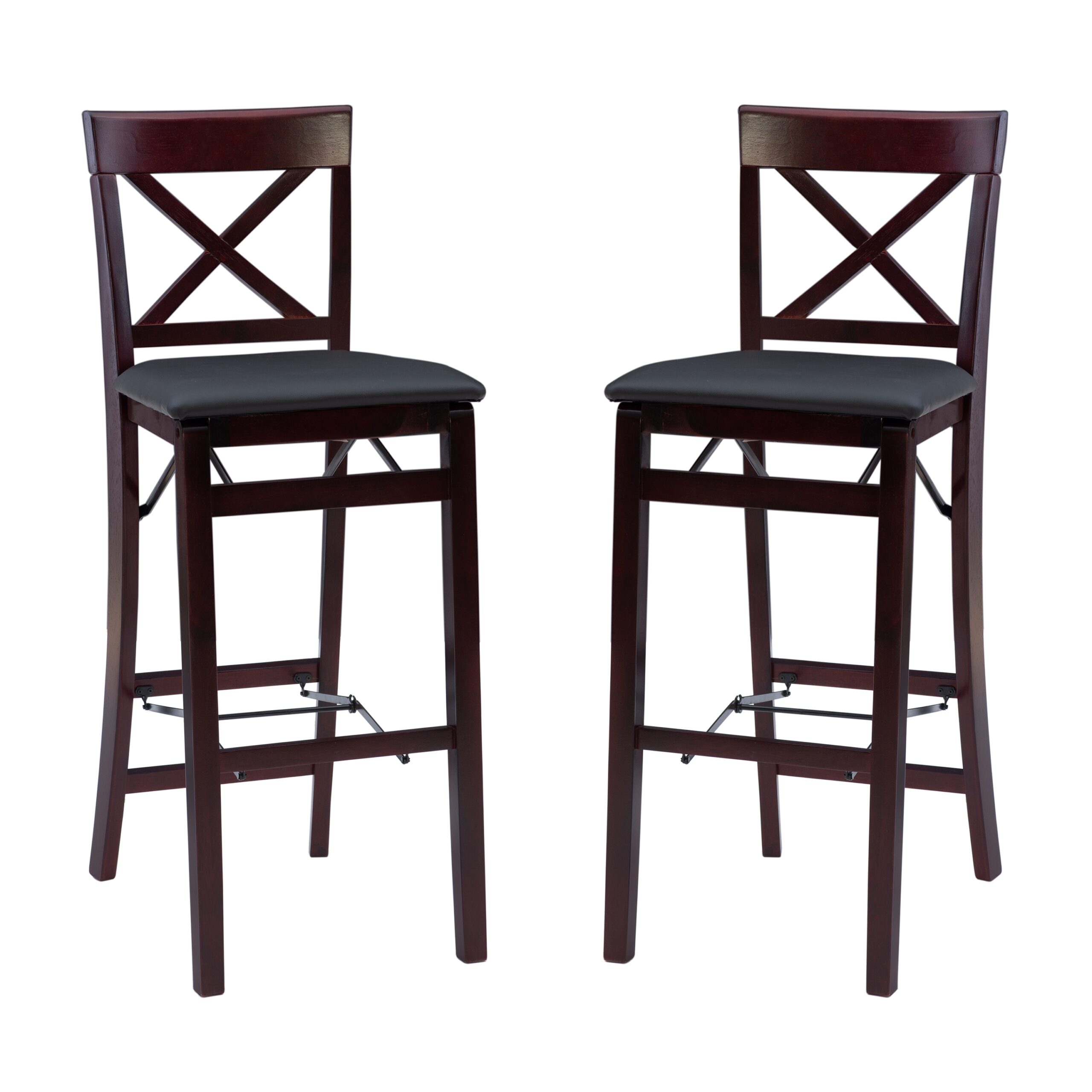 Linon Triena 30″ Folding Padded Back Bar Stool. Espresso with Dark Brown Faux Leather