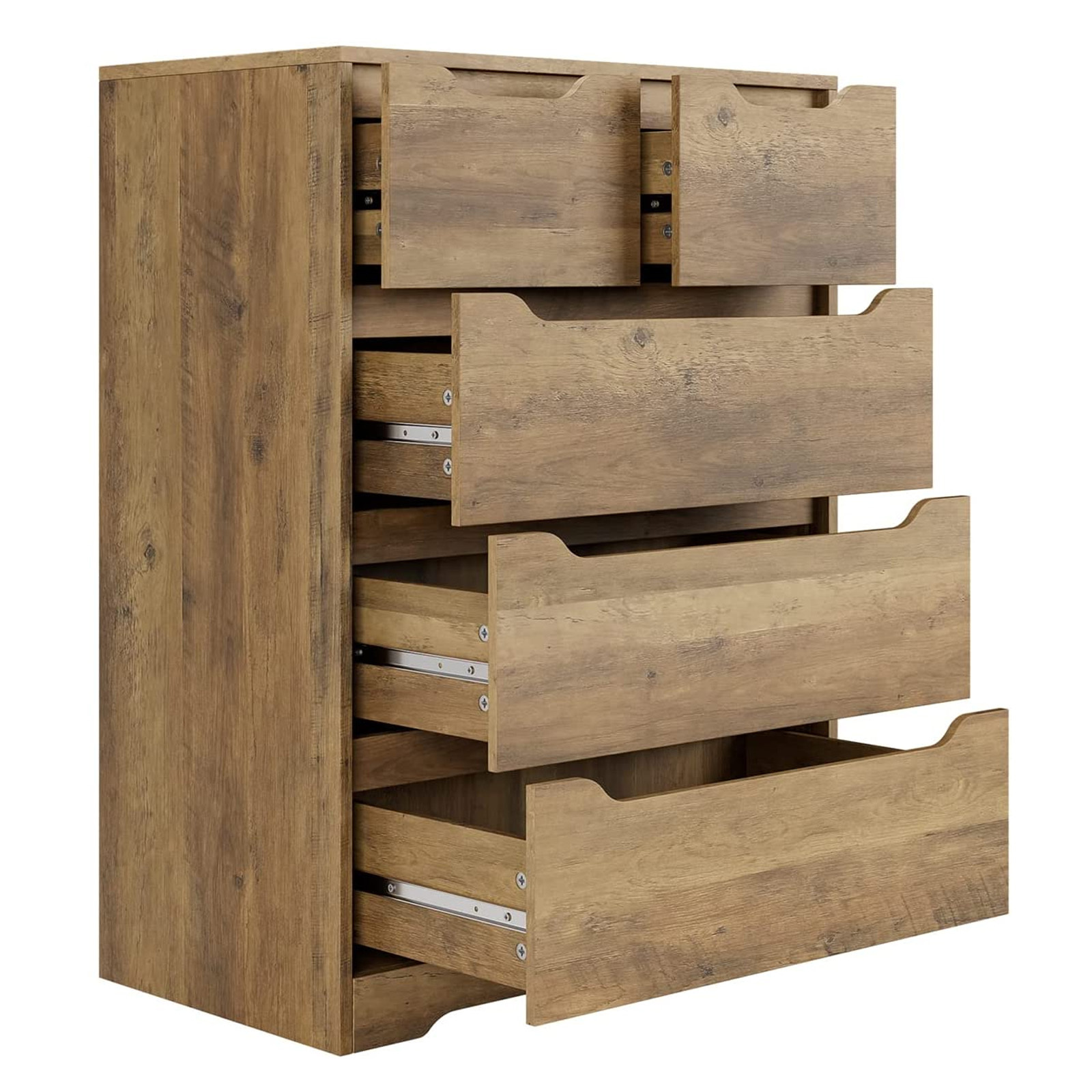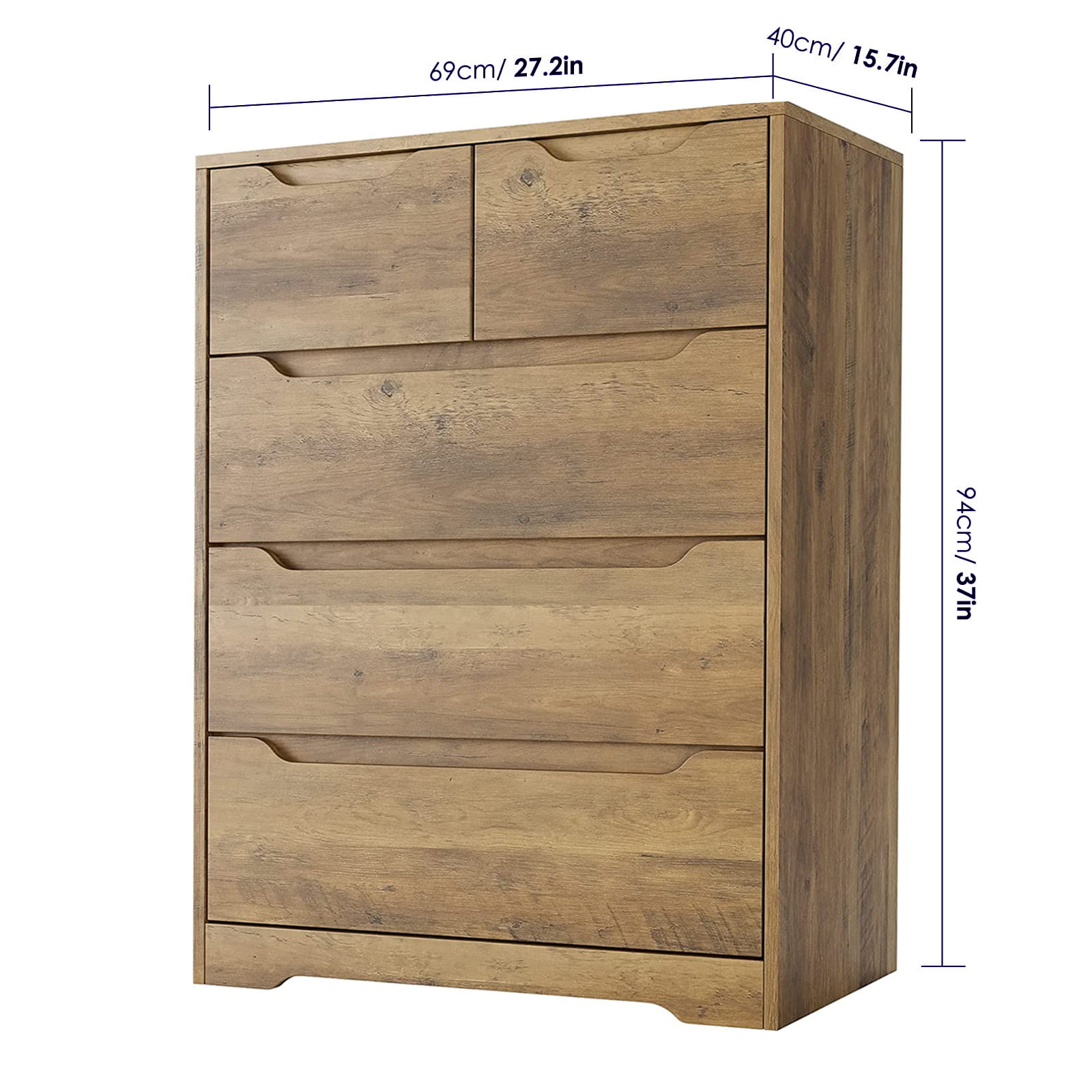 Homfa Dresser for Bedroom. Wood Storage Chest of 5 Drawers with Cutout Handles for Living Room. Rustic Brown