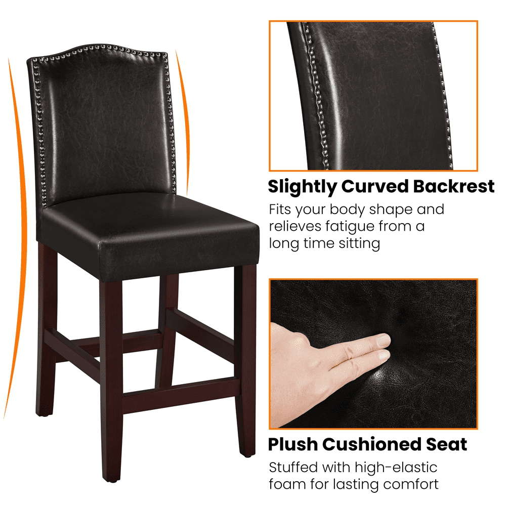 SMILE MART 25.5″H Leather Counter Height Bar Stools Fullback. 2pcs. Brown