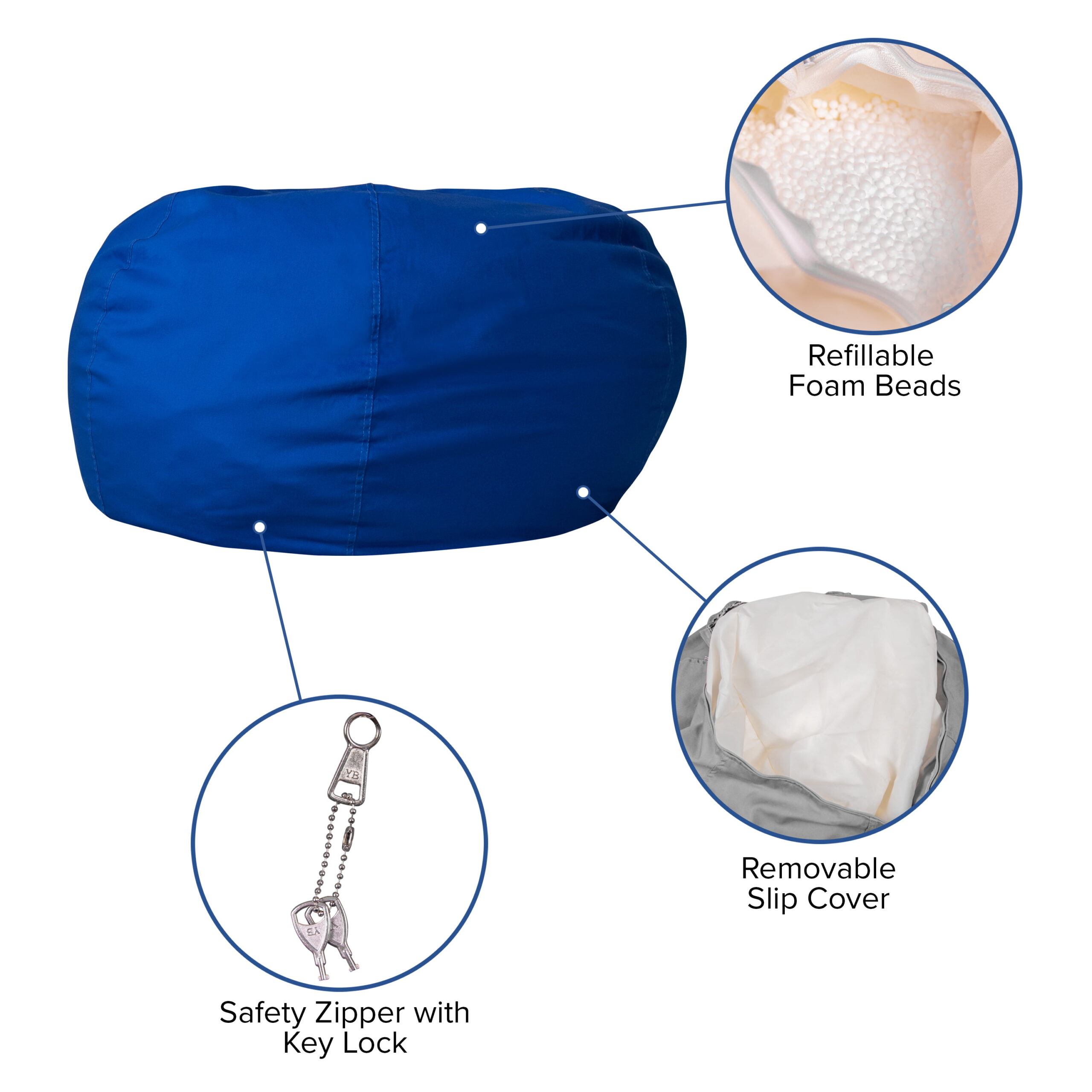 Flash Furniture Oversized Solid Royal Blue Refillable Bean Bag Chair for All Ages