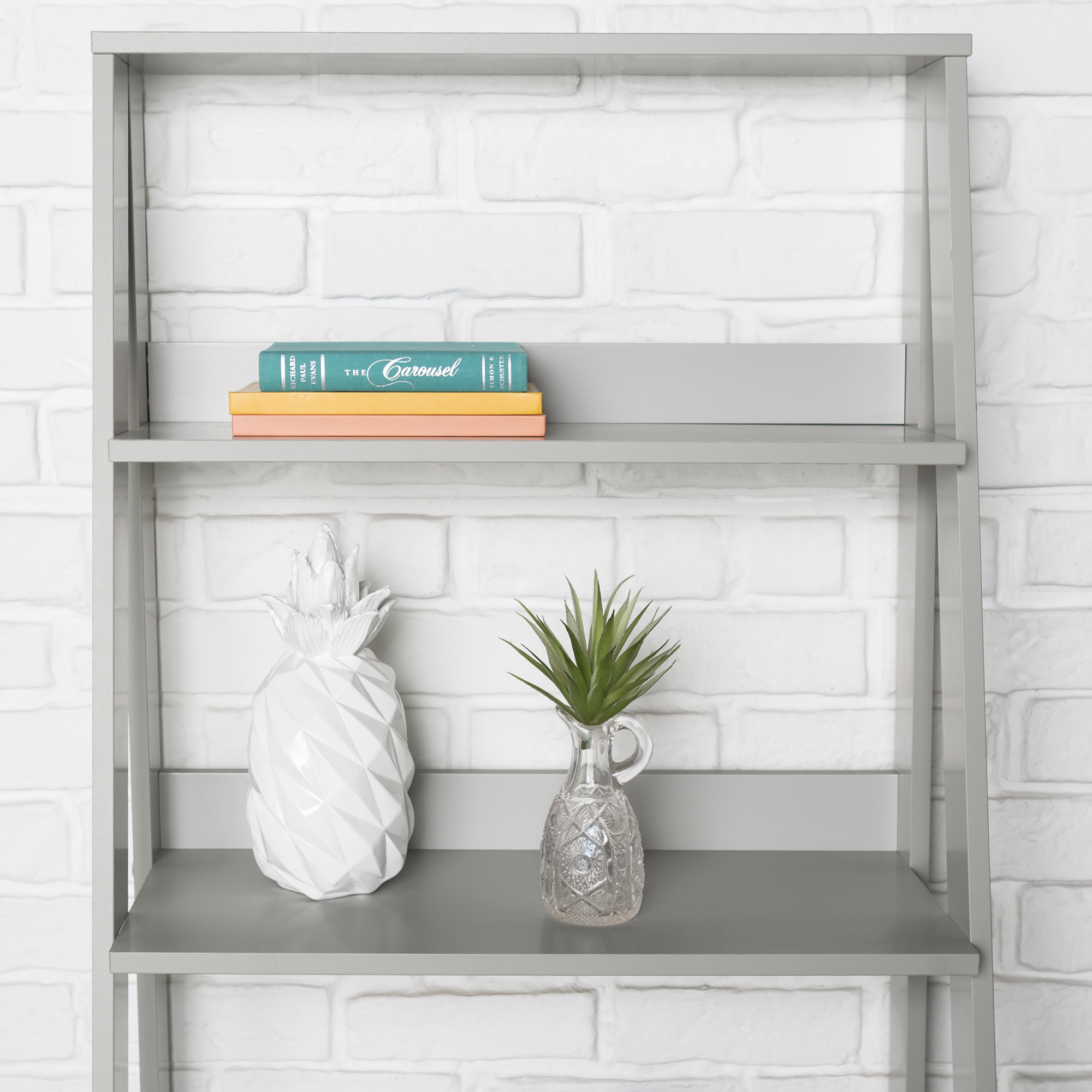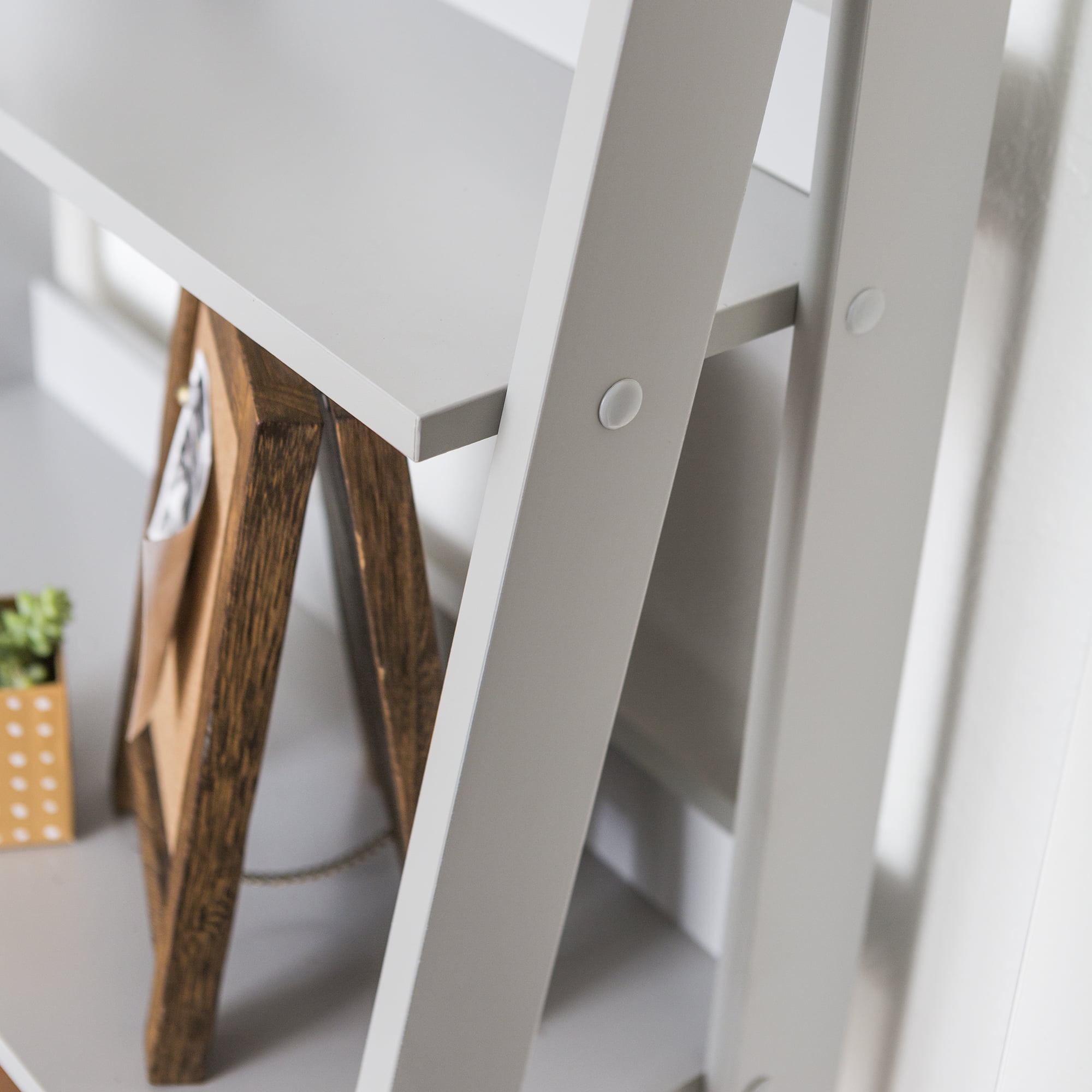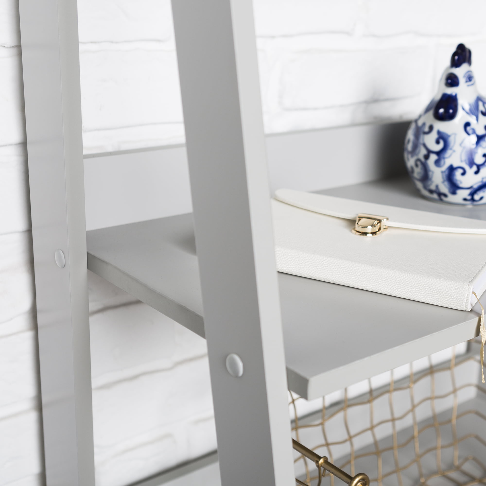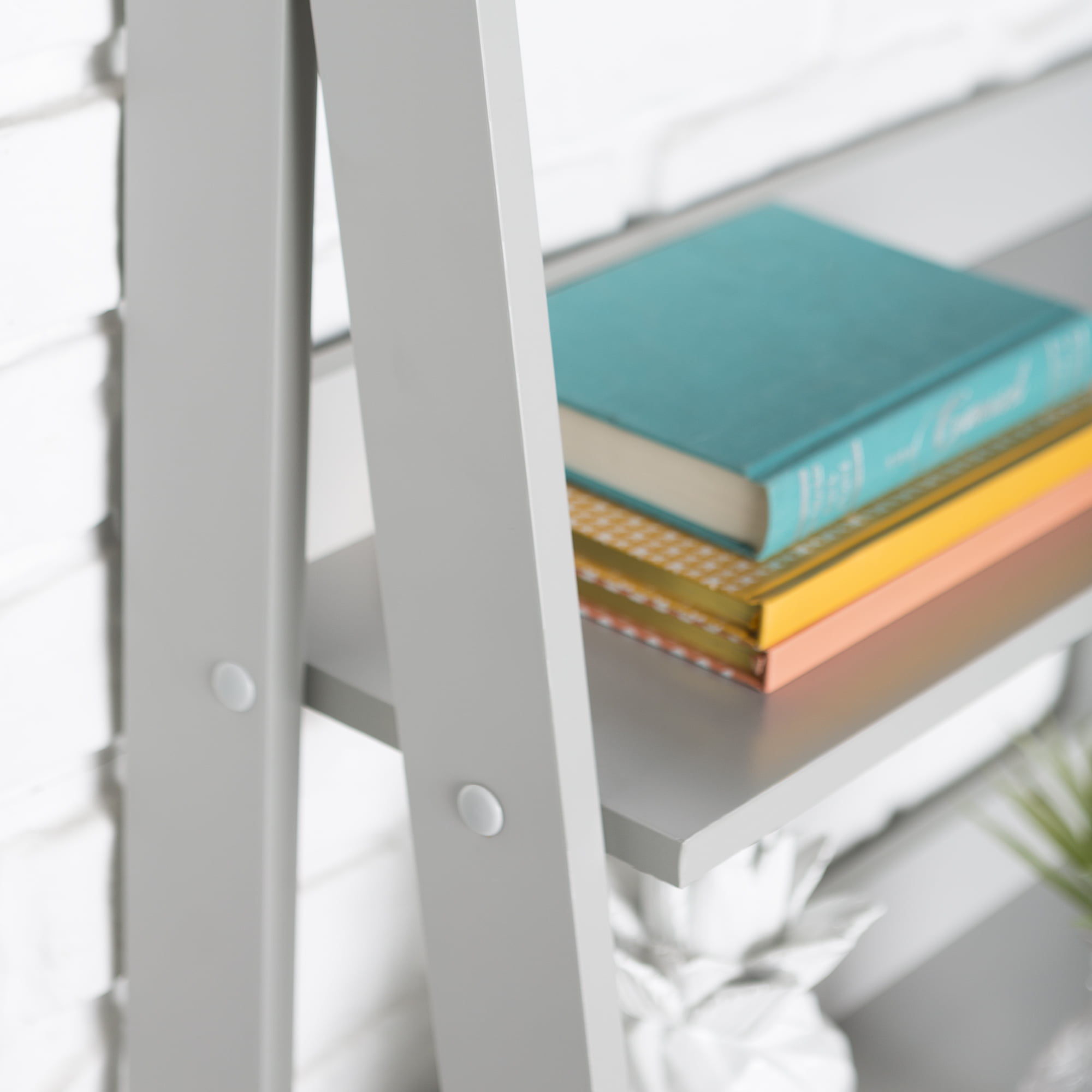 Manor Park 4-Shelf Wood Leaning Ladder Bookcase. Grey