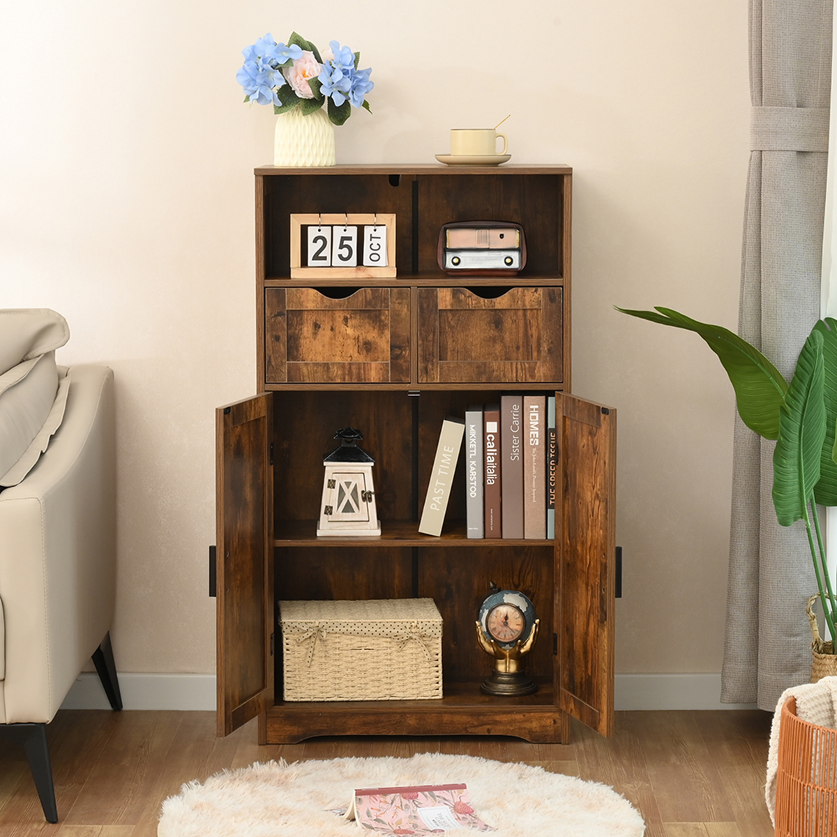 IWELL Storage Cabinet with 2 Adjustable Drawers & 2 Shelf. Bathroom Floor Cabinet for Living Room. Bathroom. Kitchen. Rustic Brown