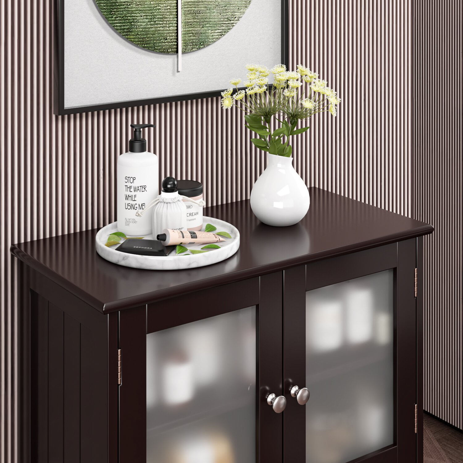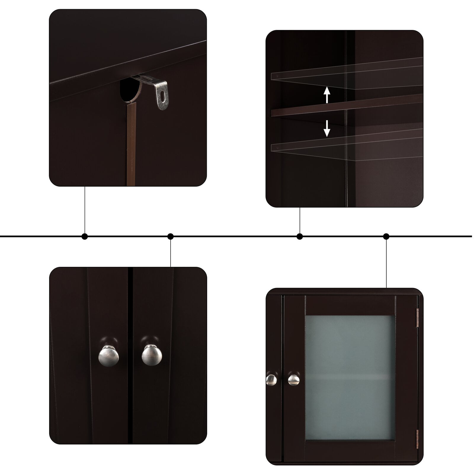 Homfa Bathroom Floor Storage Cabinet. Wood Linen Cabinet with Doors and Adjustable Shelf. Kitchen Cupboard. Dark Brown