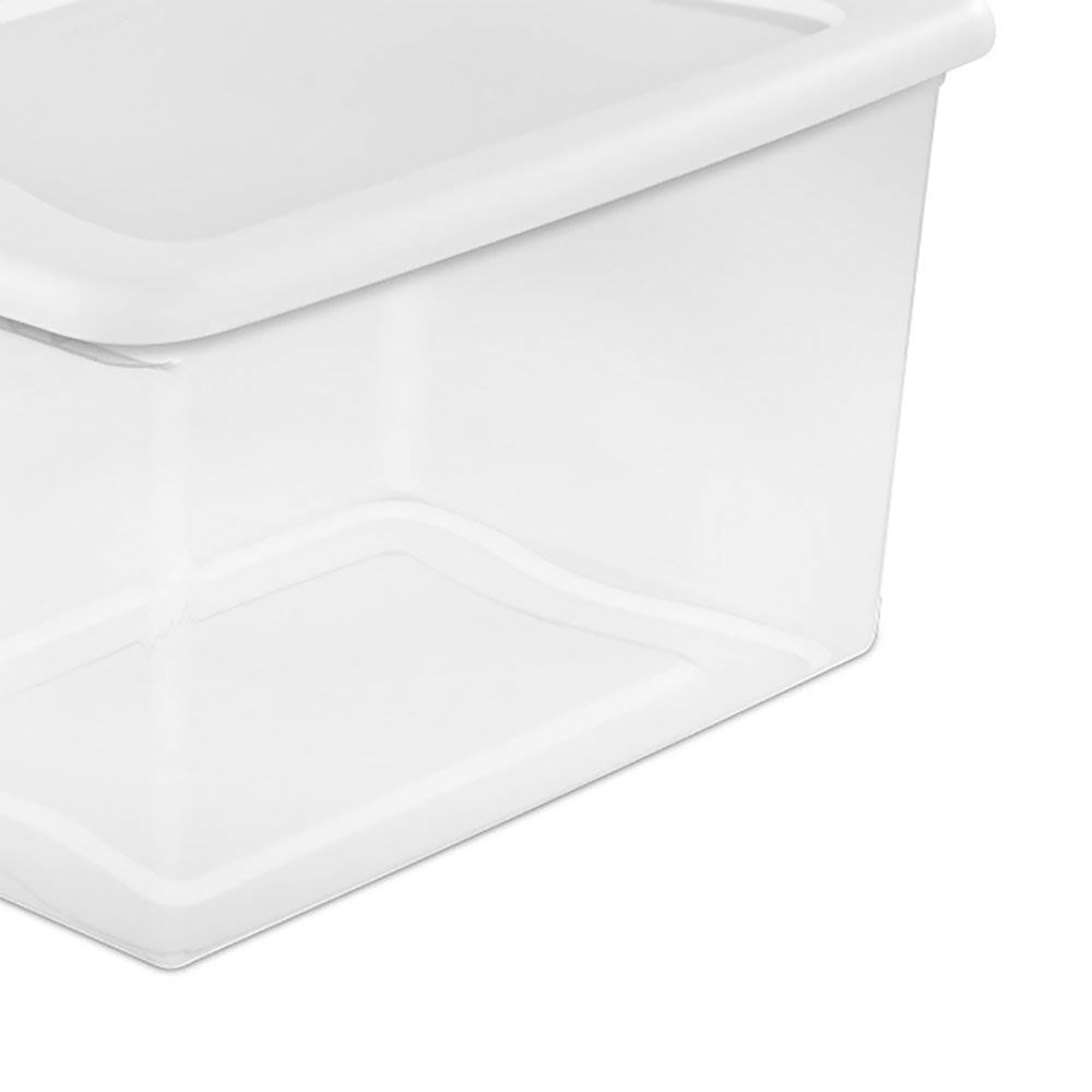 Sterilite 64 Quart Clear Plastic Storage Bin with White Latch Lid. 6 Pack
