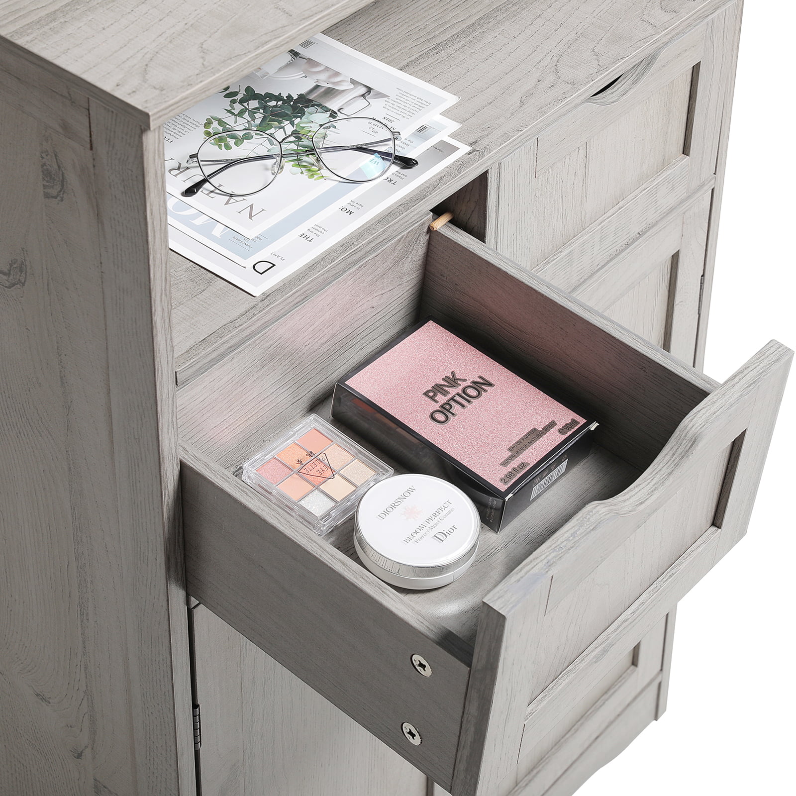 IWELL Large Storage Cabinet. Bathroom Storage Cabinet with 2 Drawers & 2 Shelves. Floor Cabinet for Living Room. Bedroom. Home Office. Grey