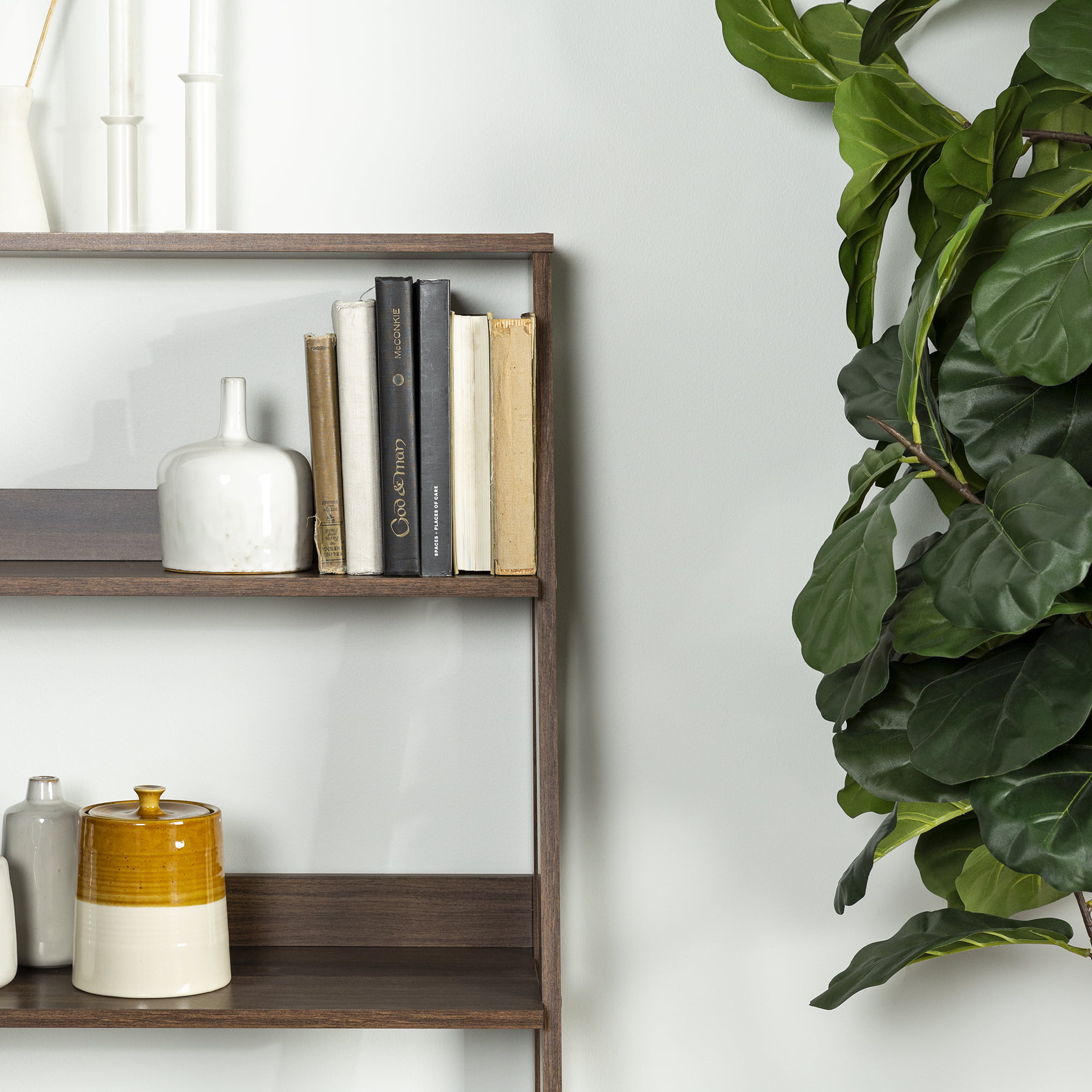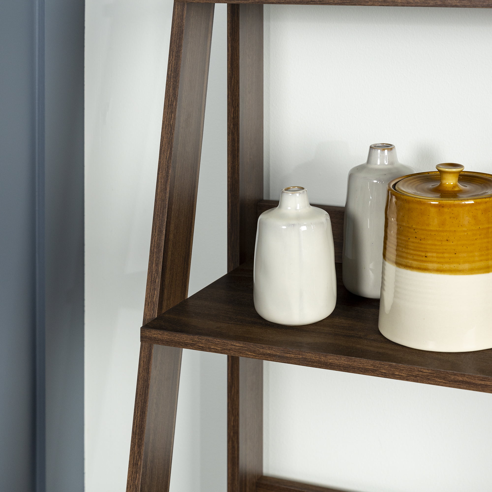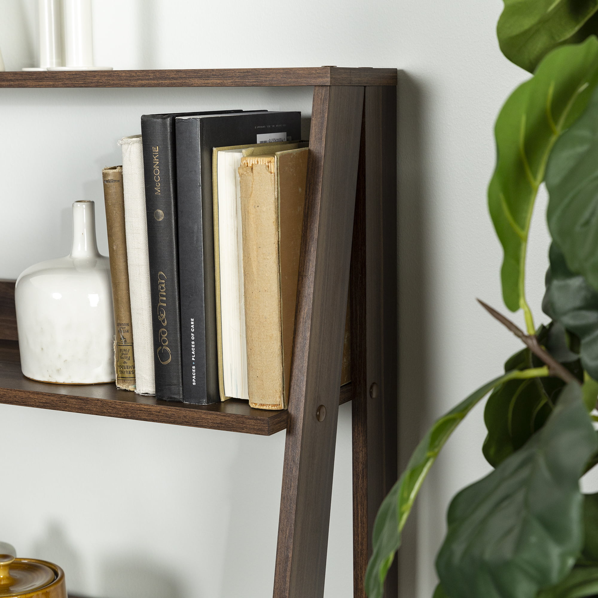 Manor Park 55 inch Modern Wood Ladder Bookcase. Walnut