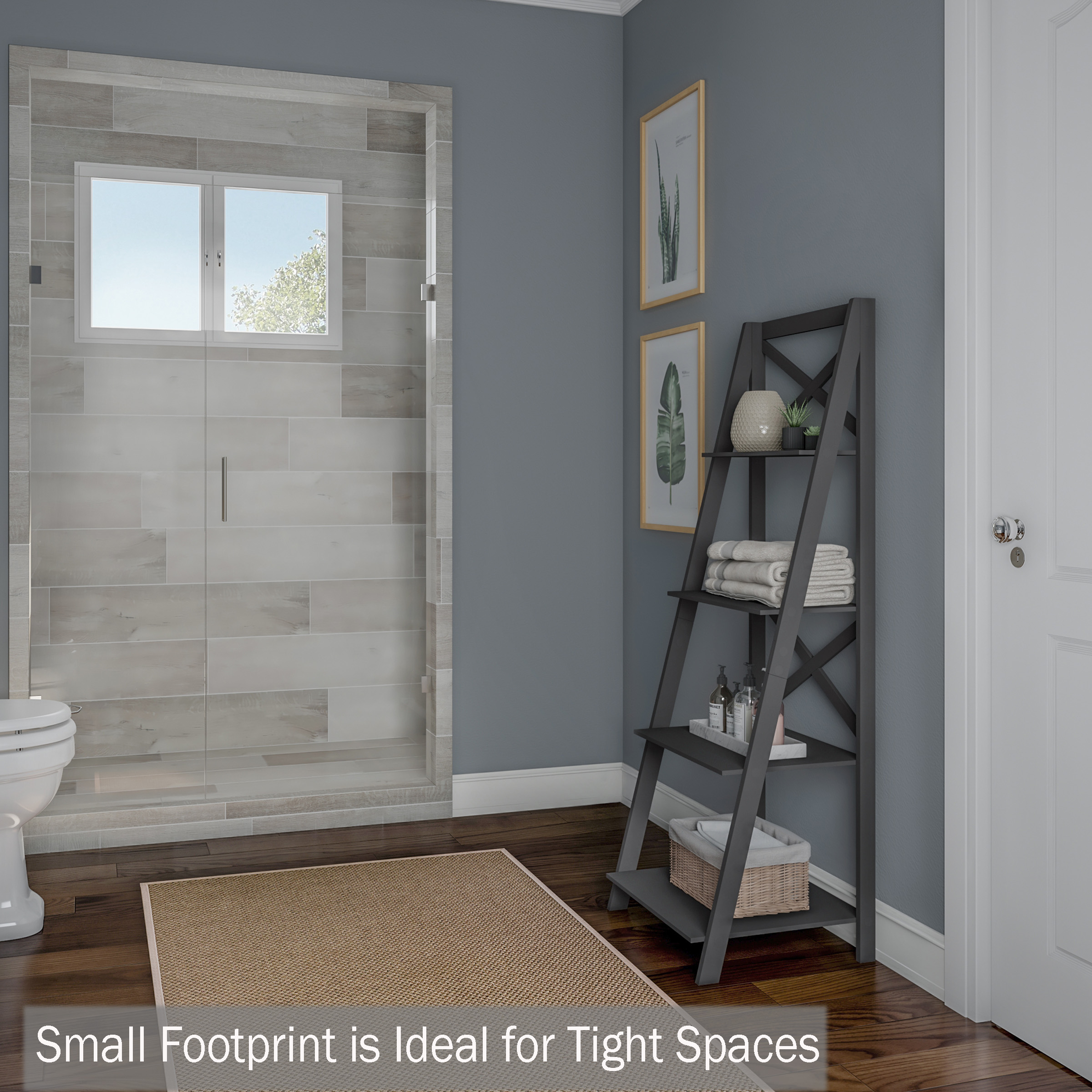 Lavish Home 4-Tier Freestanding Ladder Bookshelf with X-Back Frame. Gray