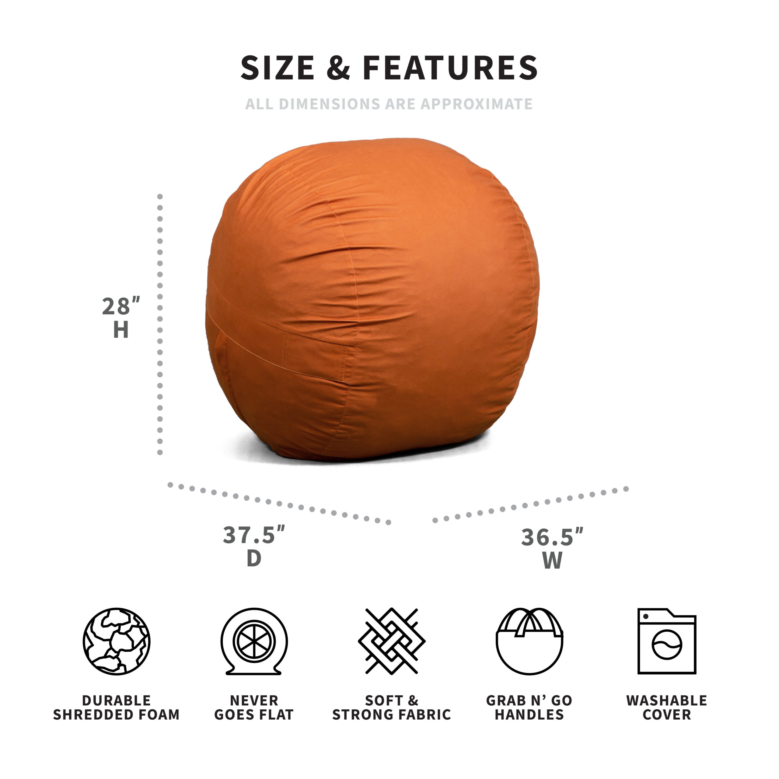Big Joe Fuf Medium Foam Filled Bean Bag Chair. Kids and Teens. Burnt Orange Lenox. 3ft Big