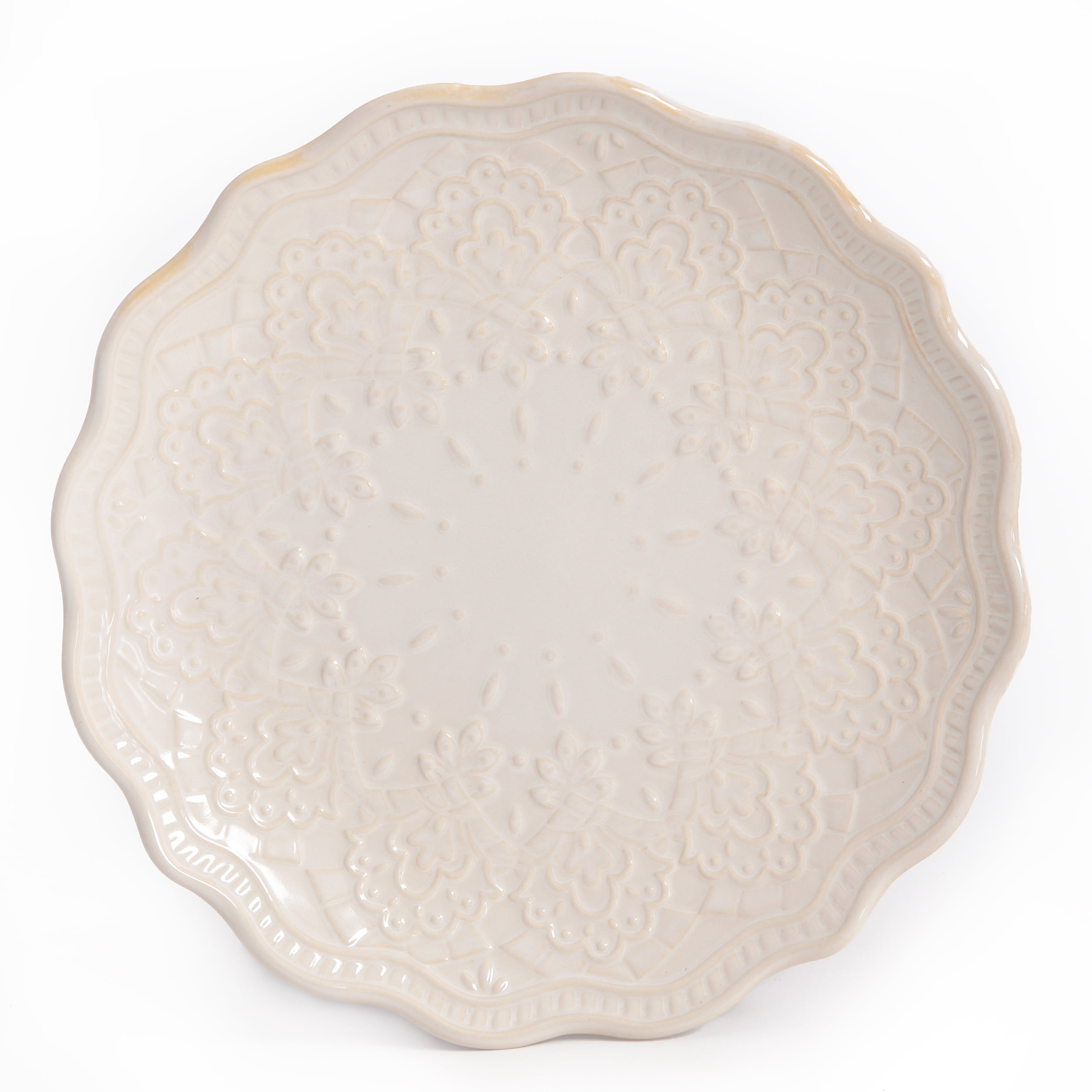 The Pioneer Woman Farmhouse Lace 12-Piece Dinnerware Set. Linen