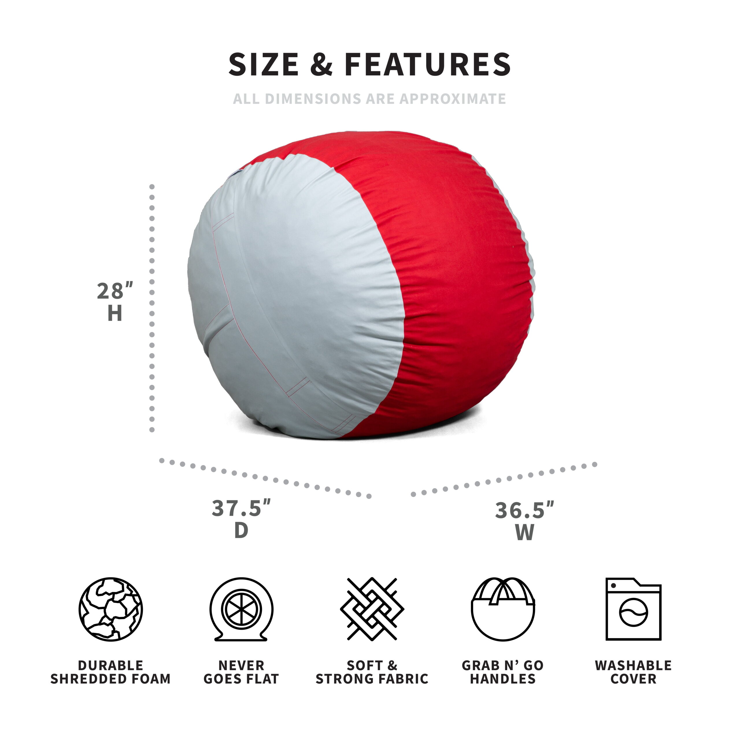 Big Joe Fuf Medium Foam Filled Bean Bag Chair. Kids and Teens. Scarlet/Grey Lenox. 3ft Big
