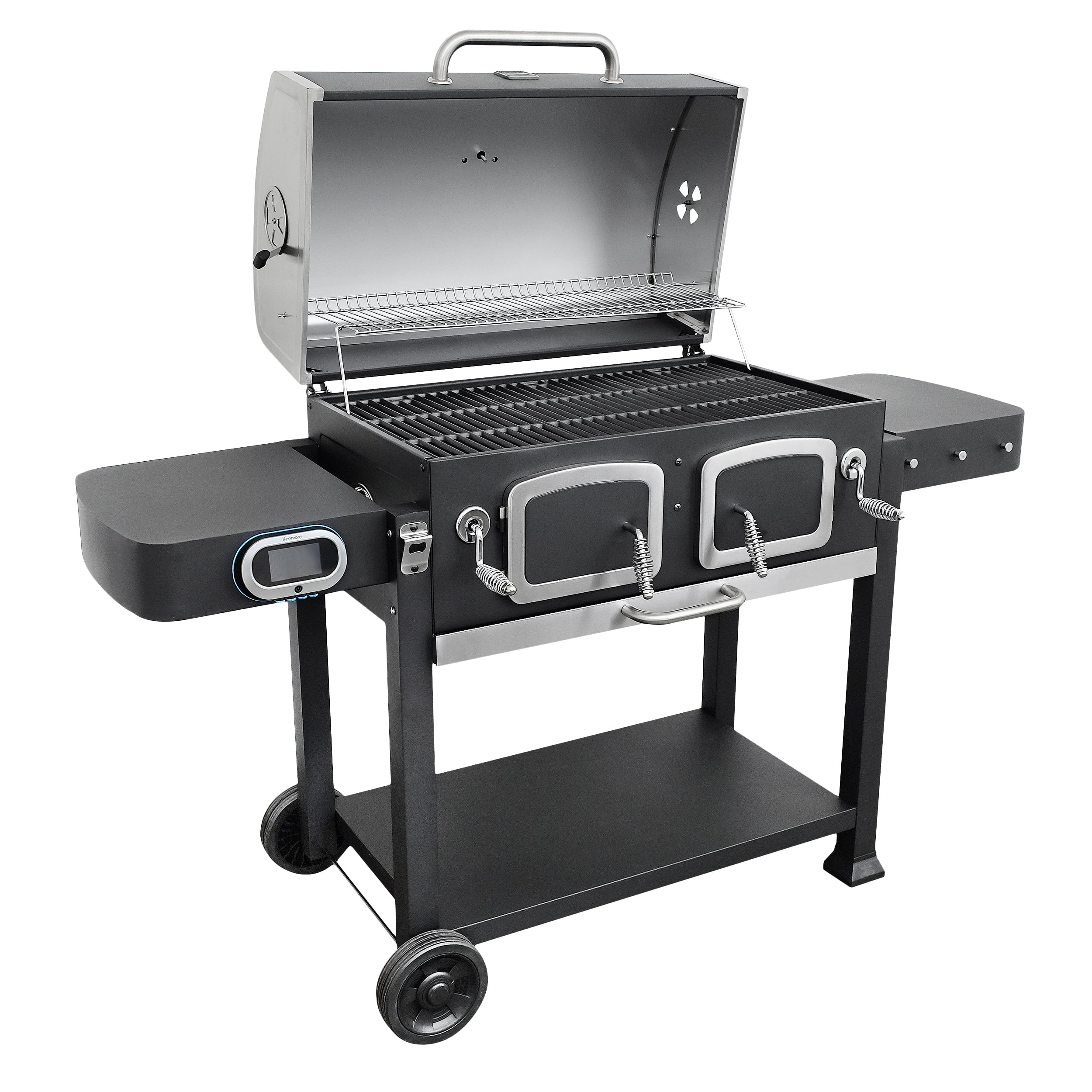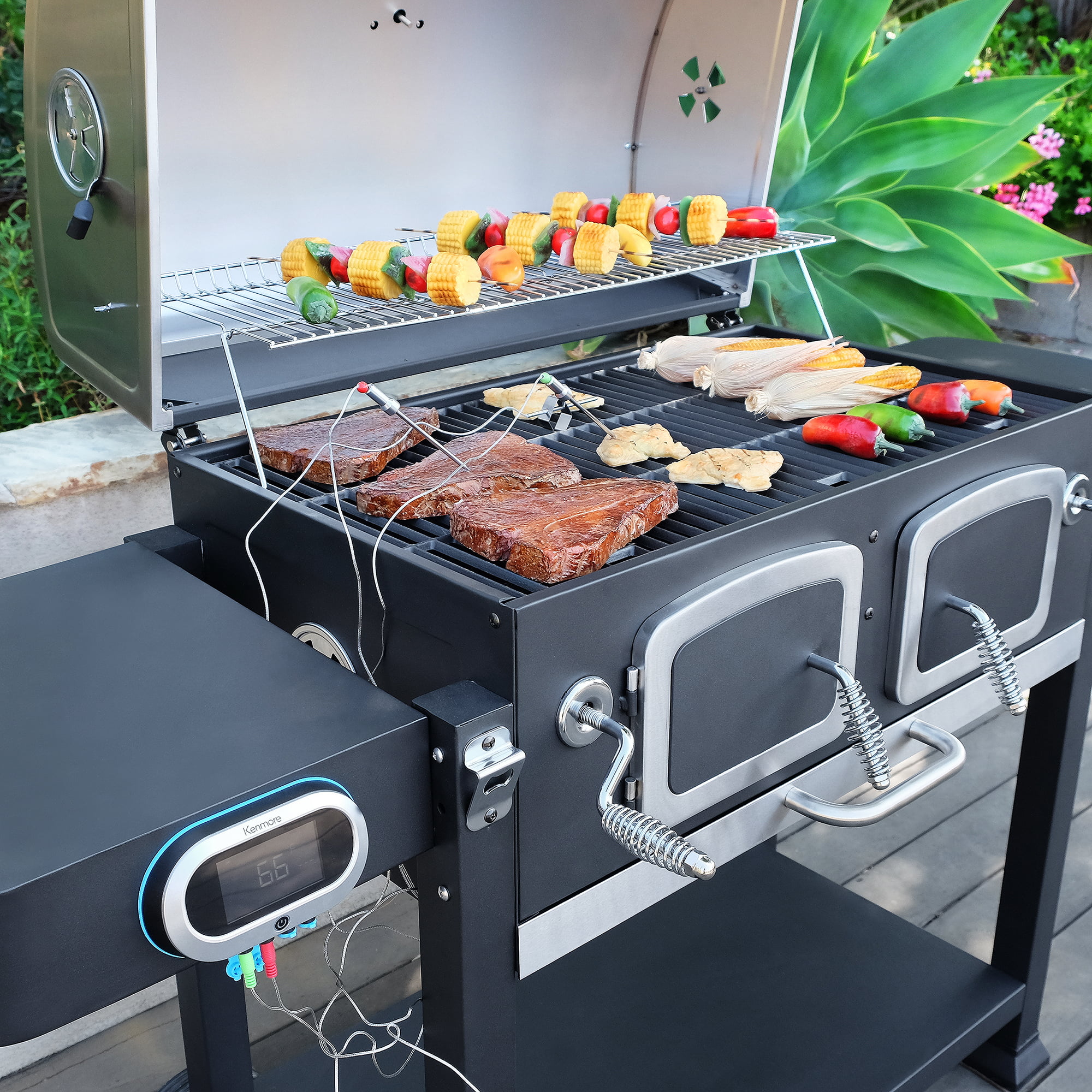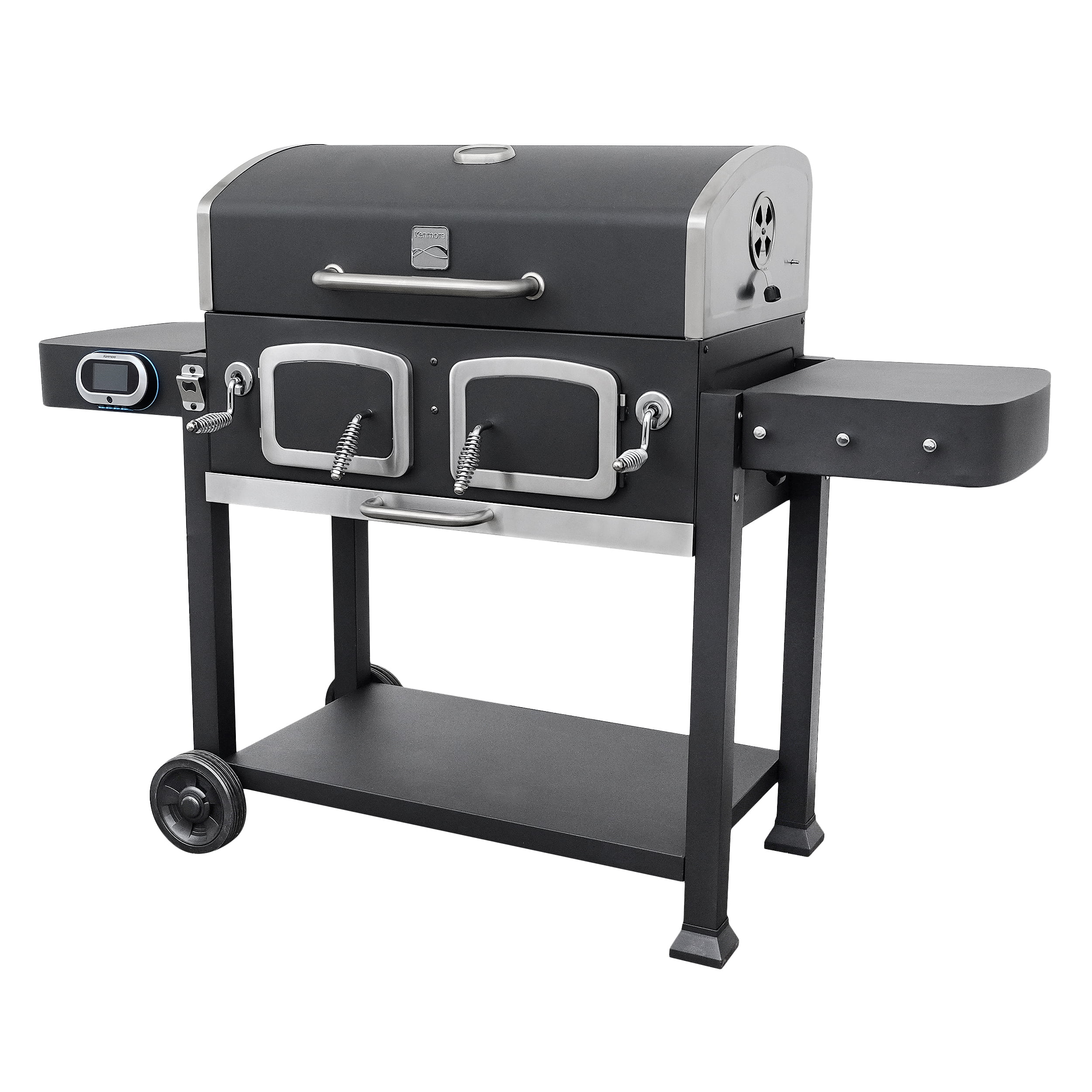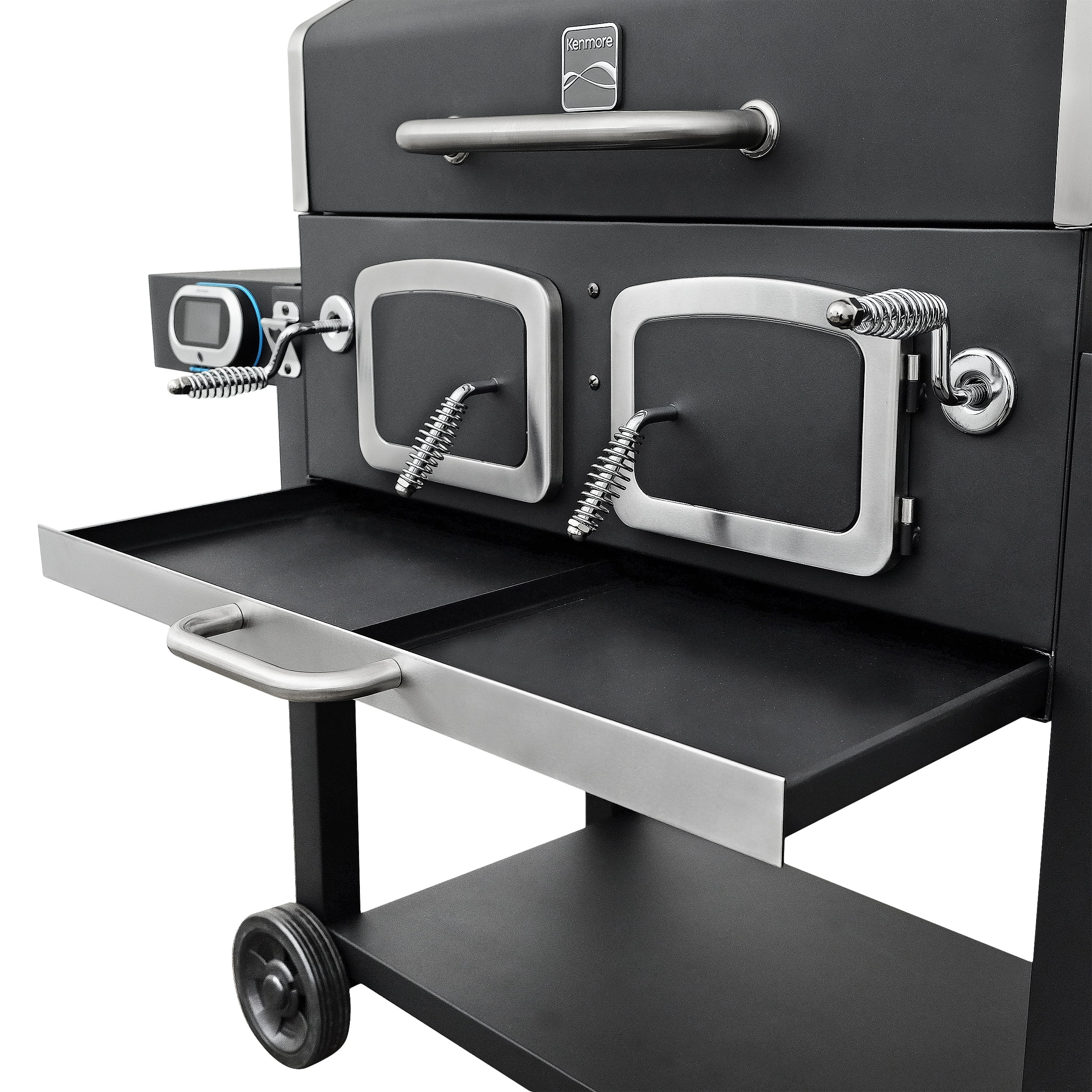 Kenmore 32-inch Smart Charcoal Grill with Bluetooth Meat Thermometer. LCD Display. and Temperature Probes. Black/Stainless Steel