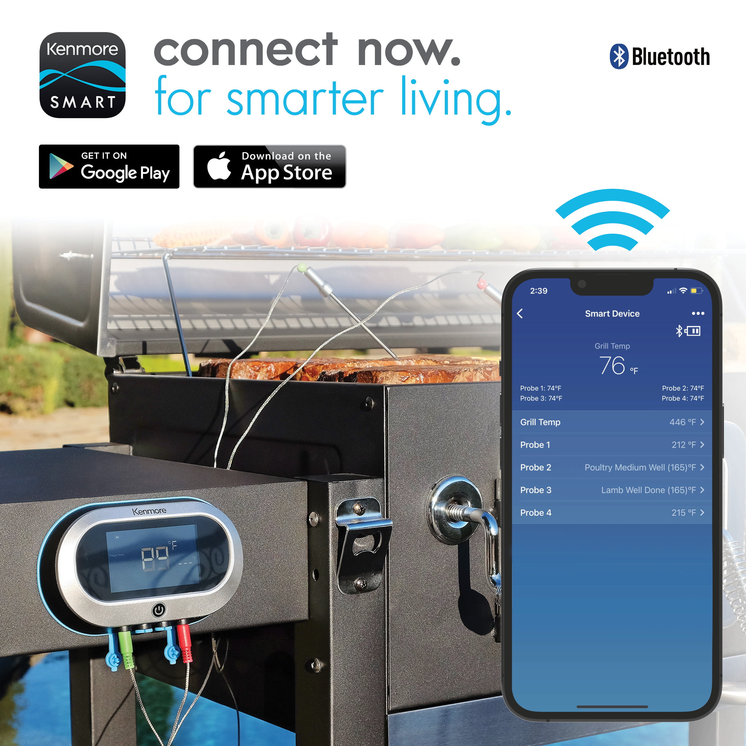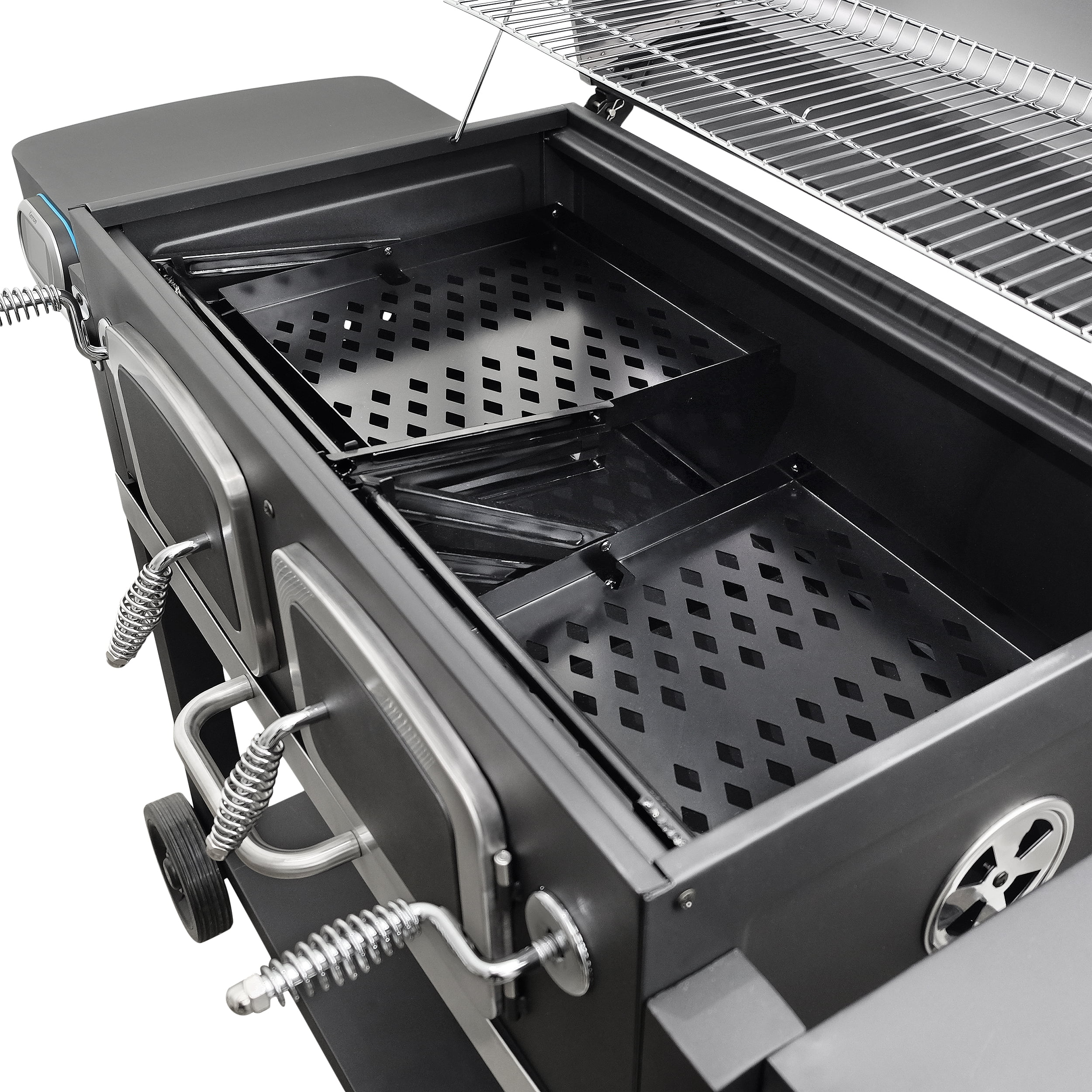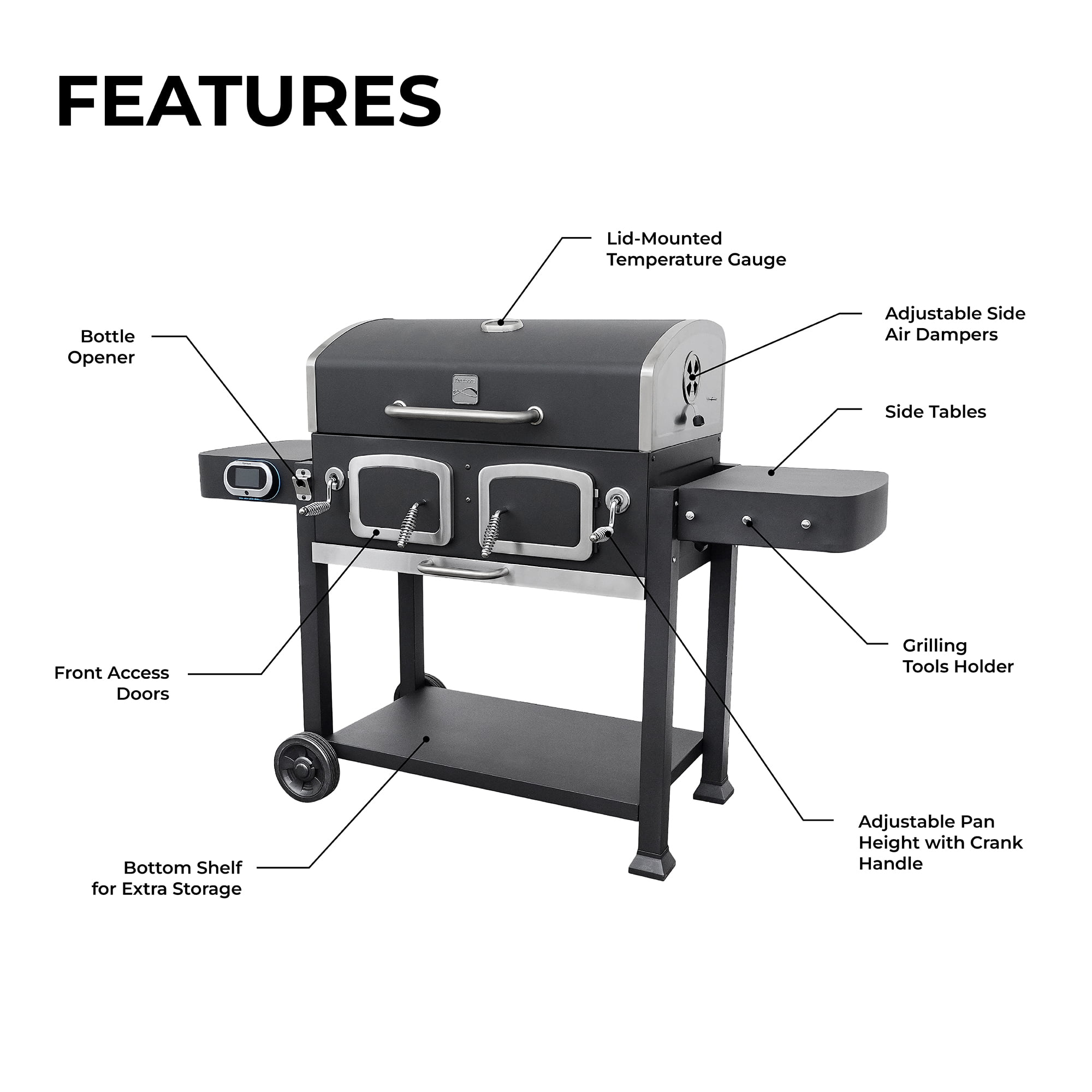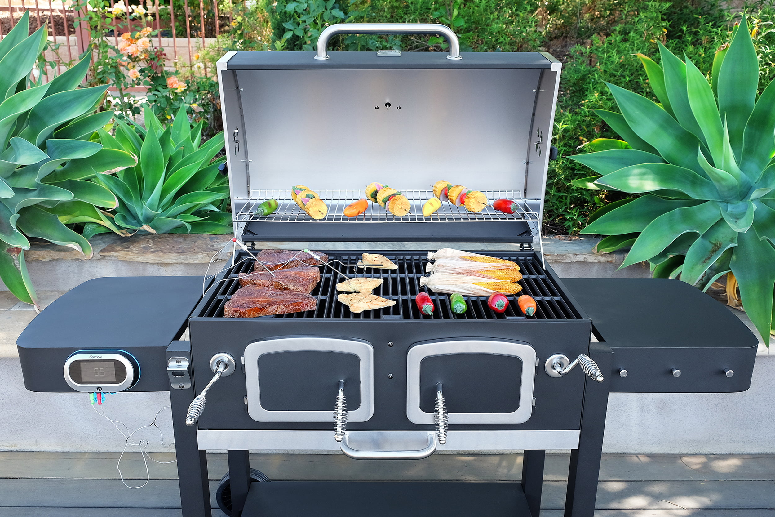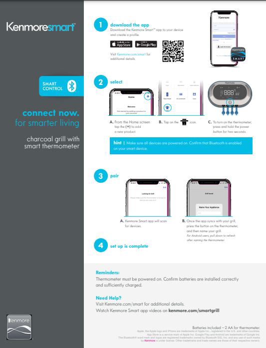 Kenmore 32-inch Smart Charcoal Grill with Bluetooth Meat Thermometer. LCD Display. and Temperature Probes. Black/Stainless Steel