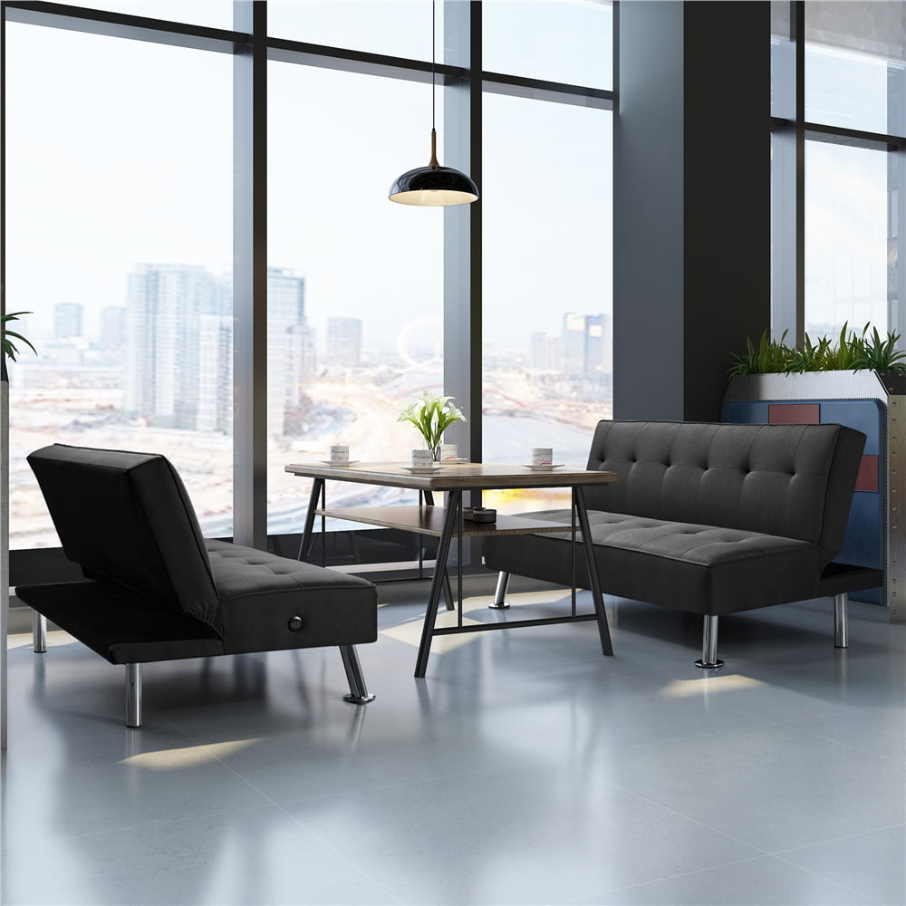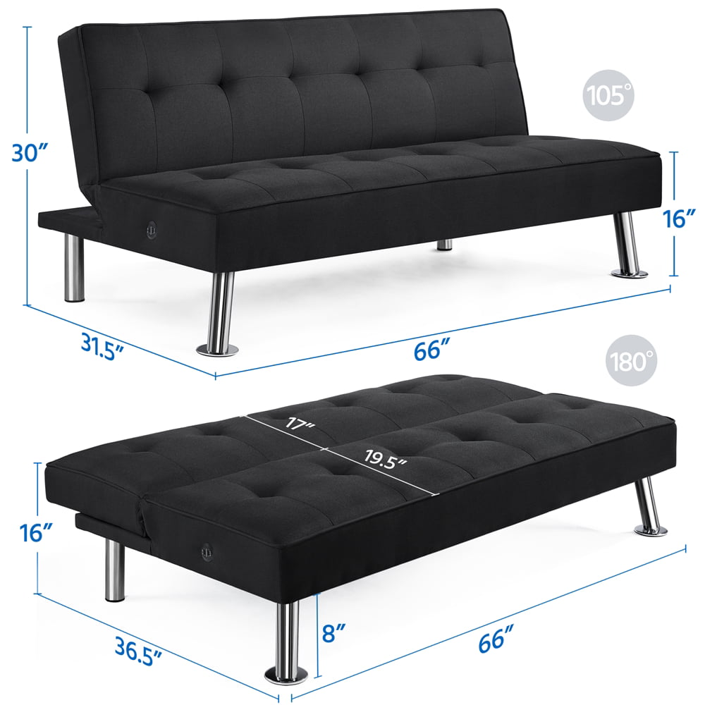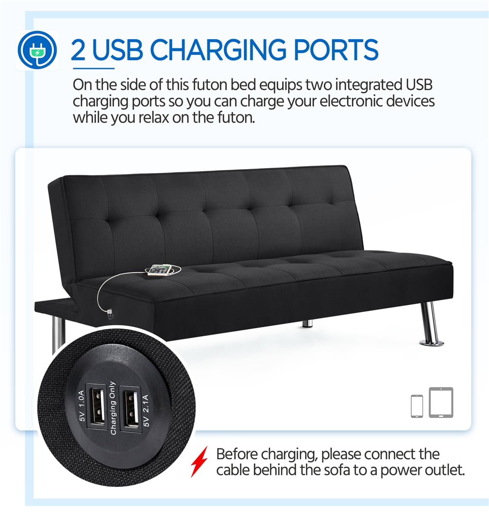 Alden Design Modern Fabric Convertible Futon with USB. Black