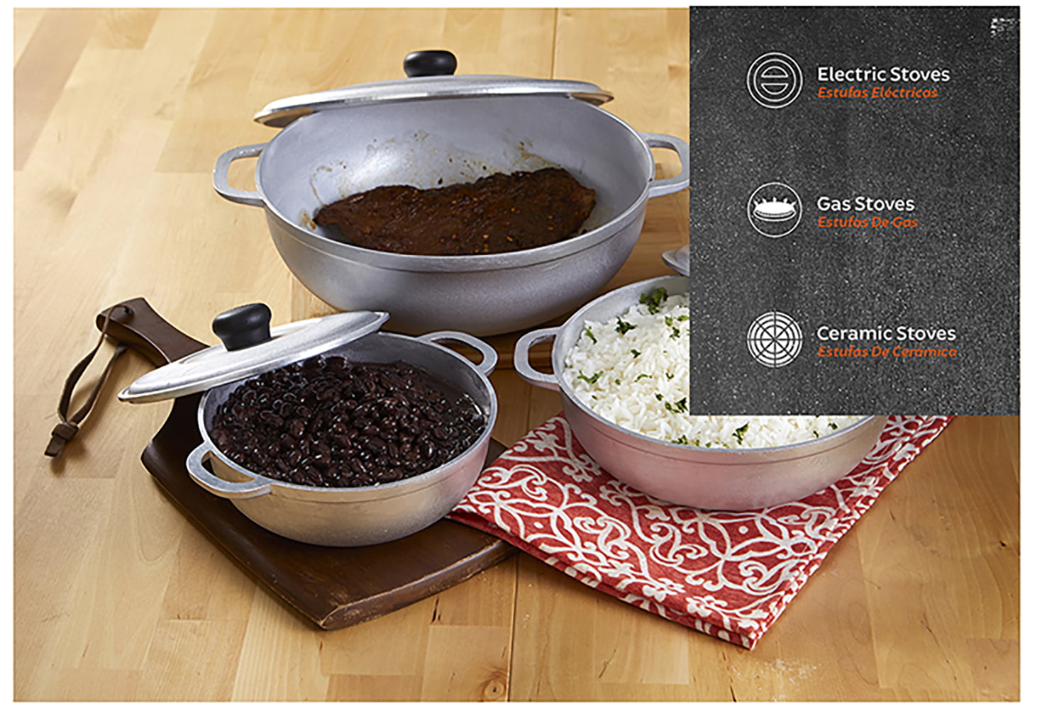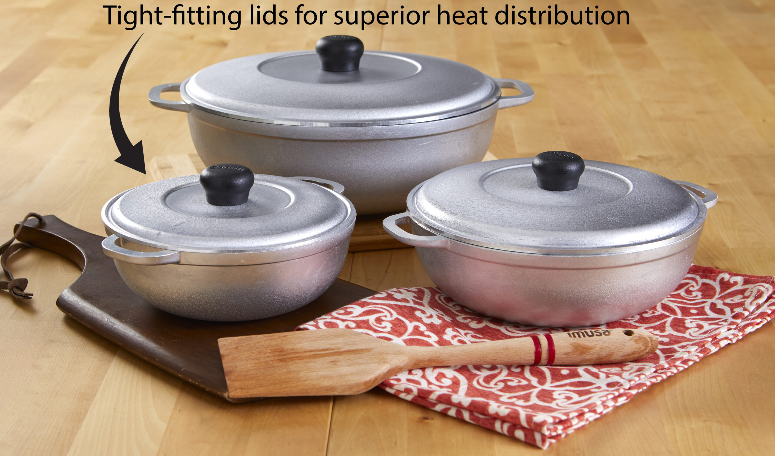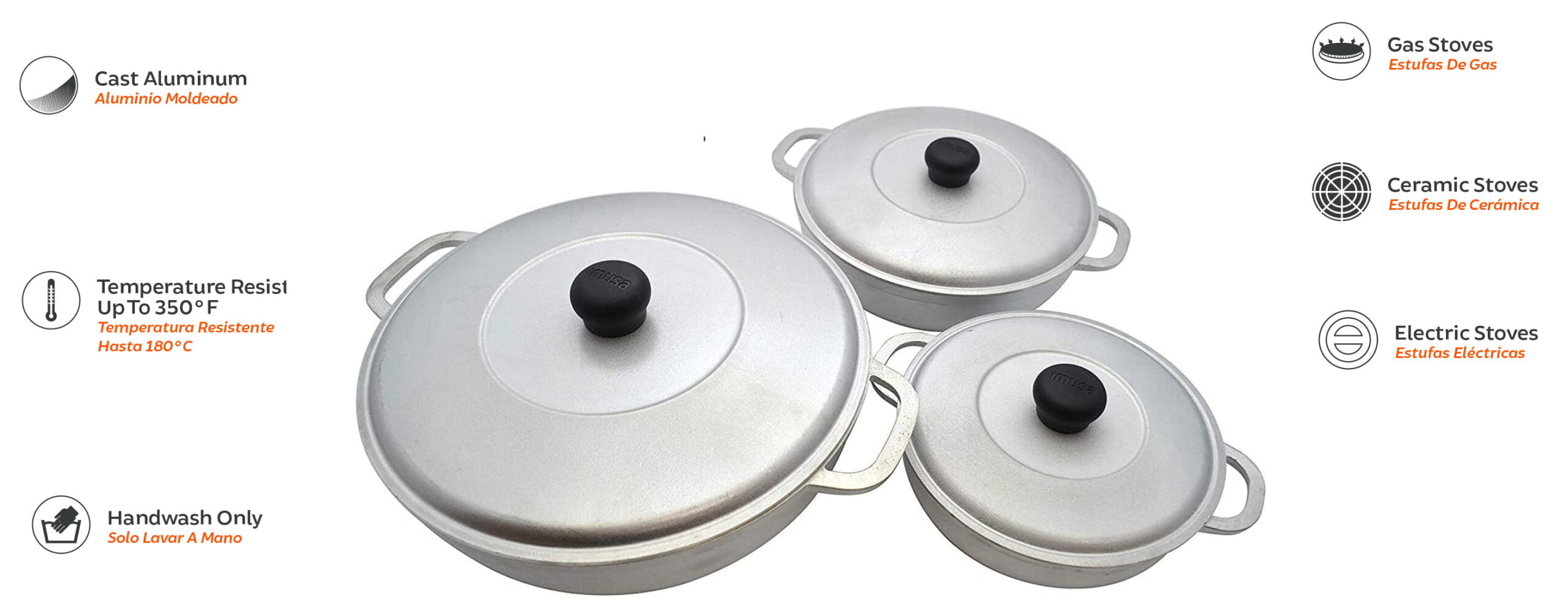 Imusa 3Pieces Colombian Cast Aluminum Caldero or Dutch Oven Set with Lid
