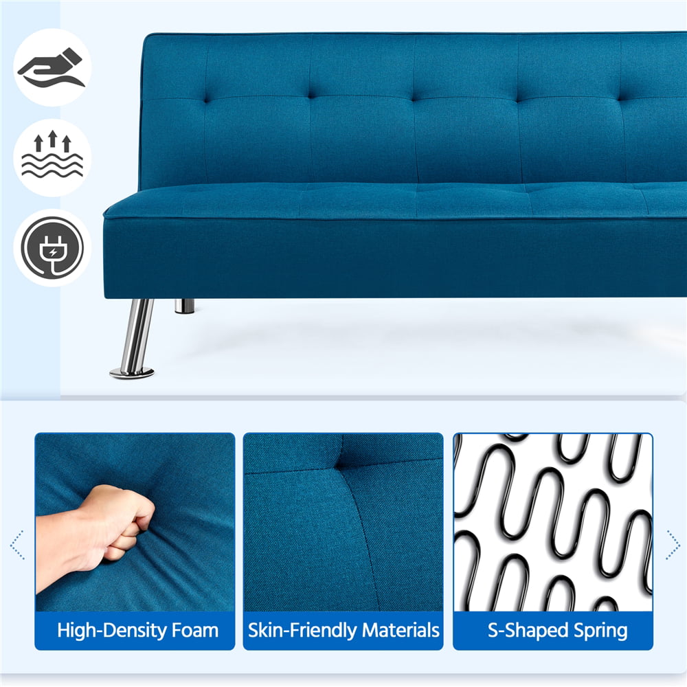 Alden Design Modern Fabric Convertible Futon with USB. Blue
