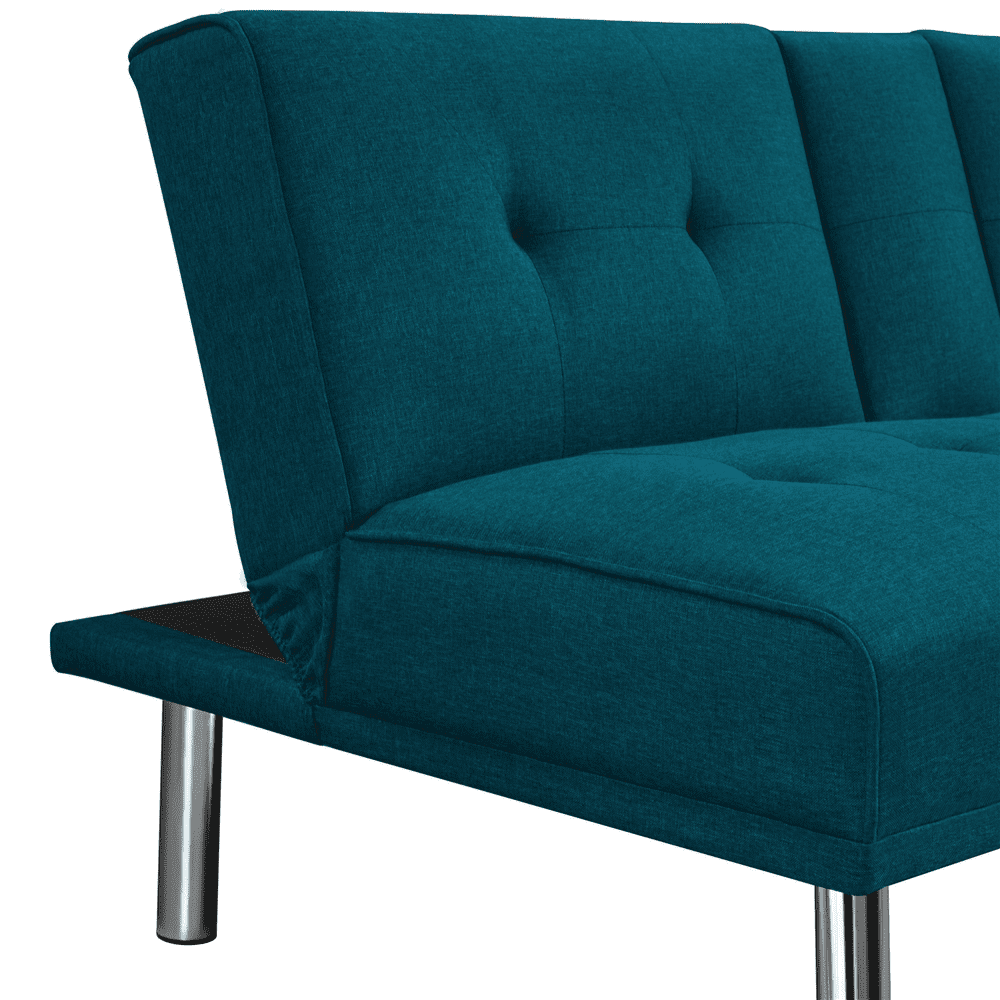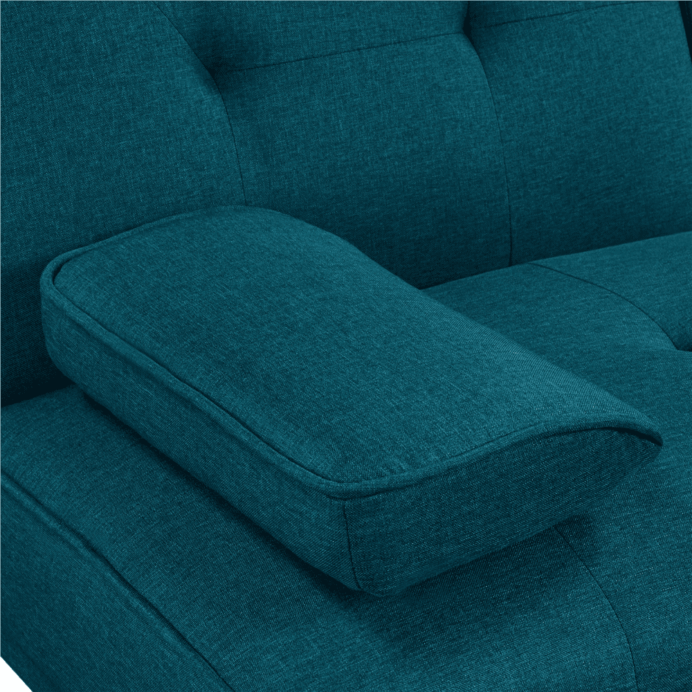 Easyfashion Modern Fabric Reclining Futon with Cupholders and Pillows. Aqua Blue