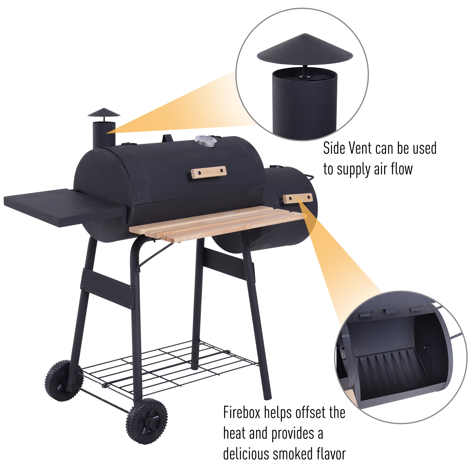 Outsunny 48″ Steel Portable Backyard Charcoal BBQ Grill and Offset Smoker Combo