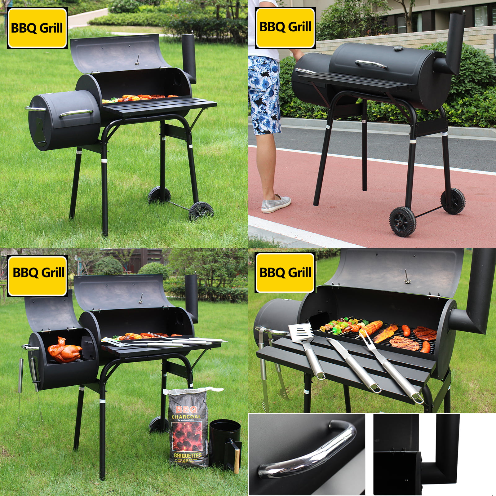 SKONYON Outdoor Portable BBQ Charcoal Grill with Offset Smoker. Black