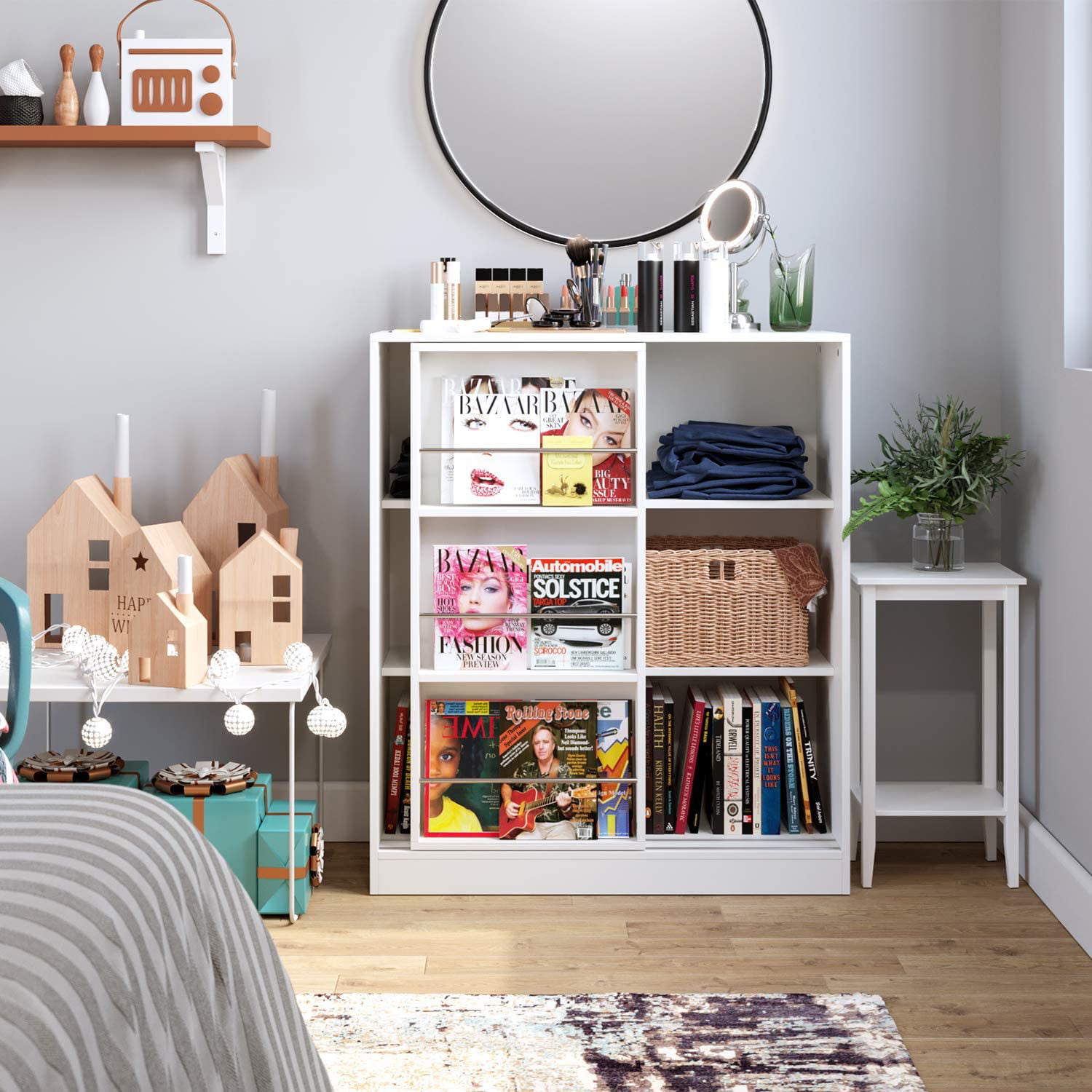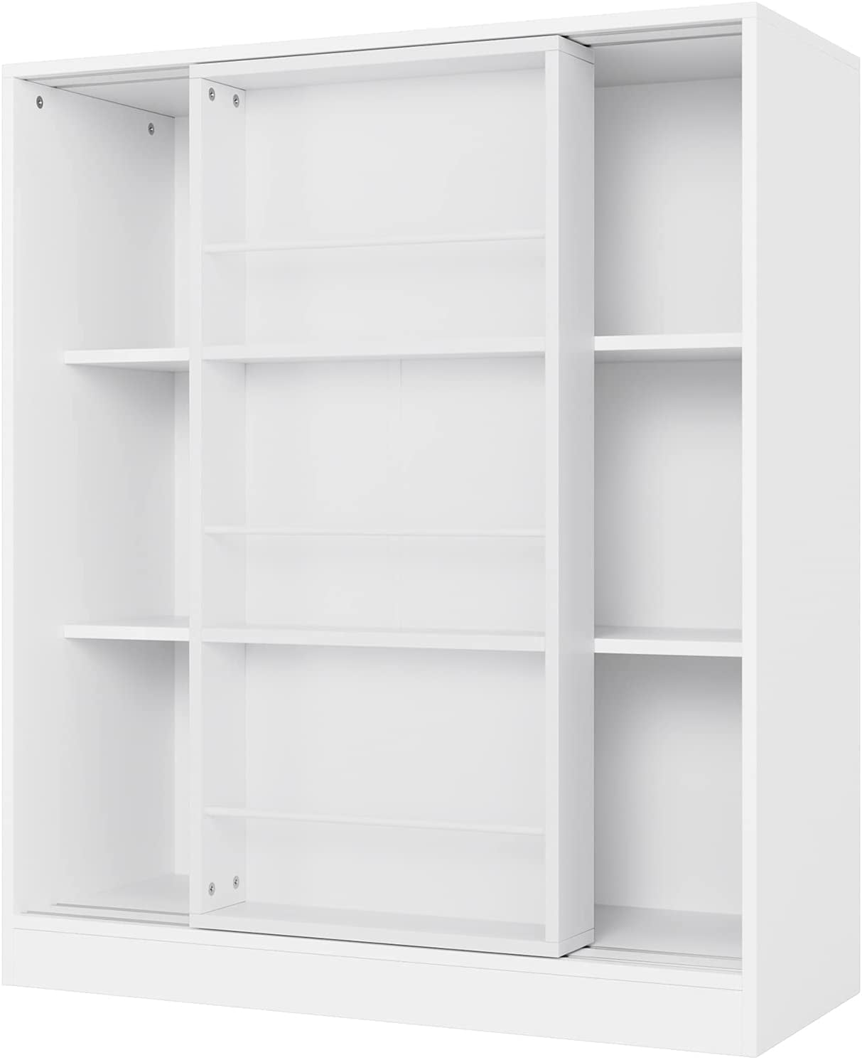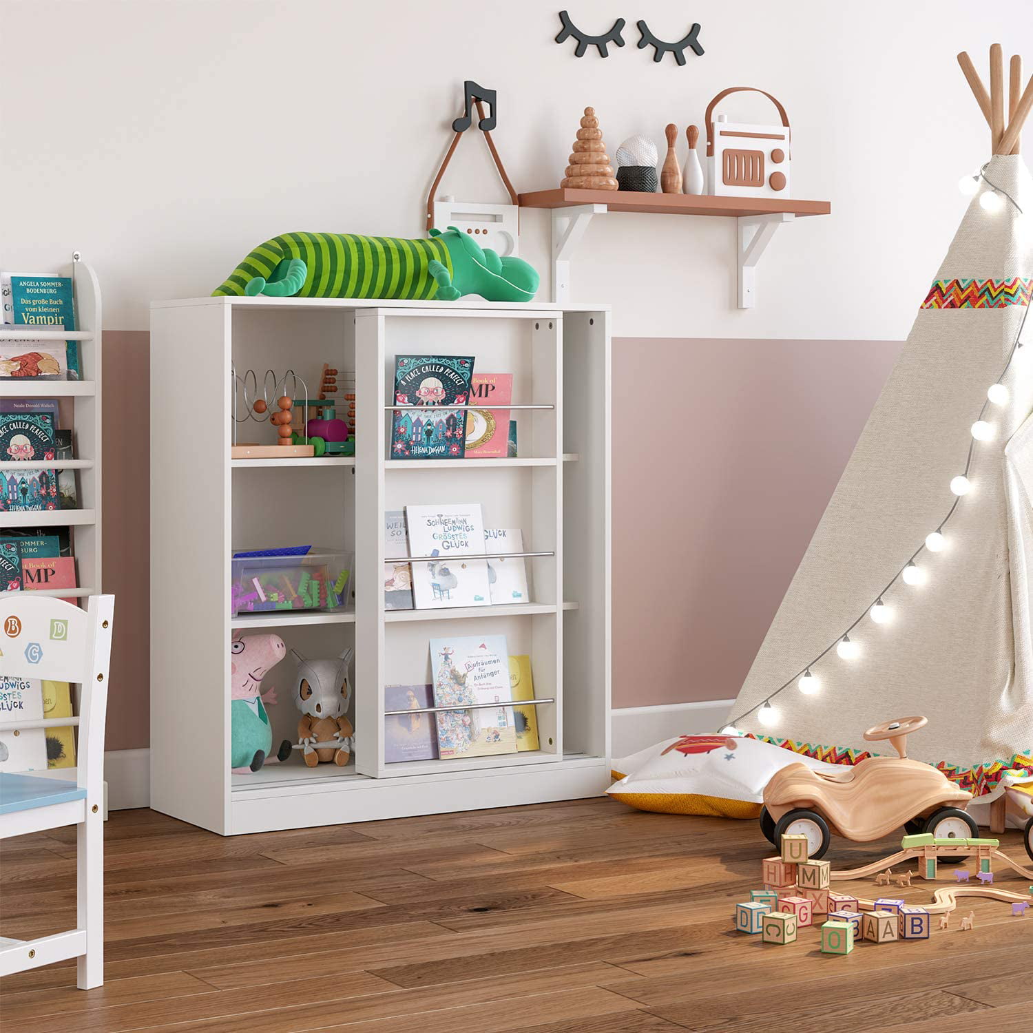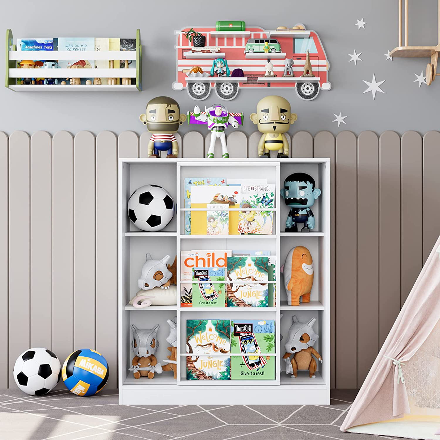 Homfa Kids Bookcase. 3 Tier Toy Organizer with Sliding Door. 6-Cube Storage Cabinet with 3 Display Shelves for Bedroom. Kids Toy Storage Shelf. White