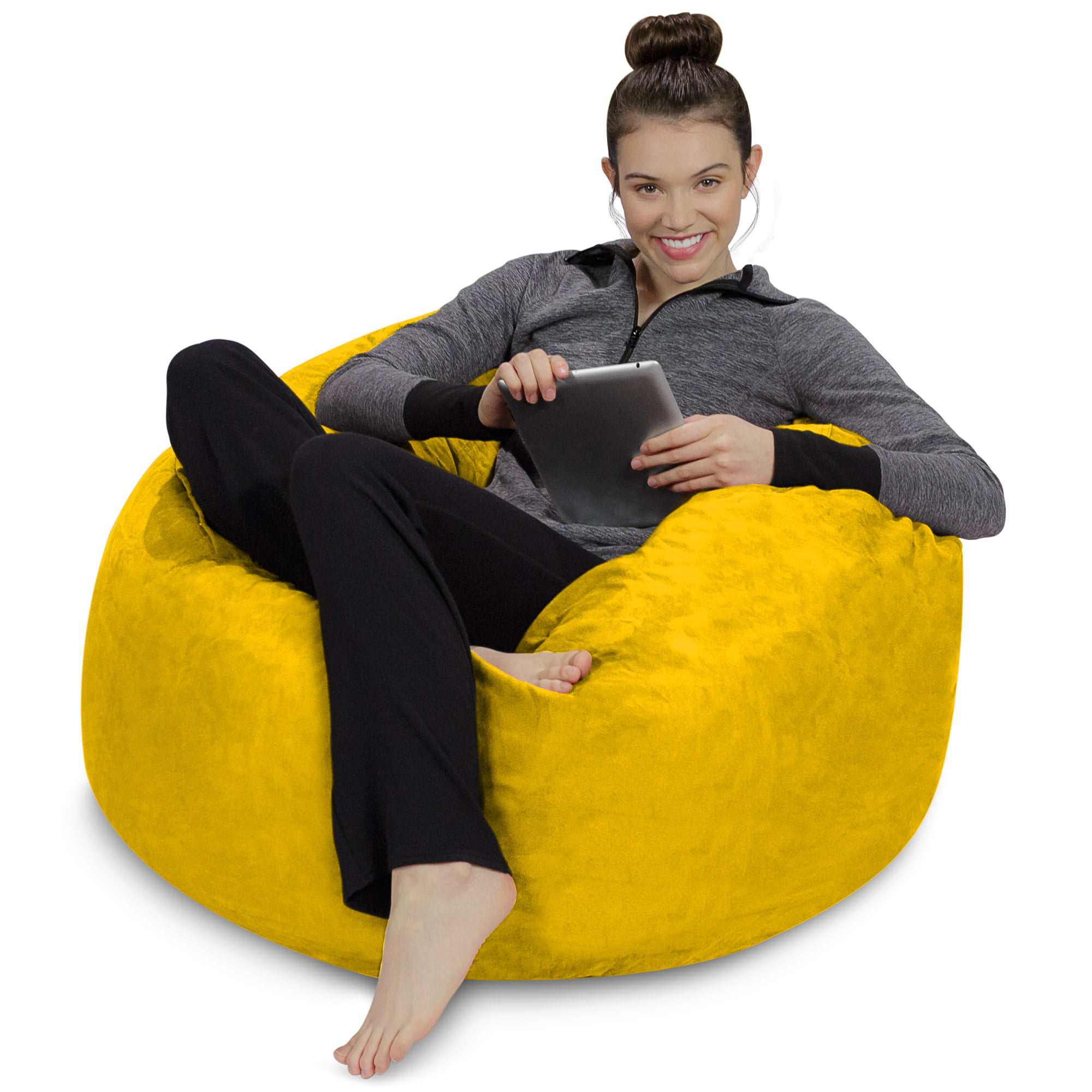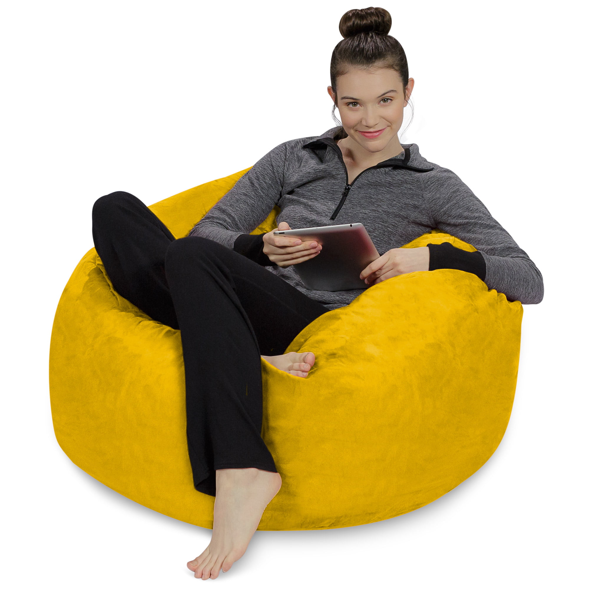 Sofa Sack Bean Bag Chair. Memory Foam Lounger with Microsuede Cover. Kids. 3 ft. Yellow