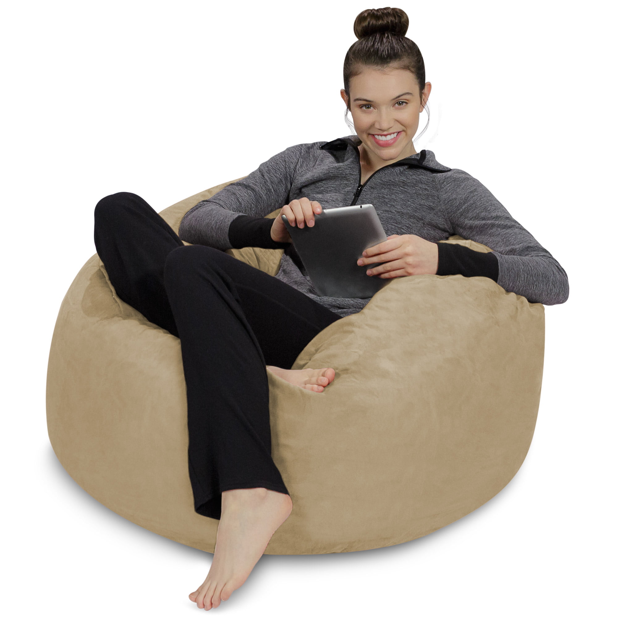Sofa Sack Bean Bag Chair. Memory Foam Lounger with Microsuede Cover. Kids. 3 ft. Camel