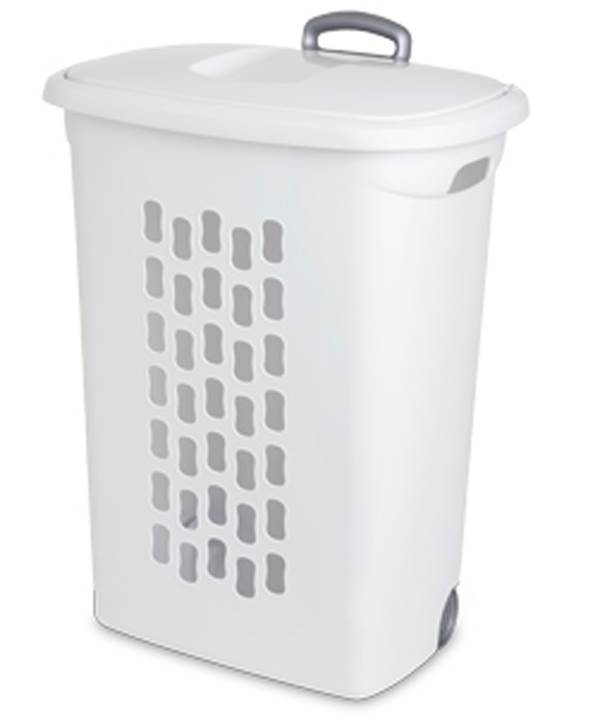 Sterilite Ultra™ Wheeled Plastic Laundry Hamper. White. Set of 3