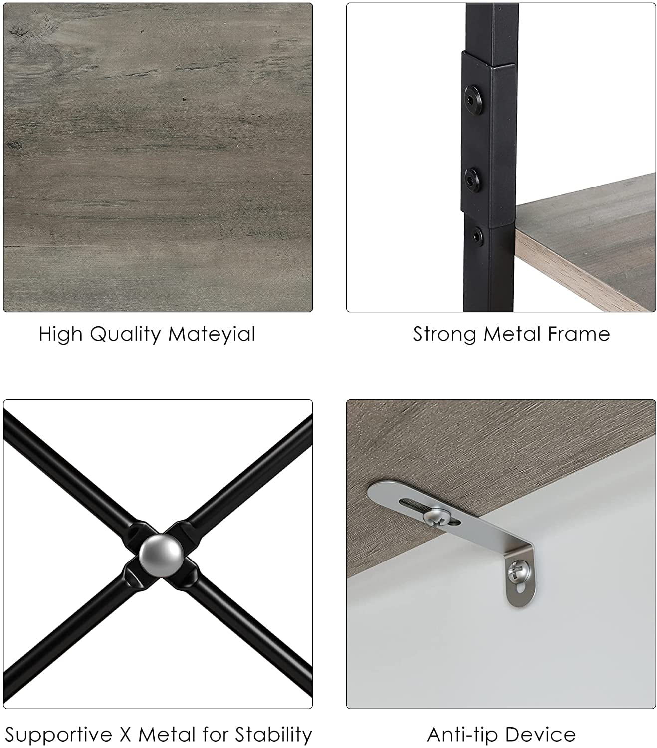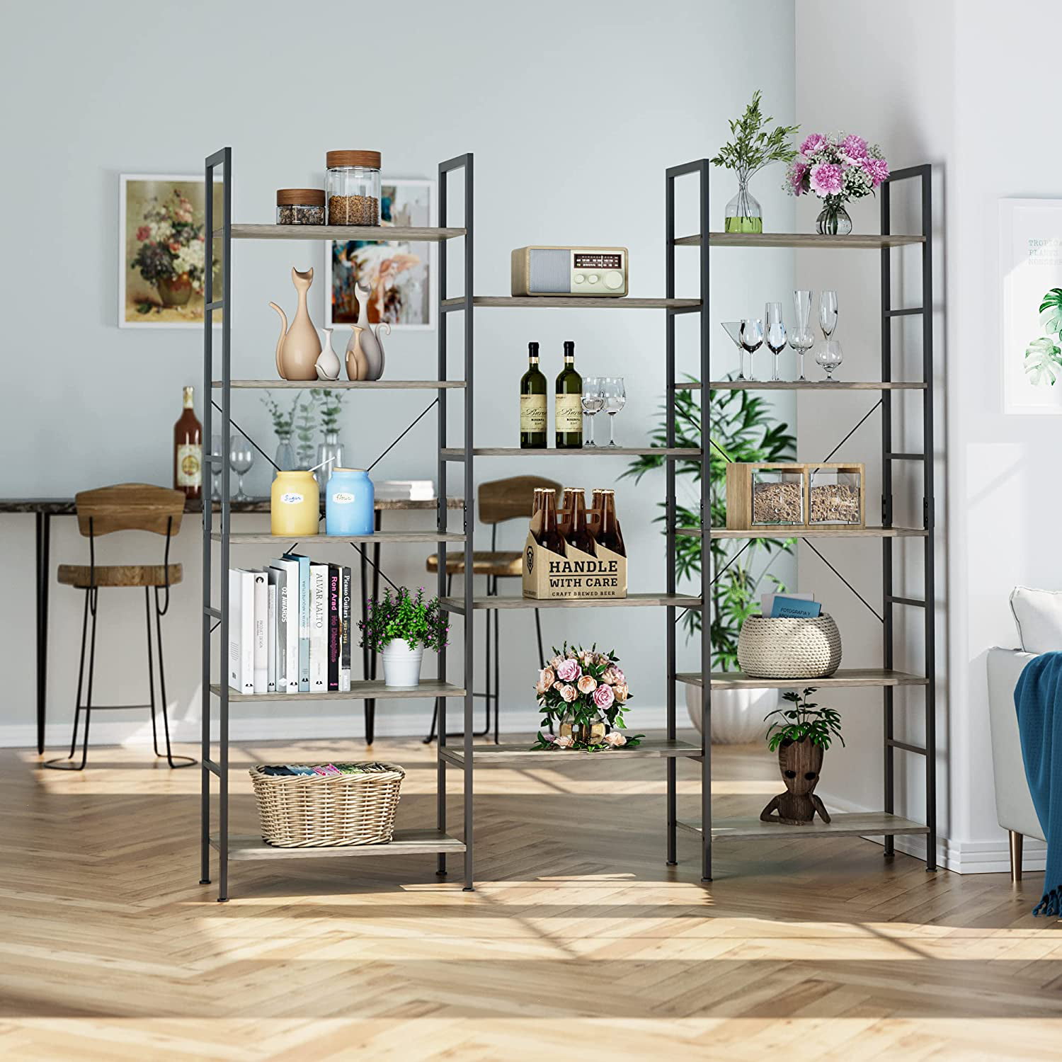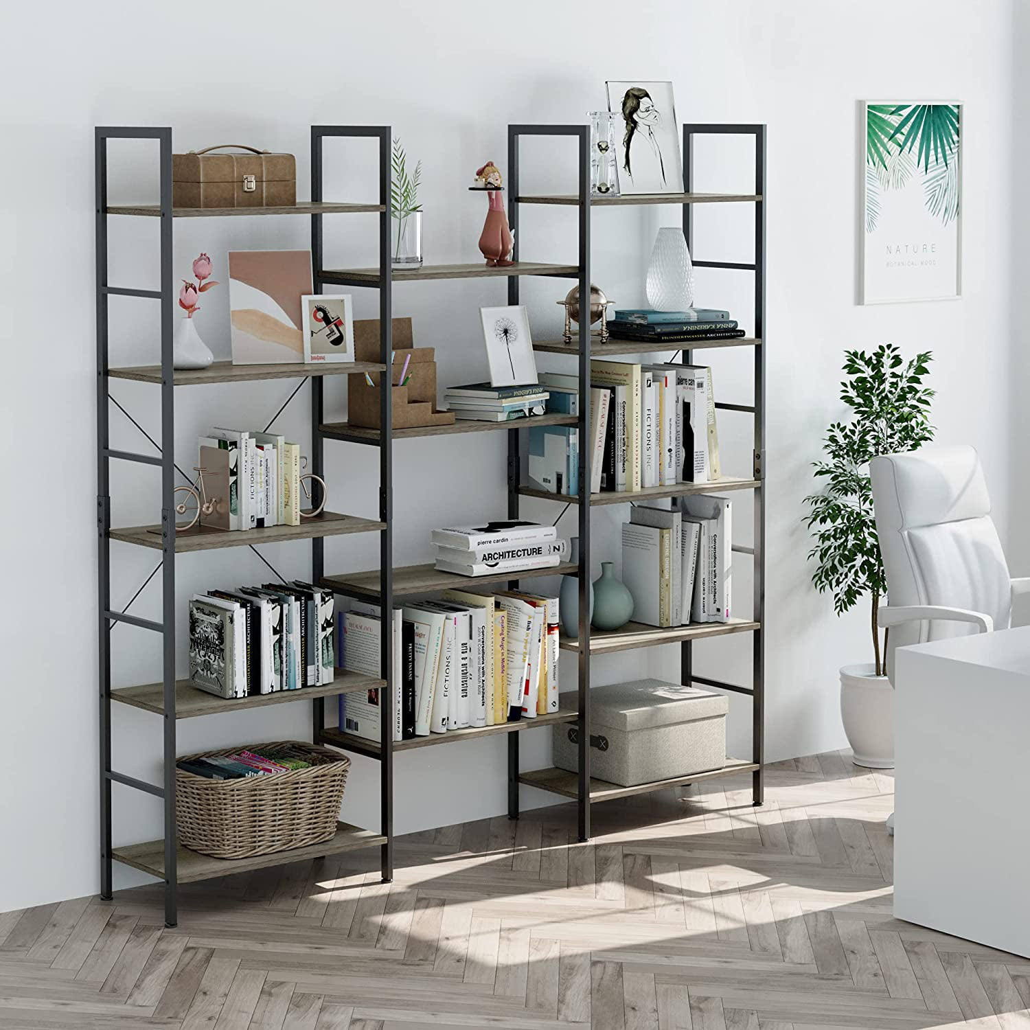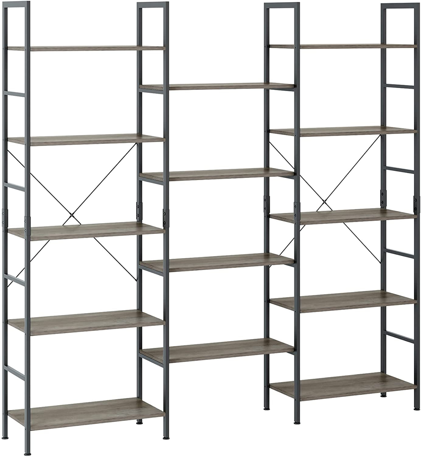 Homfa 5-Tier Large Bookshelf. Triple Wide Storage Shelf Home Furniture. Industrial Open Display Organizer Unit. Gray Finish