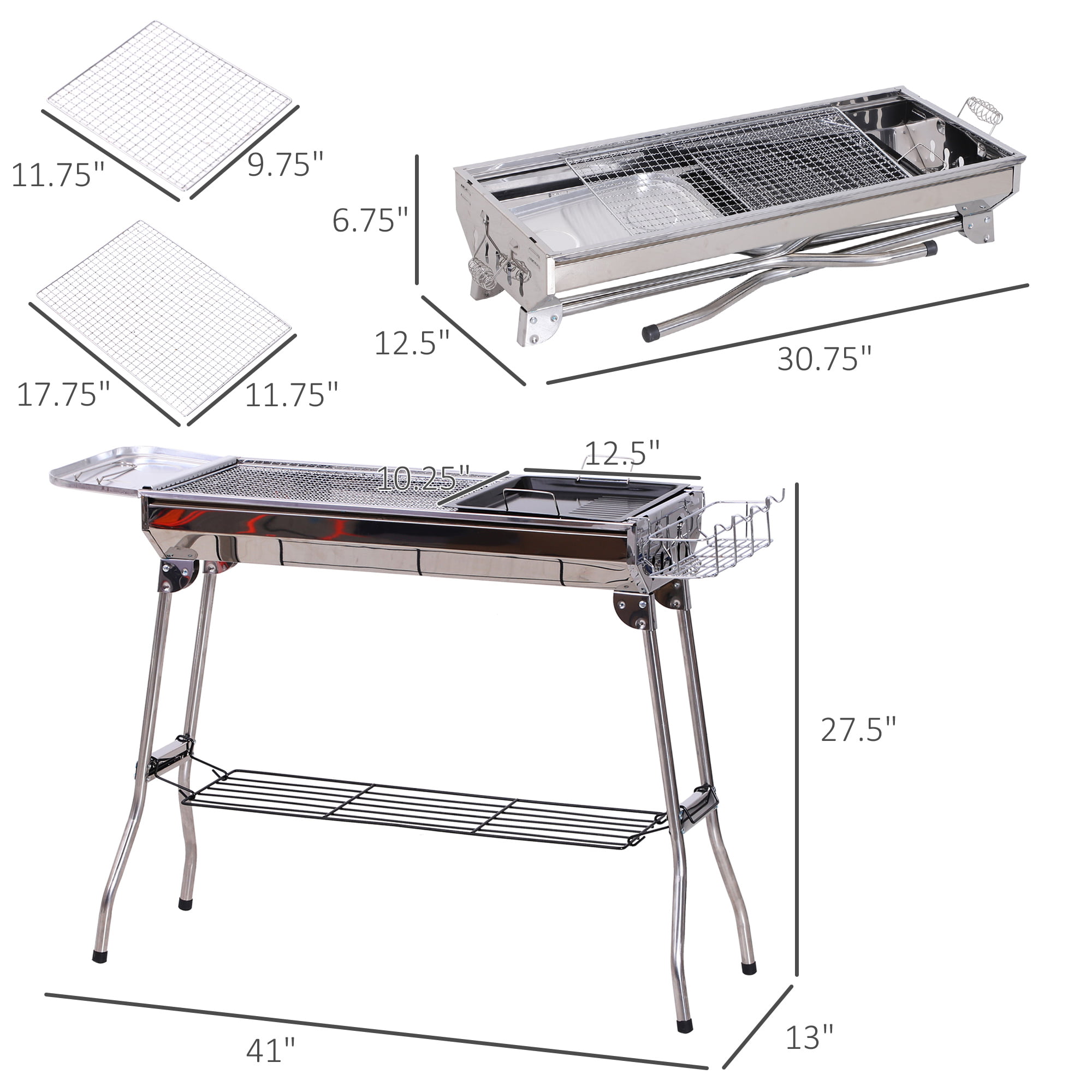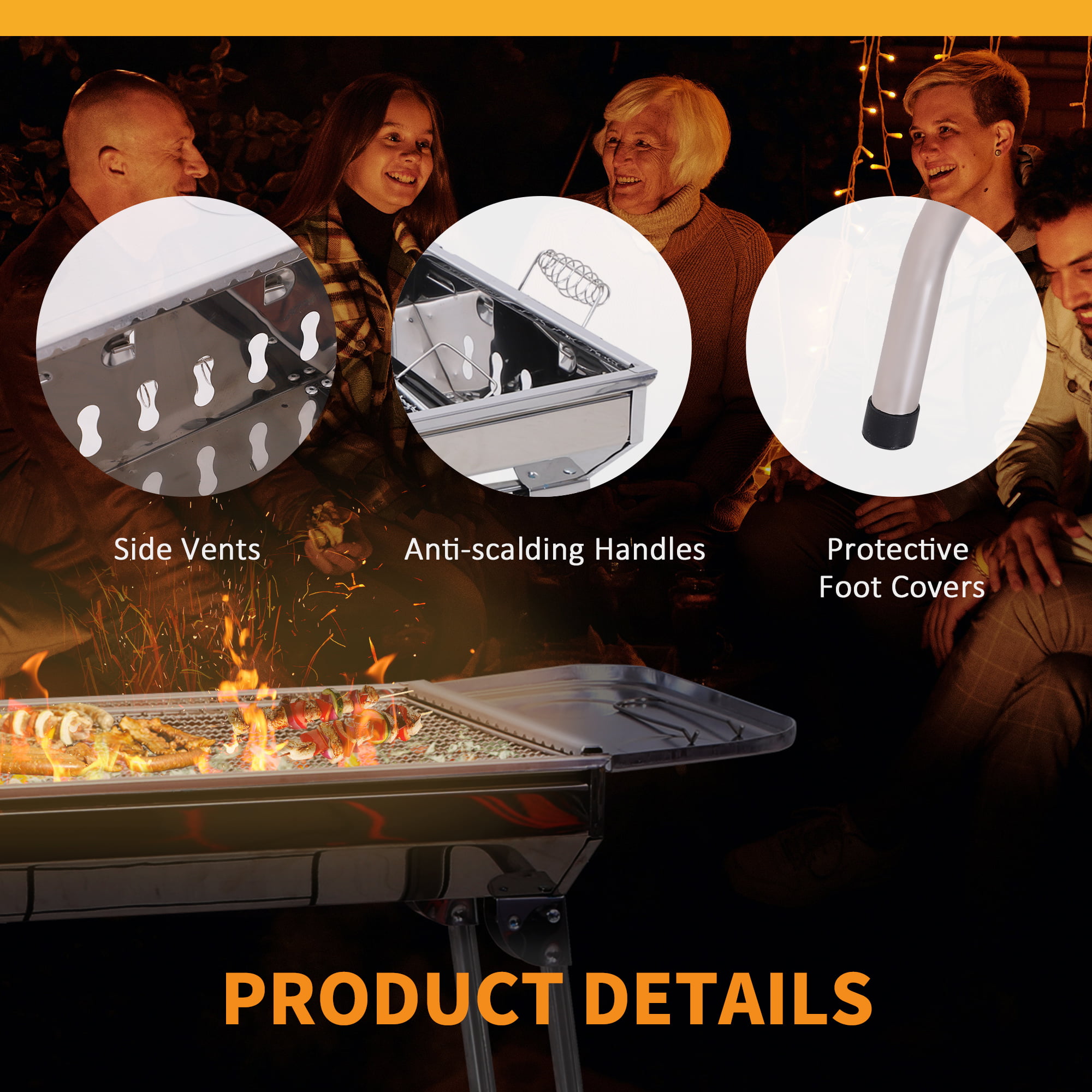 Portable Folding Charcoal BBQ Grill Stainless Steel Camp Picnic Cooker