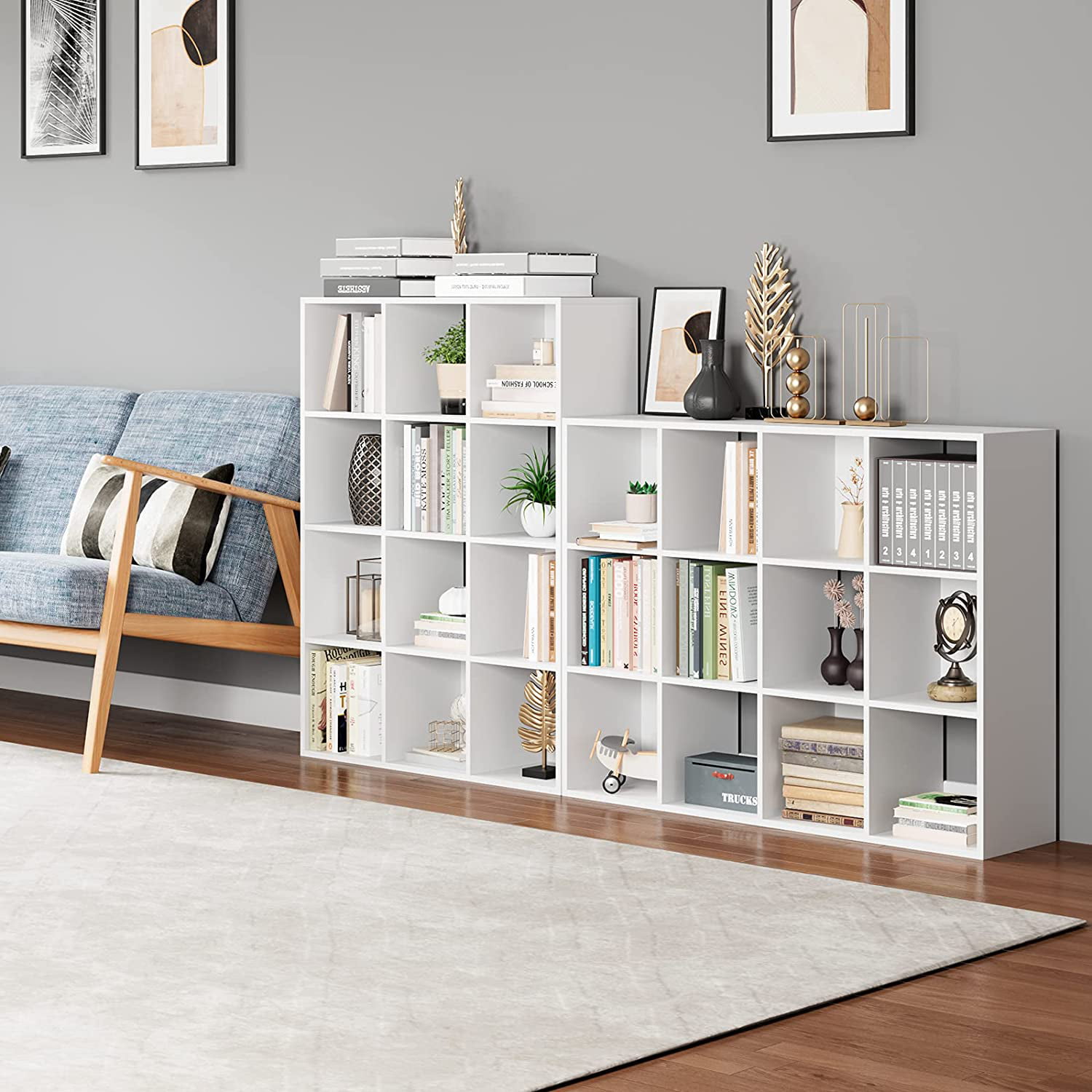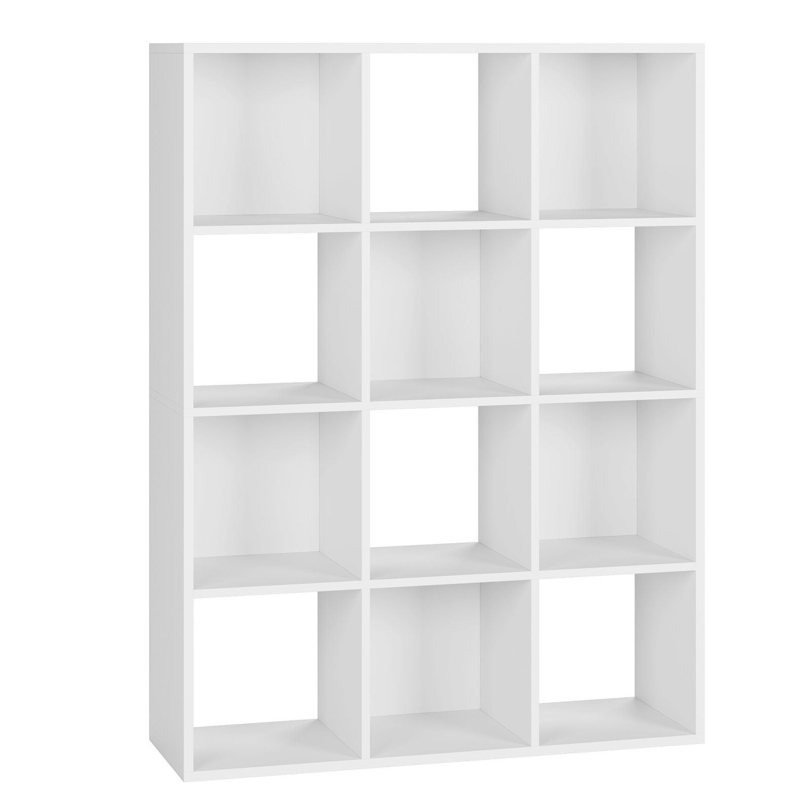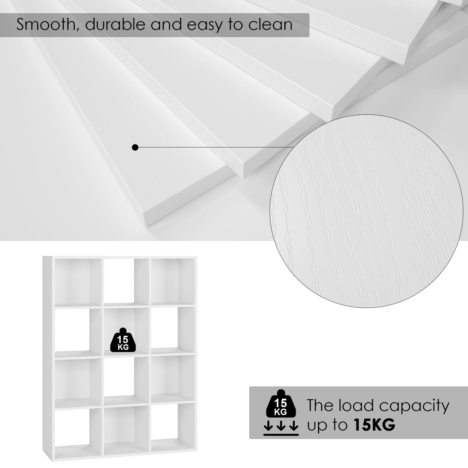 Homfa Storage Organizer. 12 Cube Bookcase with Wooden Frame. Open Closet Standing Book Shelving Cabinet for Living Room. Bedroom. Study Room. Office. 35.8″ L x 11.4 W x 47.5 H. White