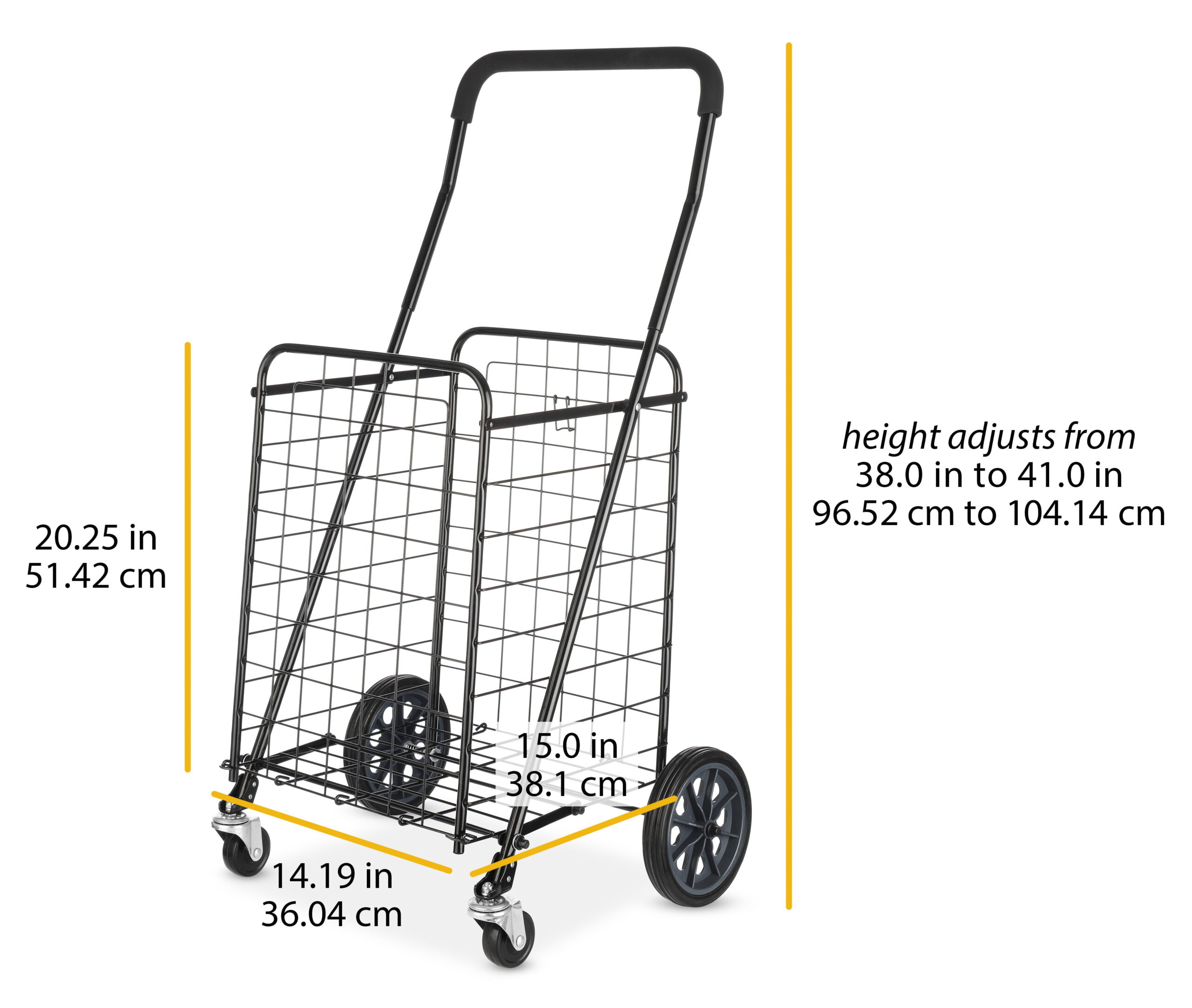 Mainstays Adjustable Steel Rolling Laundry Basket Shopping Cart. Black