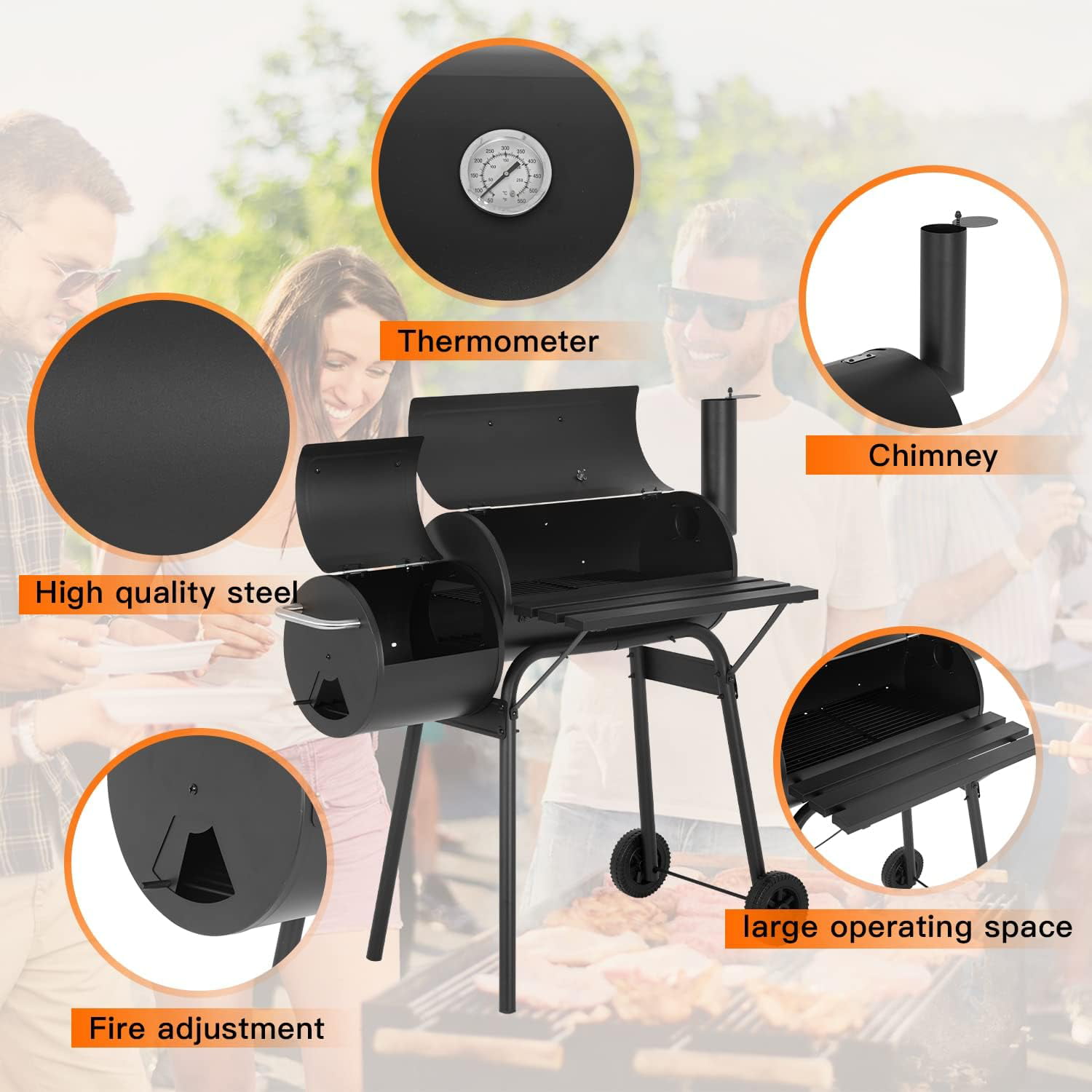 SUGIFT Portable BBQ Charcoal Grill with Offset Smoker
