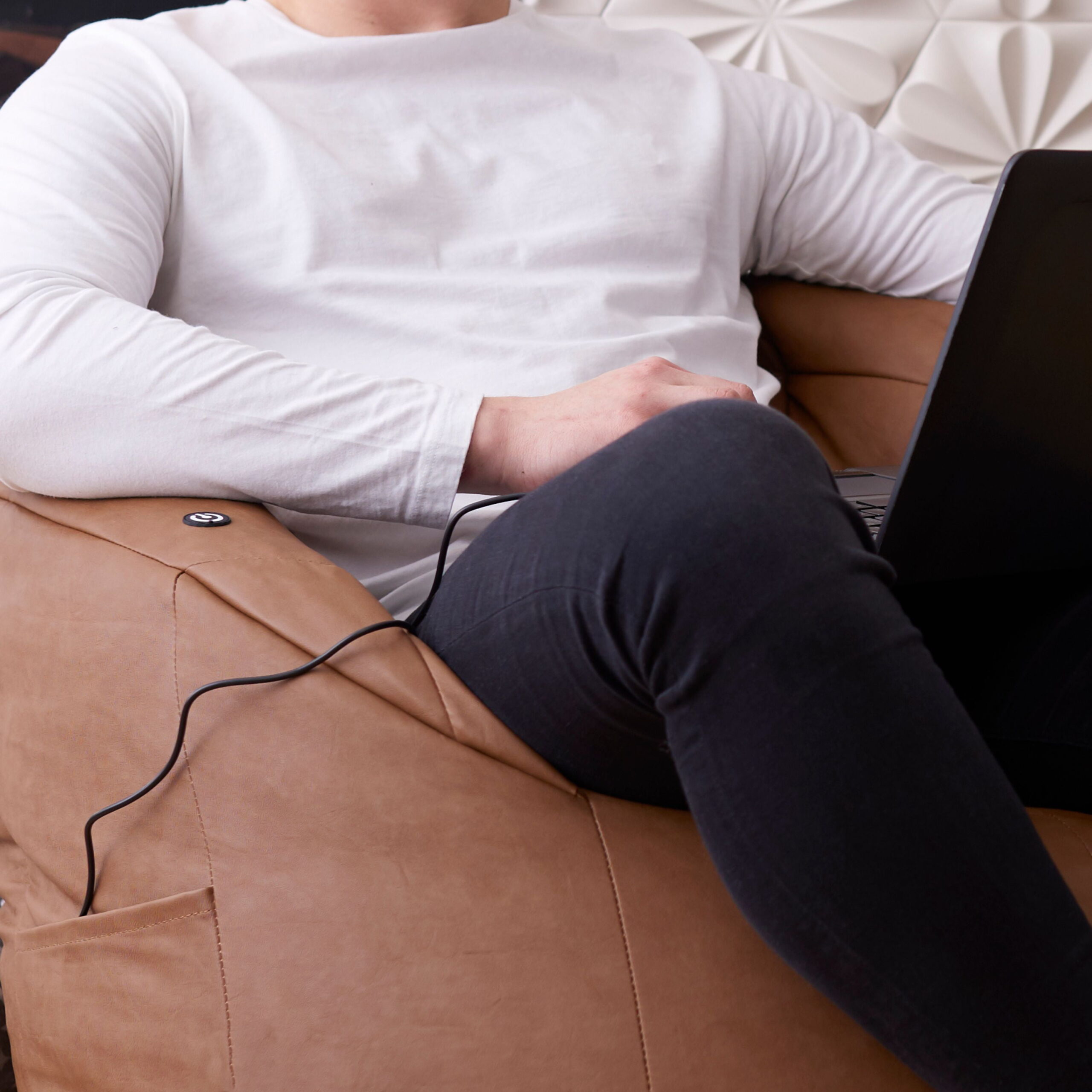 Big Joe Milano Bean Bag Chair with Vibe. Caramel Montana Leather